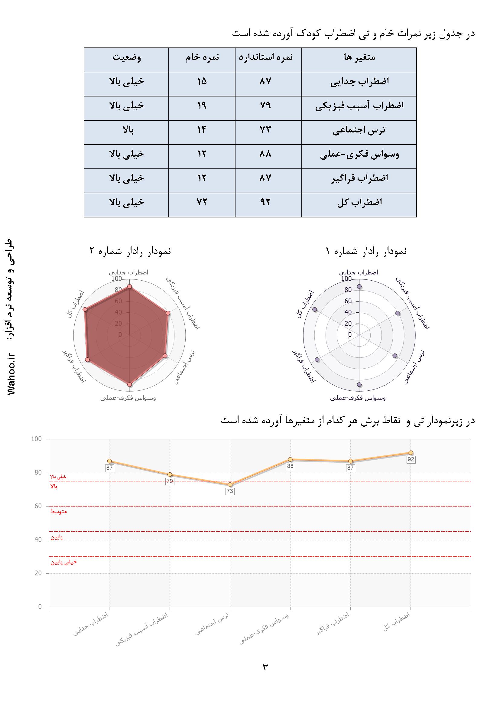✔ ارزیابی جامع انواع اضطراب و ارائه گزارشهای تحلیلی کاربردی همراه با نمرات استاندارد تی