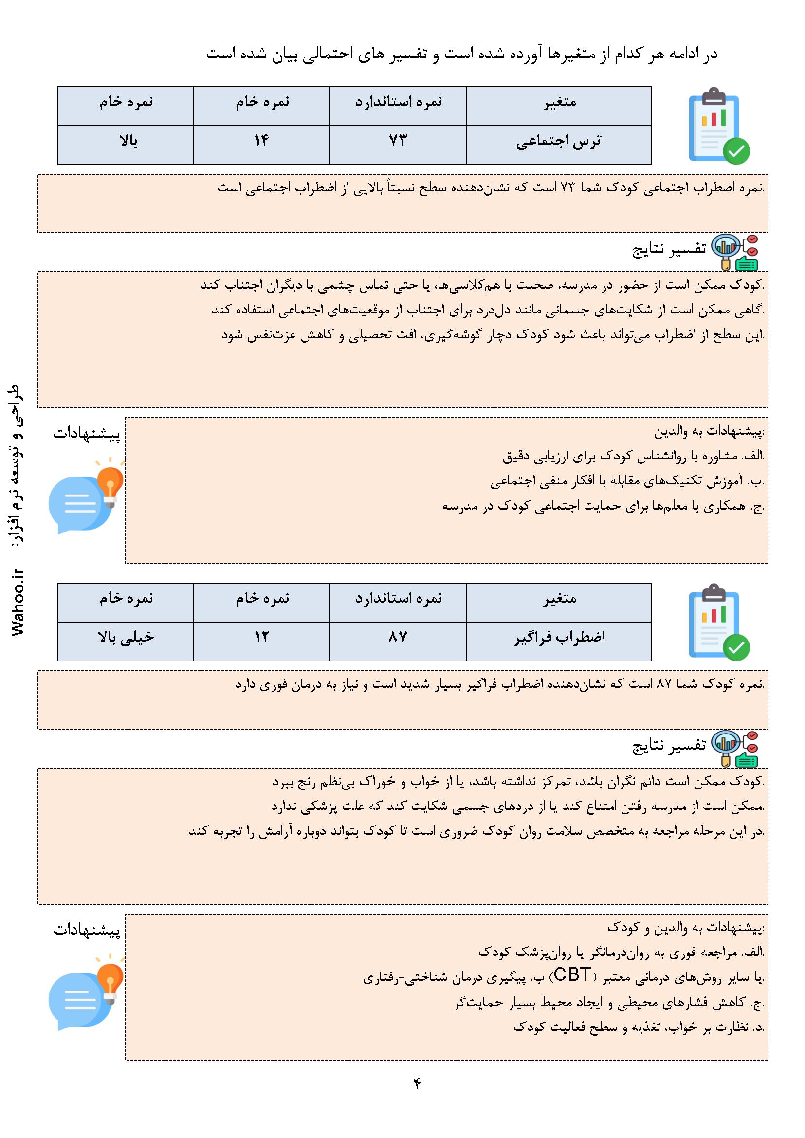 در ادامه نمونه صفحاتی از نرم افزار اضطراب کودک اسپنس فرم والد آورده شده است