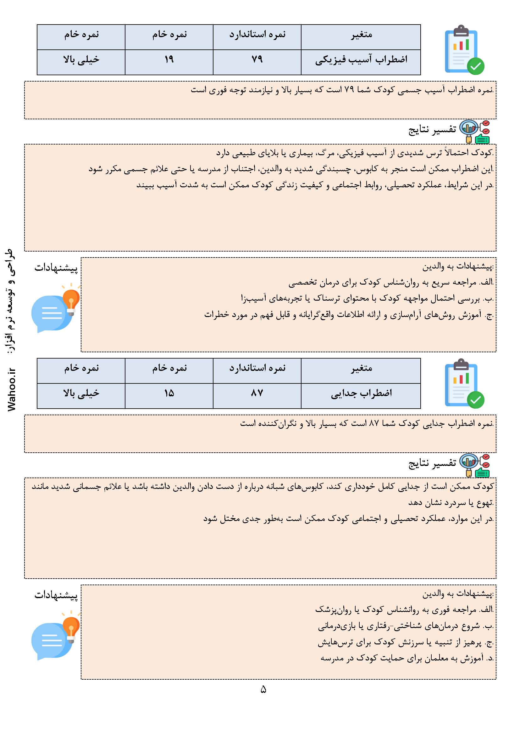 نرمافزار اضطراب کودکان اسپنس – فرم والدین (۲.۵ تا ۶.۵ سال)