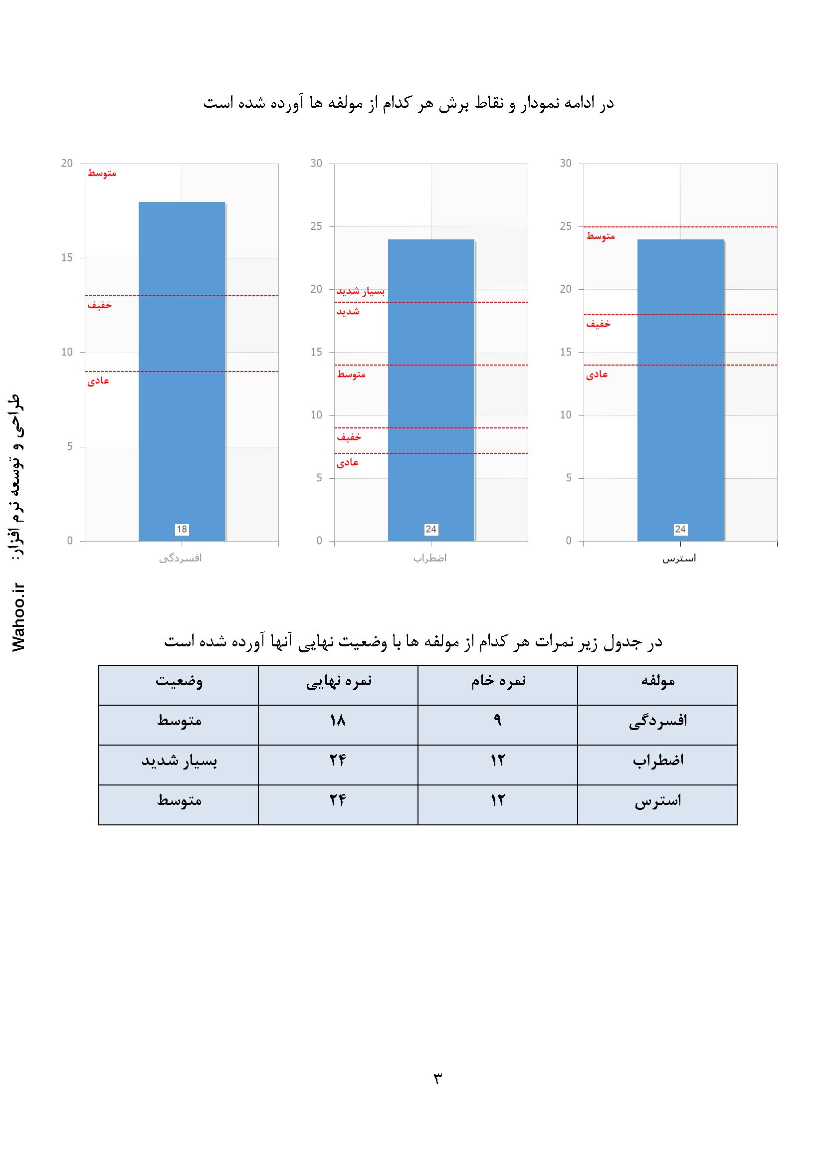 در زیر نمونه خروجی از نرم افزار افسردگی،اضطراب و استرسDASS-21 آورده شده است