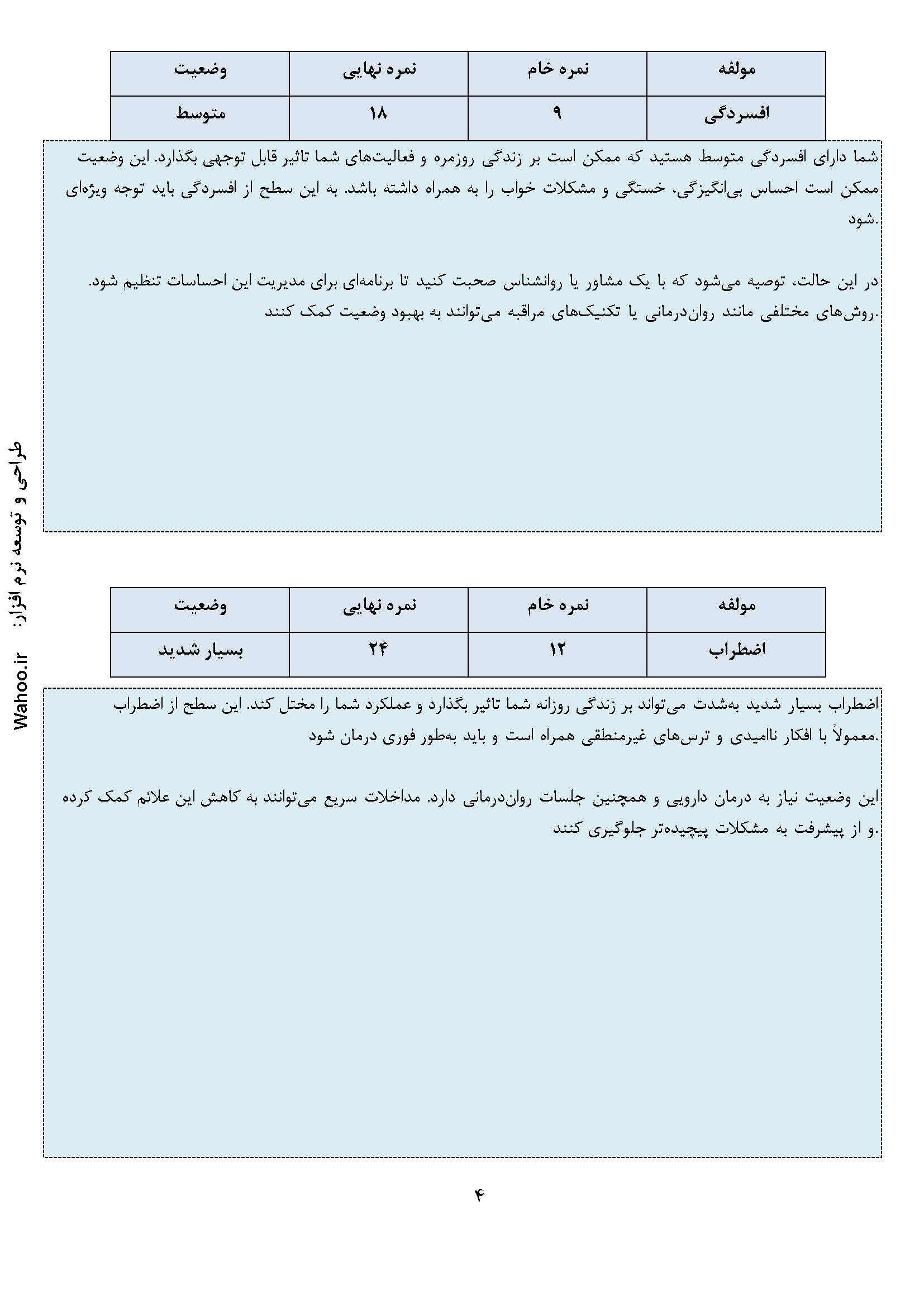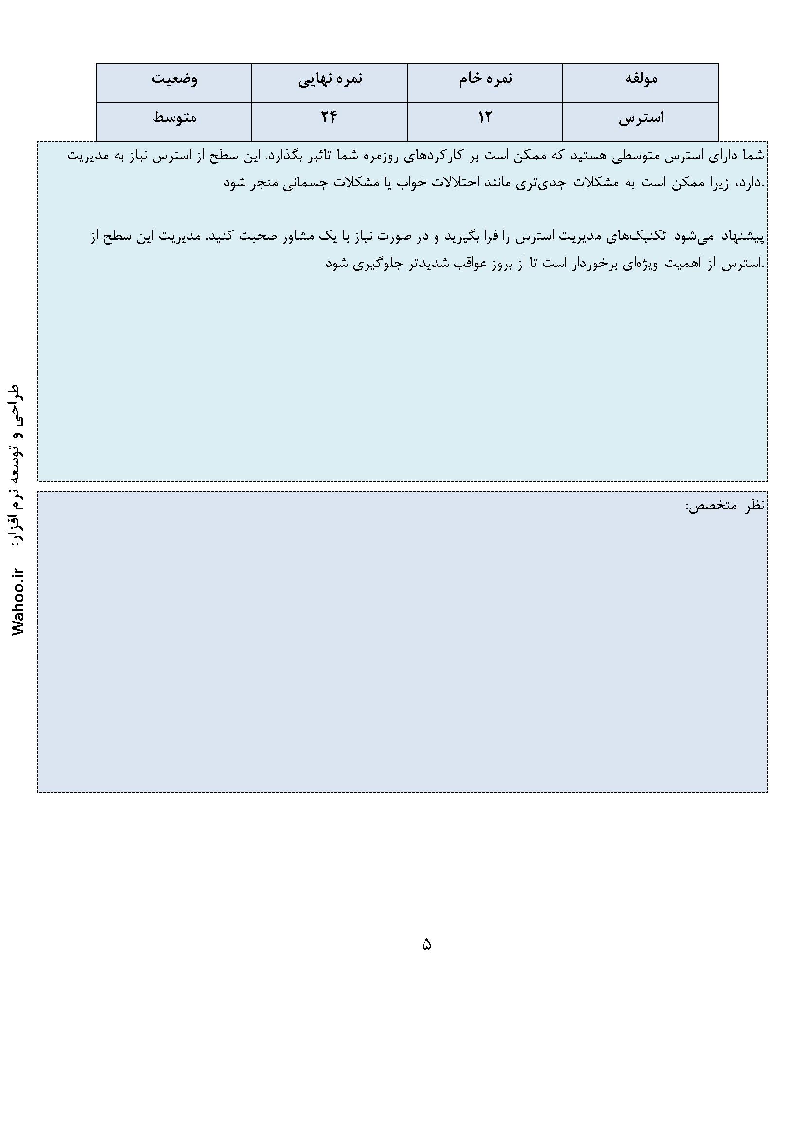 توجه: تفسیر نهایی نتایج آزمون باید توسط یک متخصص روانشناسی صورت گیرد.