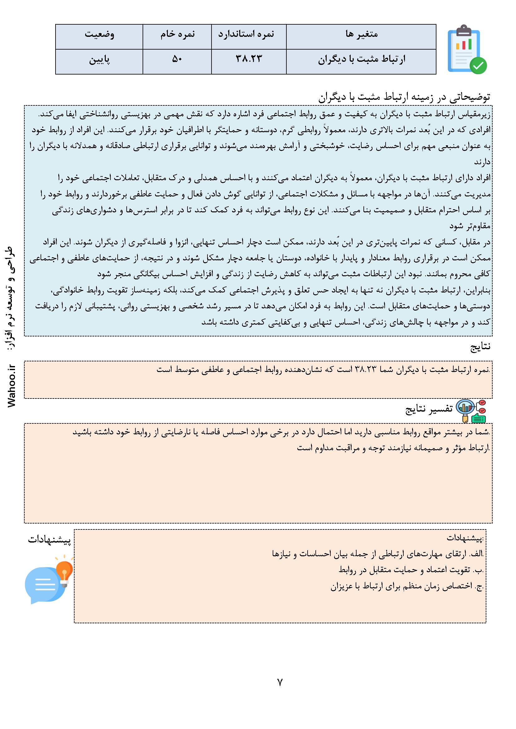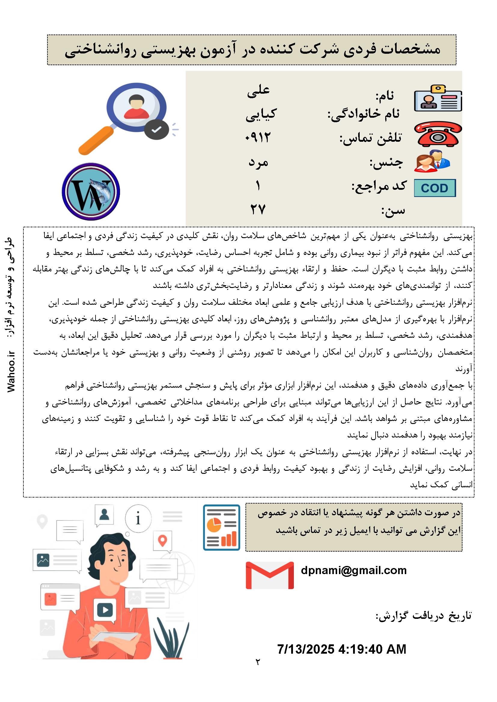 ✔ ارائه گزارش تحلیلی دقیق برای روان‌شناسان، مشاوران و مراجعان
