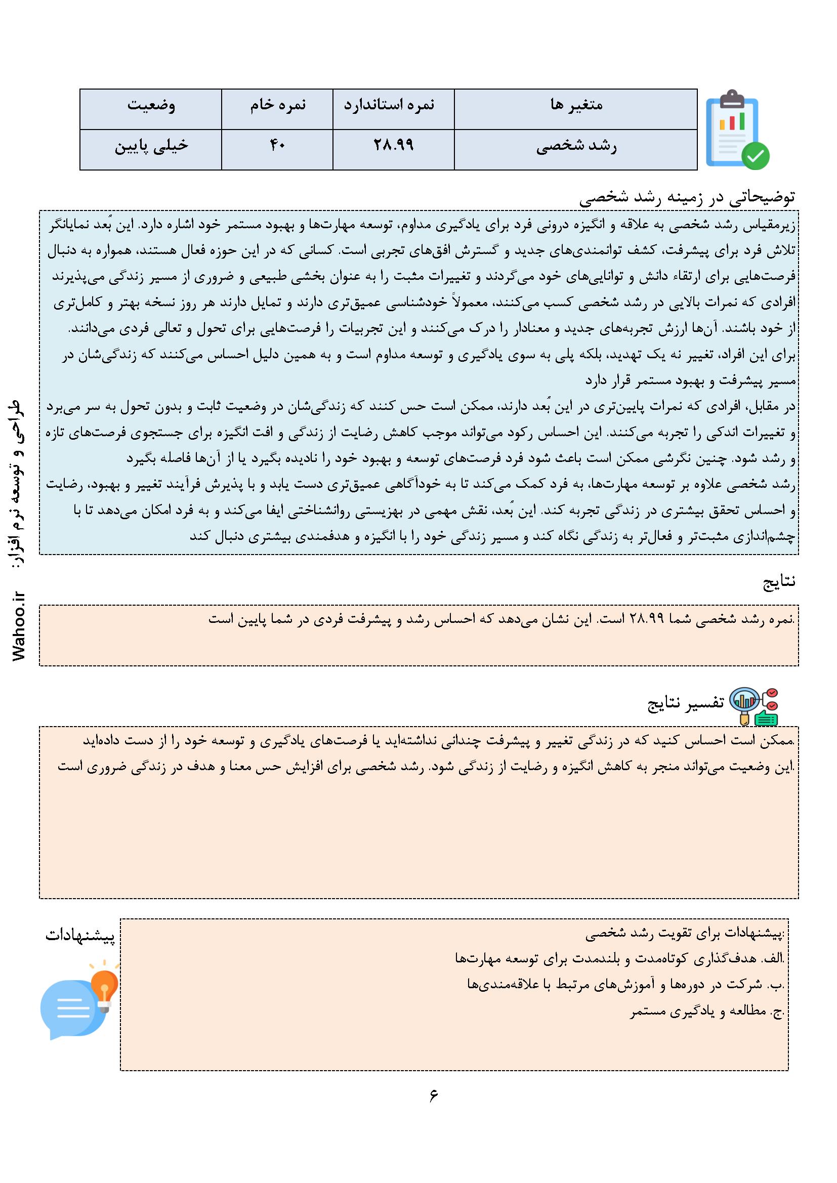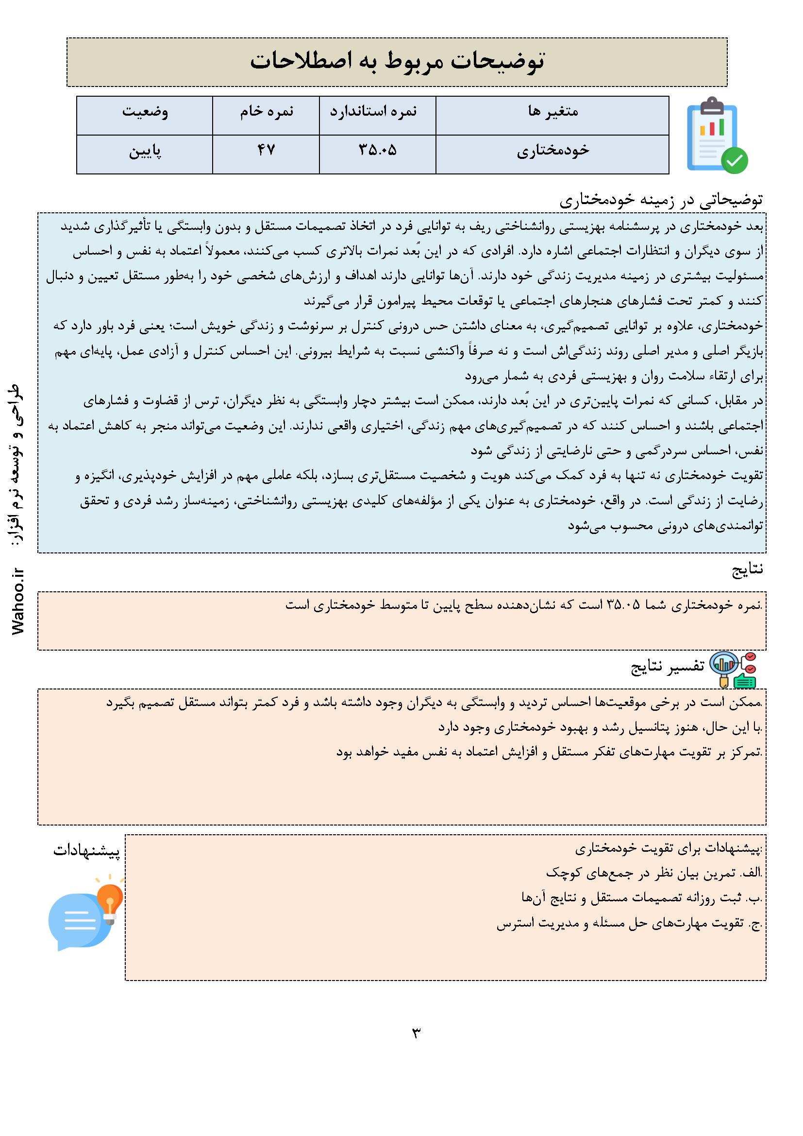 ✔ امکان استفاده در پژوهش، غربالگری سلامت روان، و پایش رشد فردی
