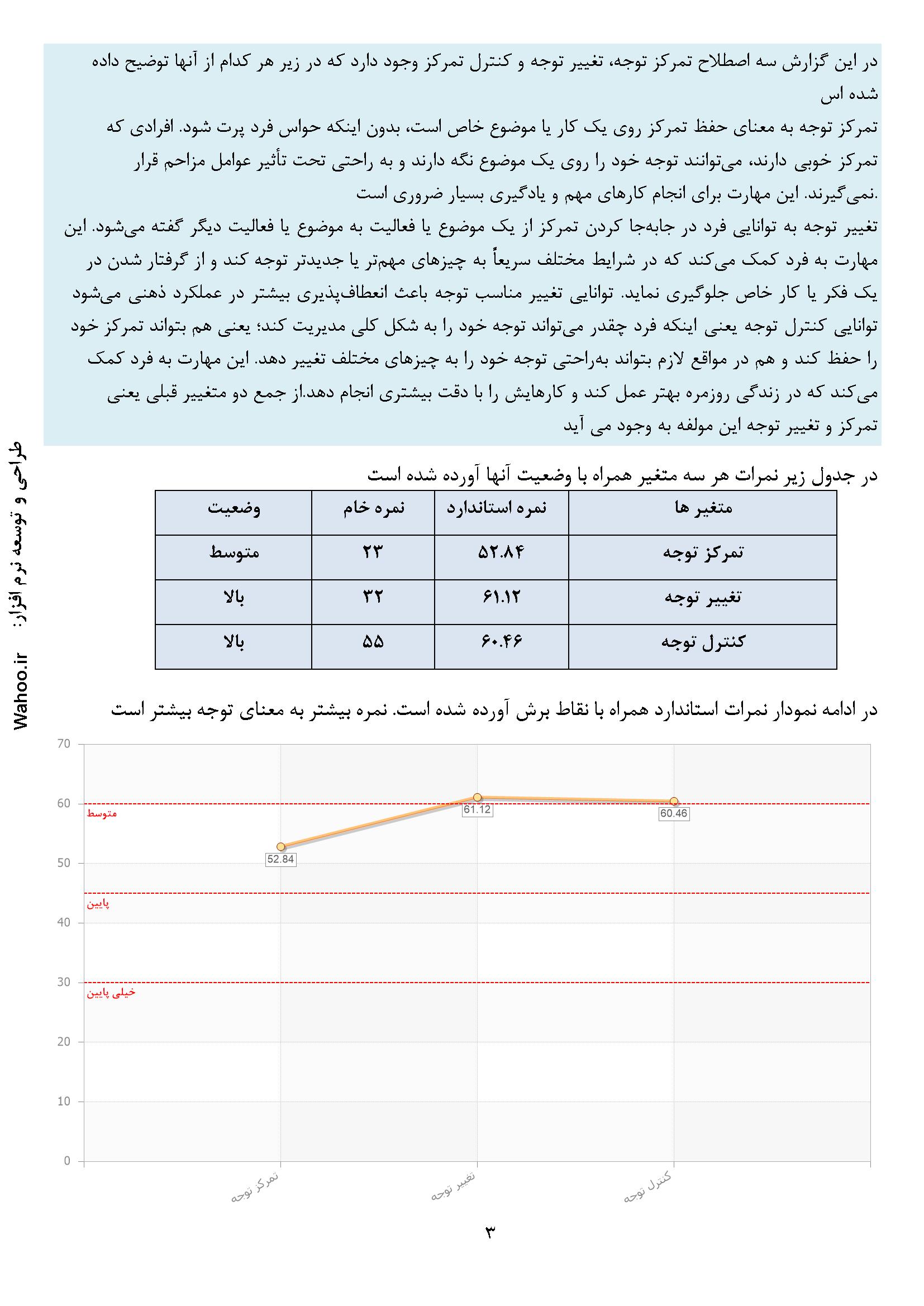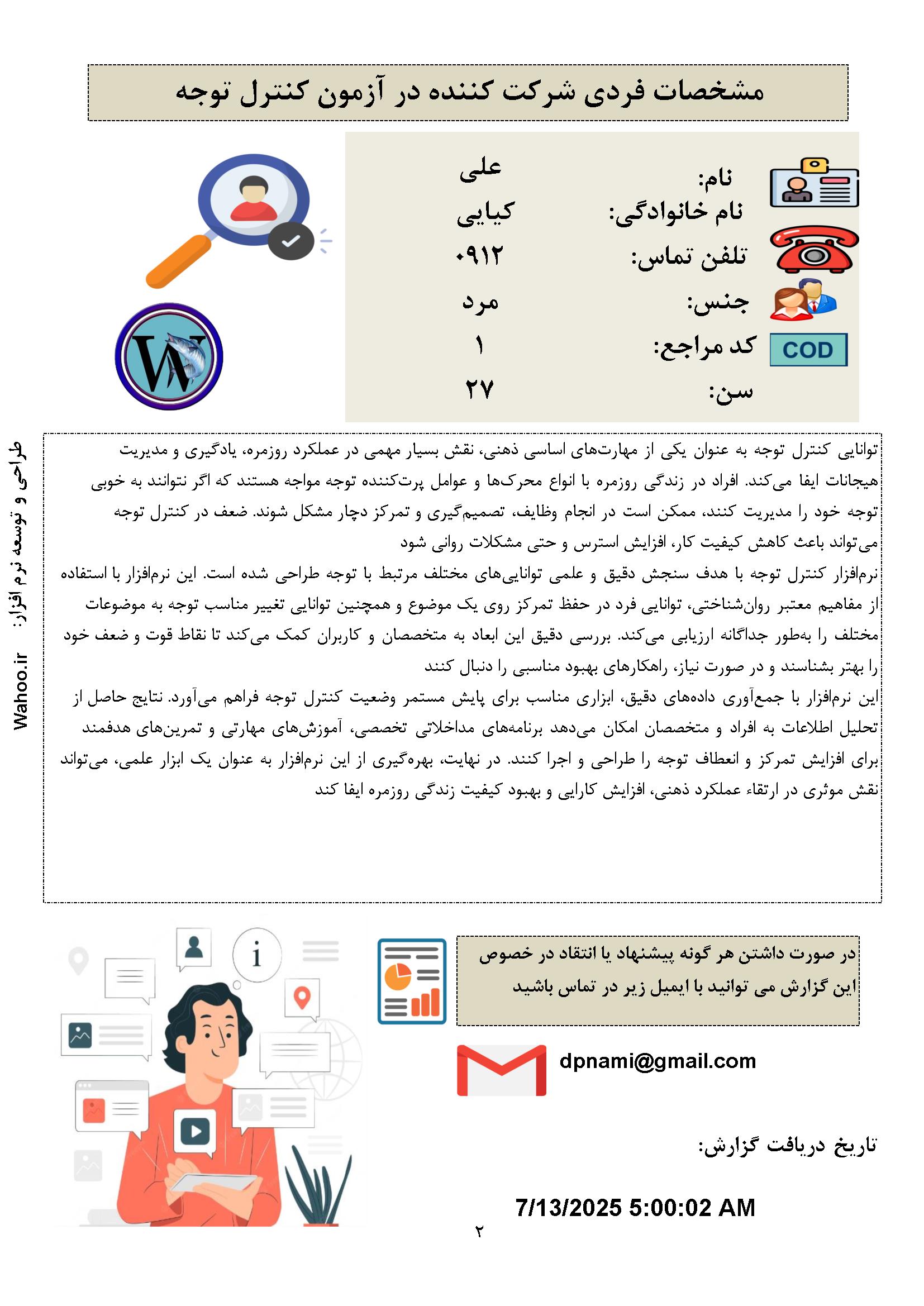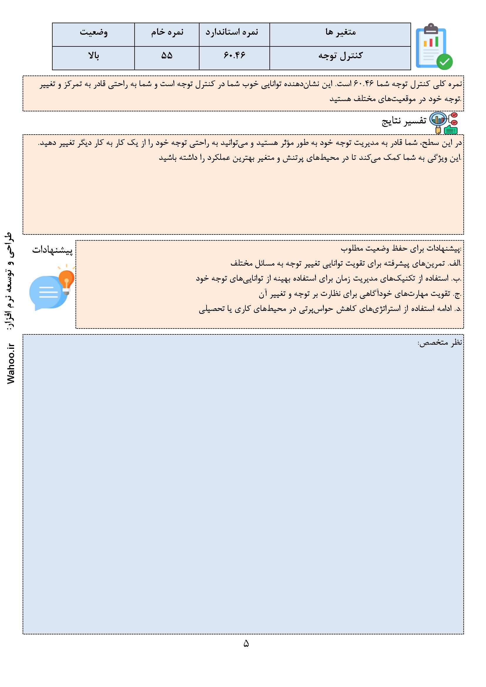 🔹 ارائه نمره کل و تحلیل دقیق عملکرد توجه
