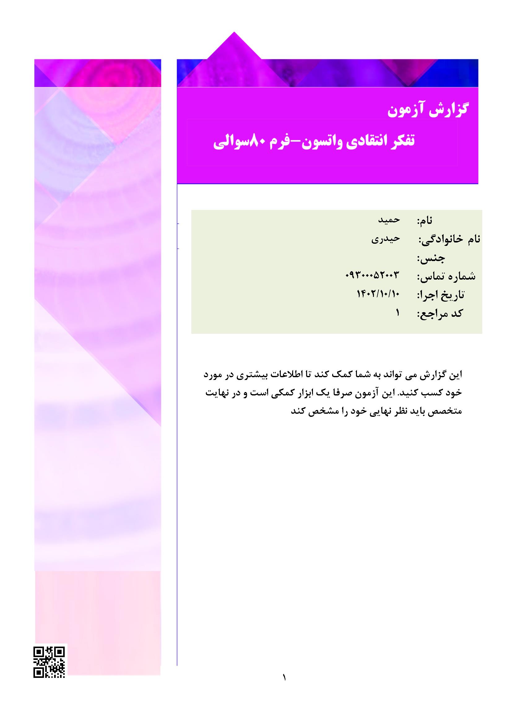 فرم 80 سوالی همراه با تفسیر