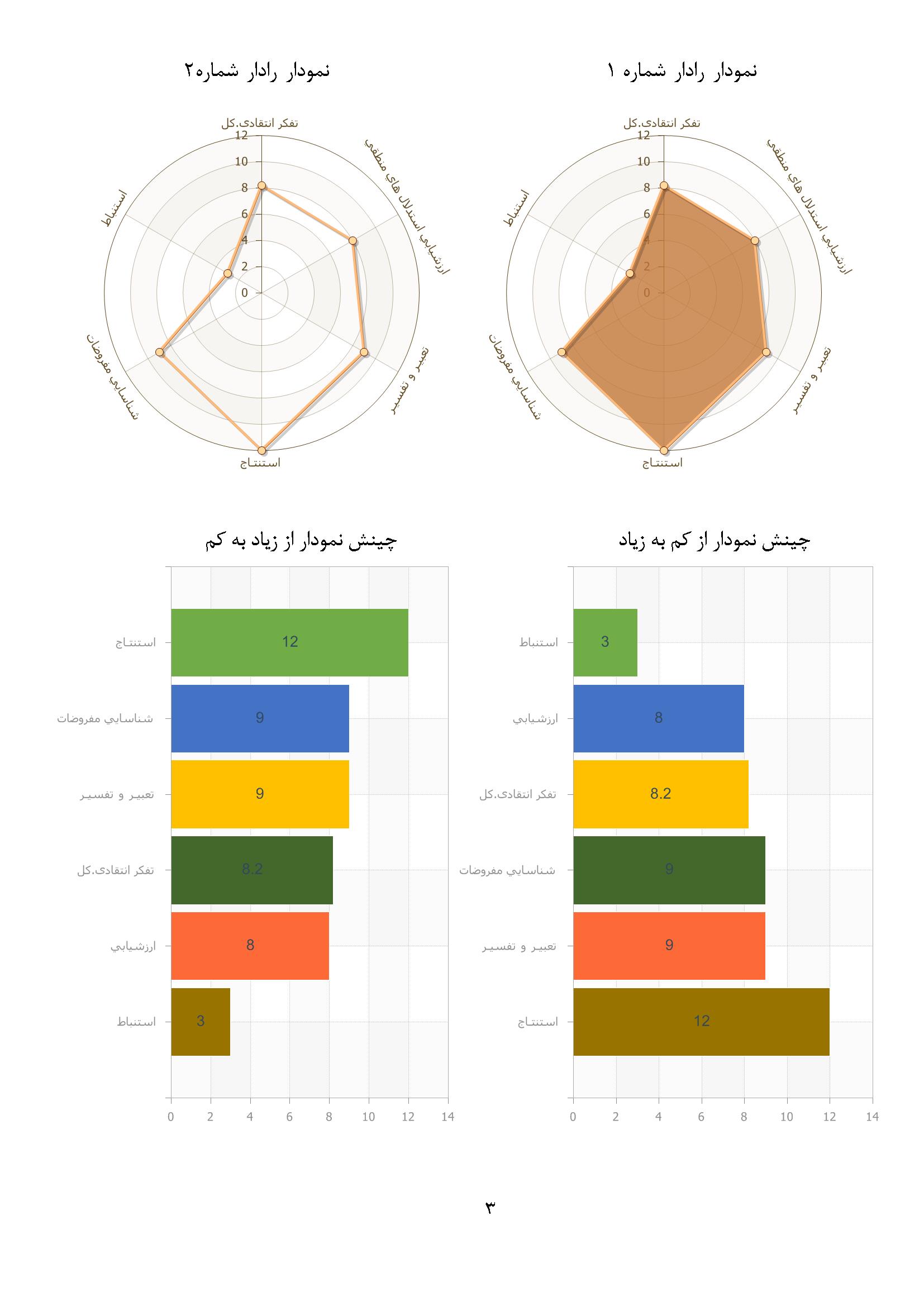 | نیمرخ، نمودار، چارت | ارئه نمودار های رنگی و نیمرخ های متفاوت | دارد | دارد | دارد |