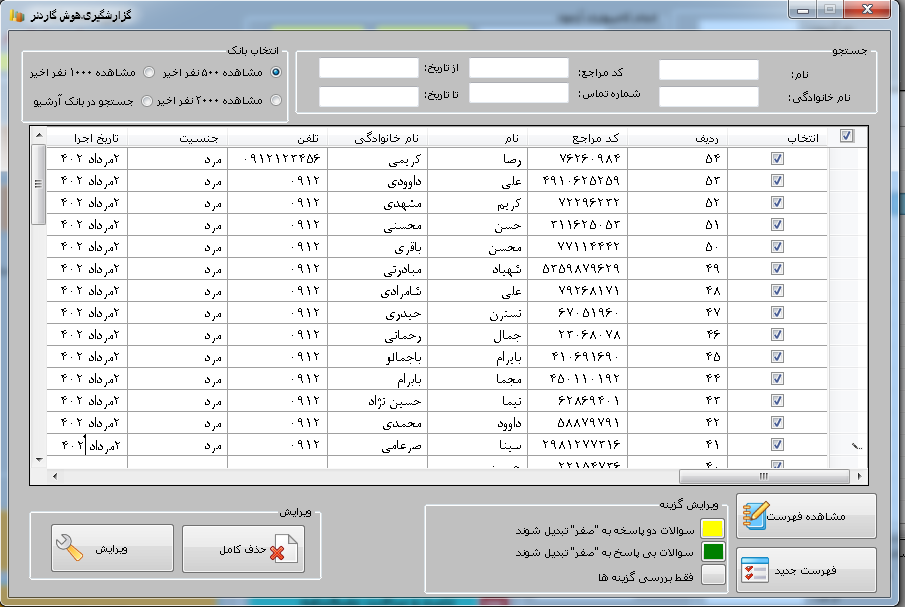 | قابلیت حذف | قابلیت حذف آزمون ها و مراجعان | دارد | دارد | دارد |