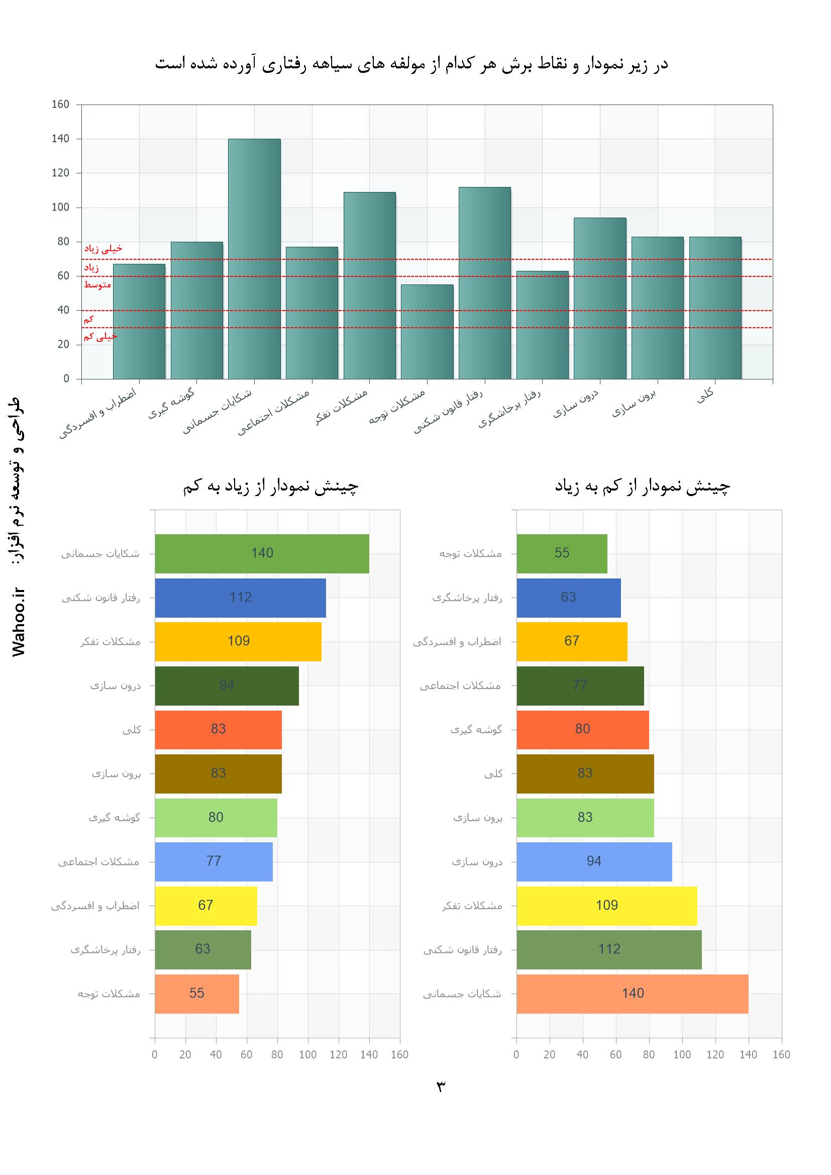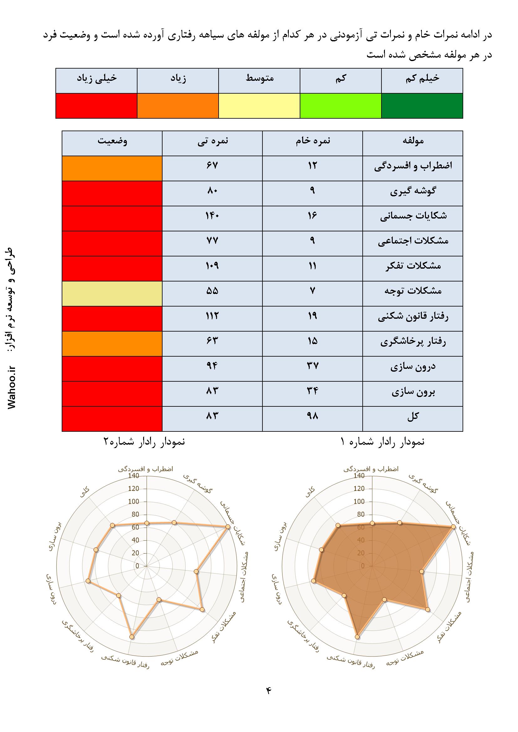 در زیر نمونه خروجی از نرم افزار سیاهه رفتاری کودکان اخنباخ آورده شده است
