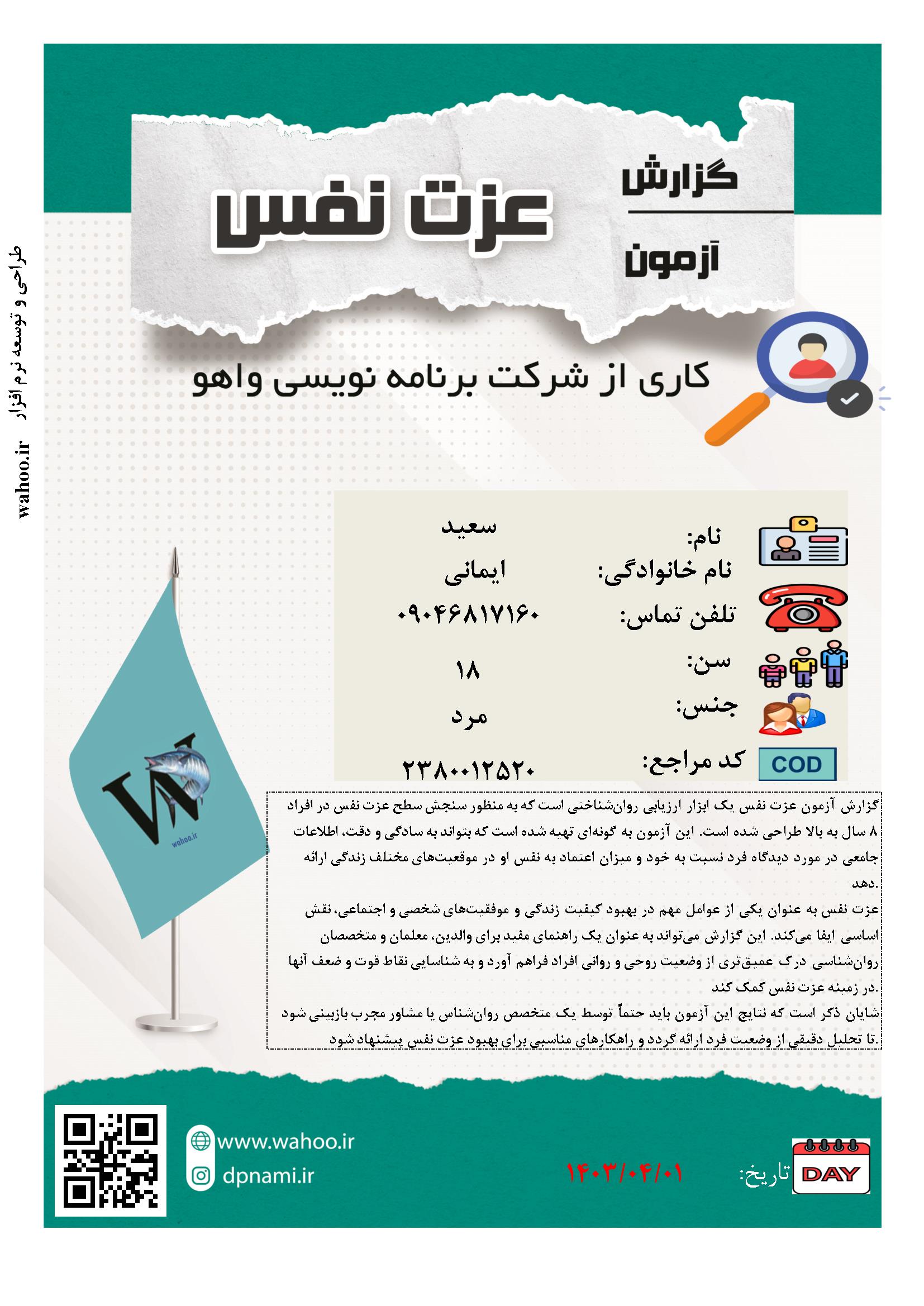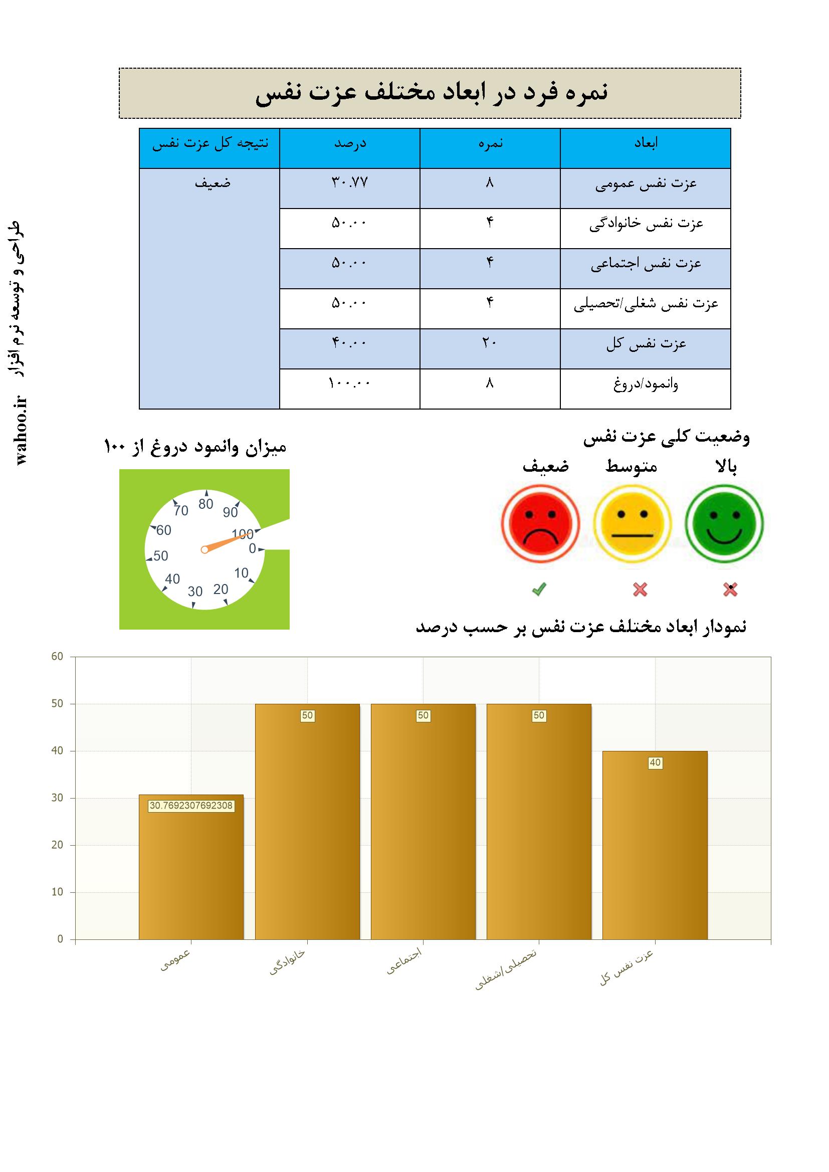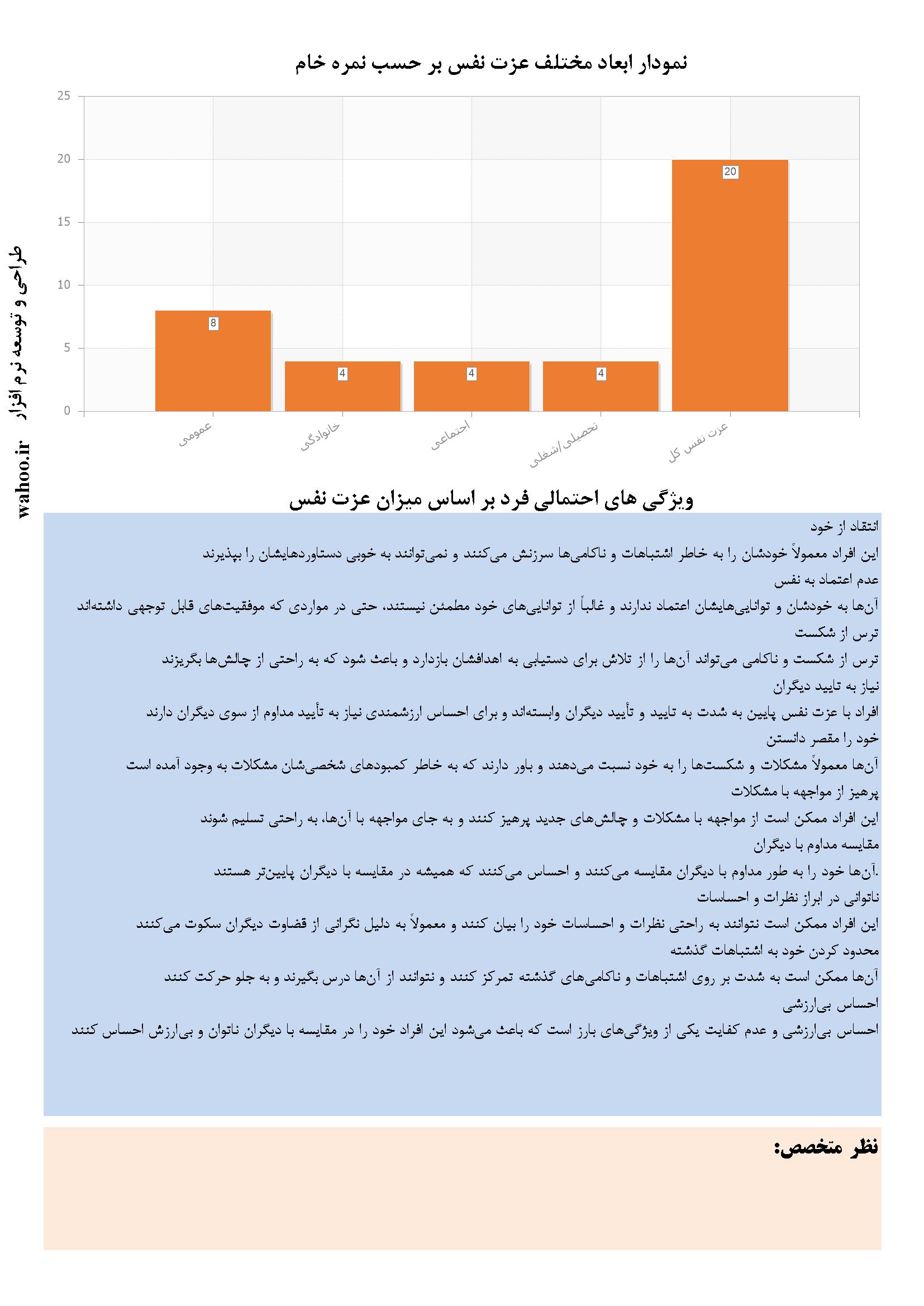 در ادامه نمونه صفحاتی از گزارش نرم عزت نفس کوپر اسمیت آورده شده است. این گزارش به صورت جامع و در 3 صفحه تنظیم شده است