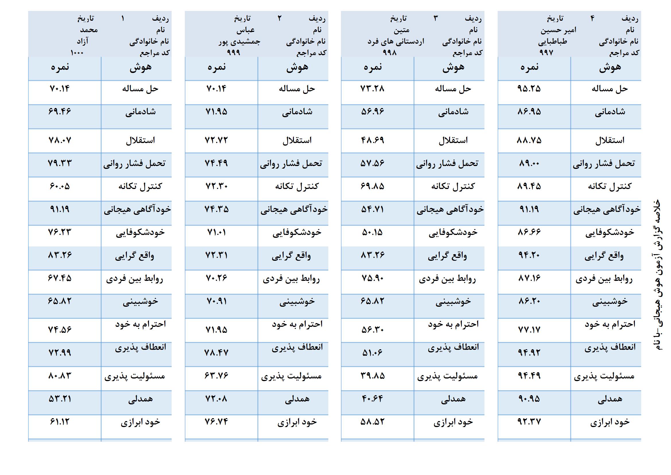 | مشاهده نتایج بر روی وب سایت توسط کاربر | امکان مشاهده نتایج با کد ملی و یا کد منحصر به فرد برای هر شخص | ندارد | ندارد | دارد |