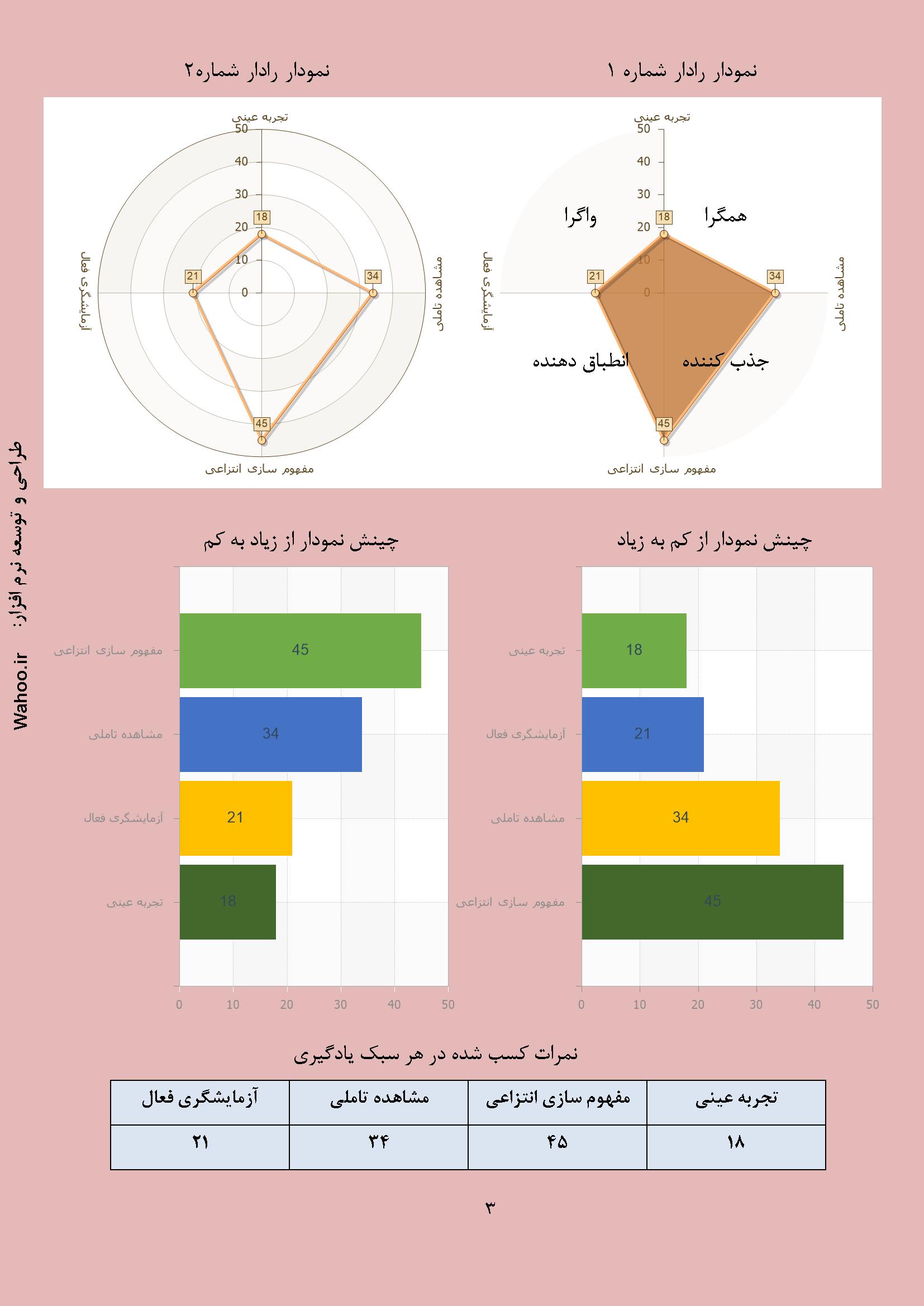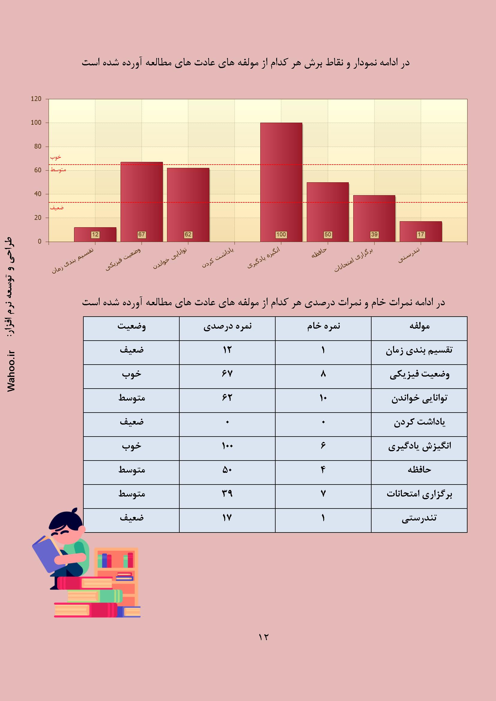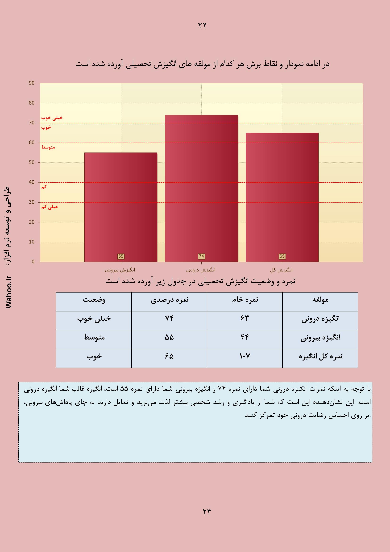 این نرم افزار مخصوص دانش آموزان متوسطه اول و دوم است که به صورت یک کتابچه برای هر فرد ارائه می شود که منحصر به فرد هر شخص است. در این نرم افزار علاوه بر این که قادر هستید نتایج هر آزمون را جداگانه برای هر شخص بگیرید می توانید نتایج چهار آزمون را به صورت ترکیبی در یک گزارش کتابچه ای دریافت کنید که در این کتابچه با در نظر گرفتن سبک یادگیری، عادات مطالعه، انگیزش تحصیلی و برنامه هفتگی یک گزارش منسجم تحصیلی به فرد ارائه می دهد