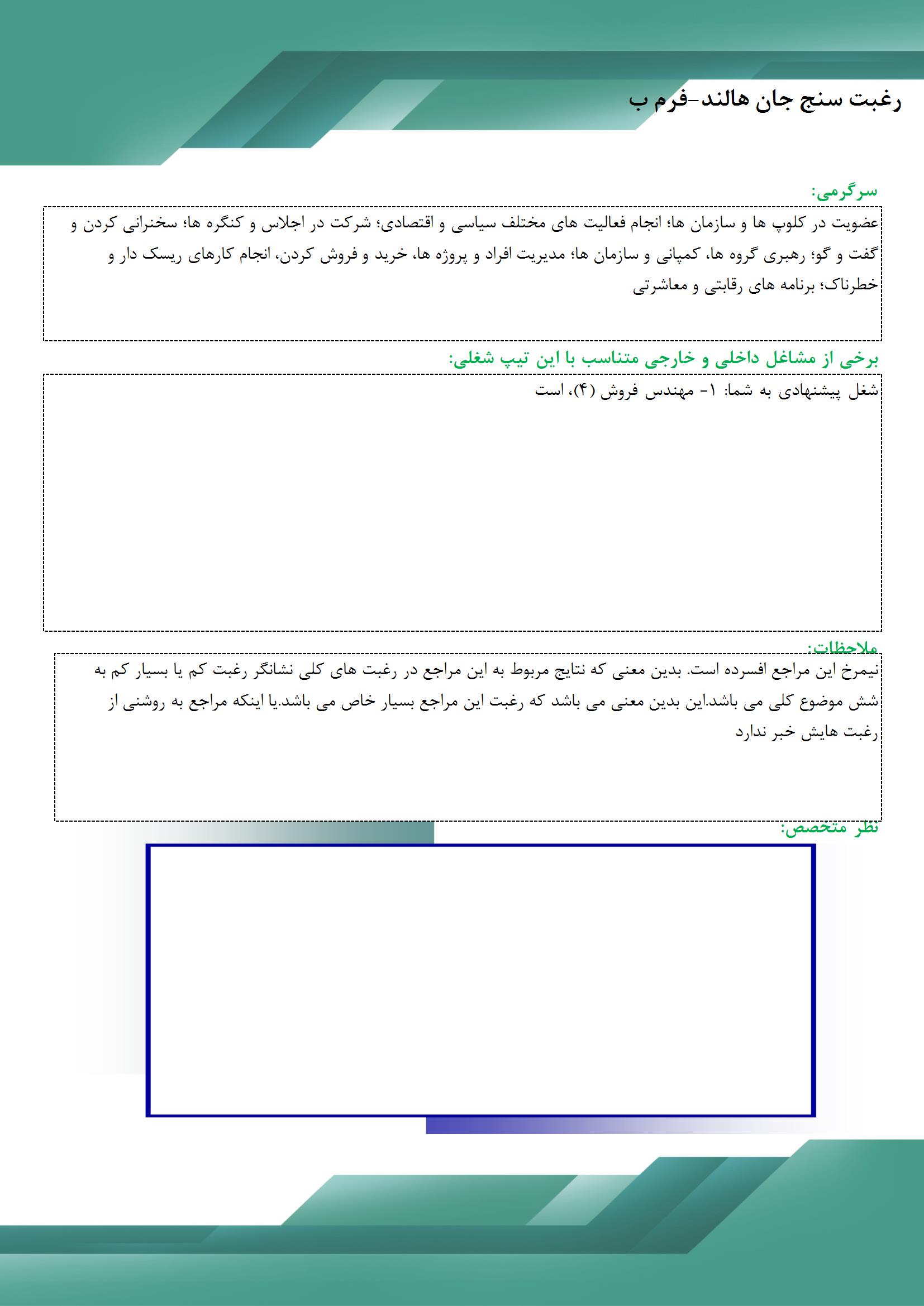 آزمون شماره 1 و 2 آزمون جان هالند فرم بلند-نمونه خروجی ها