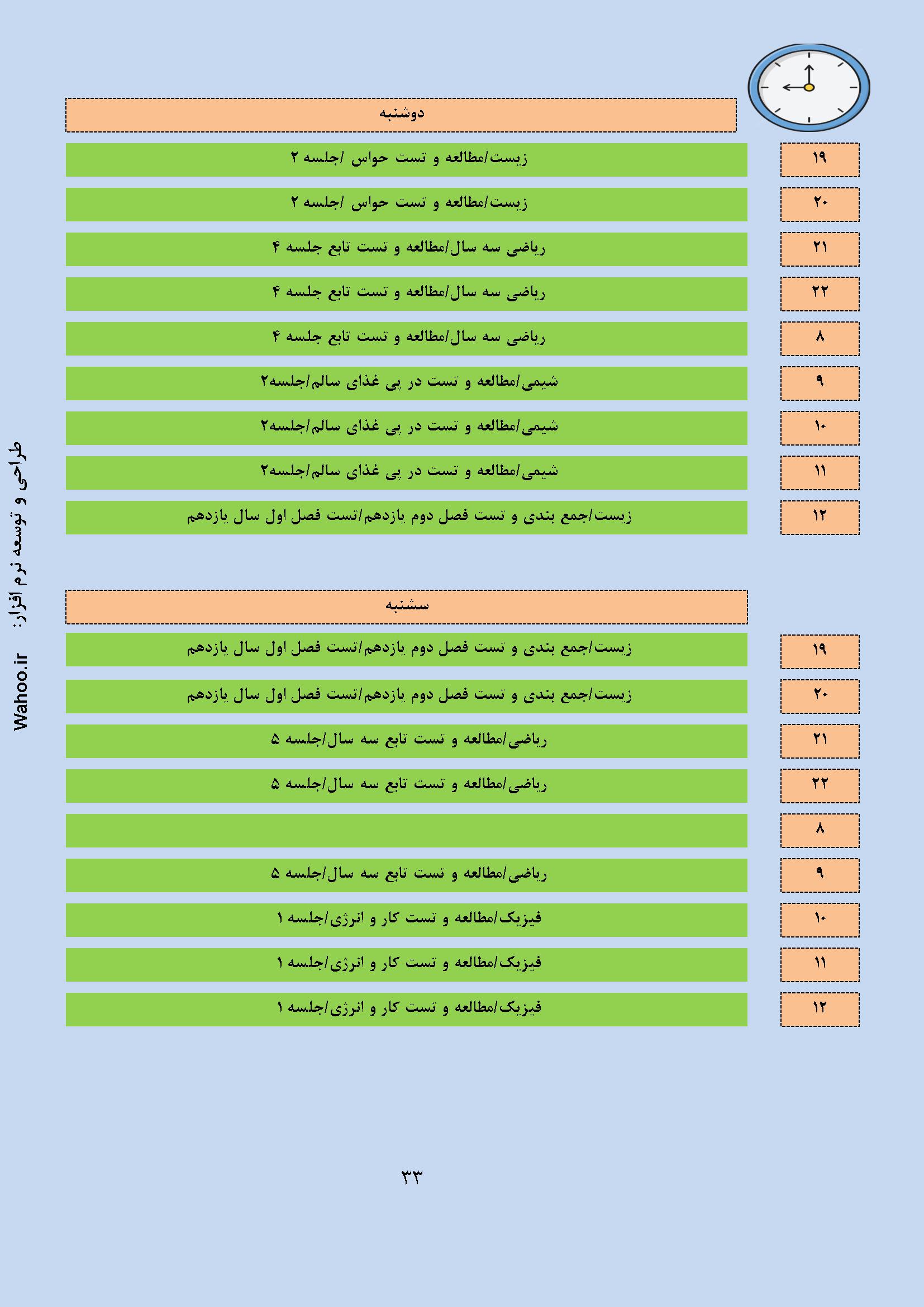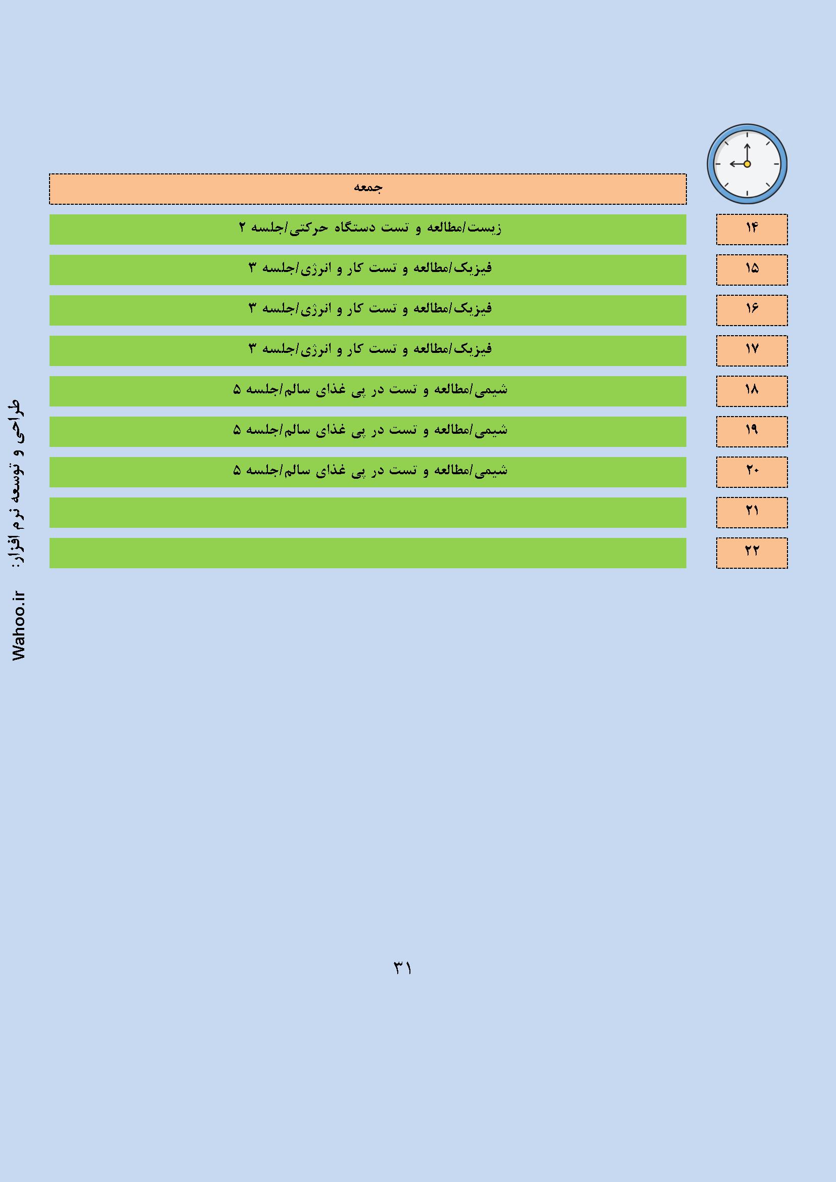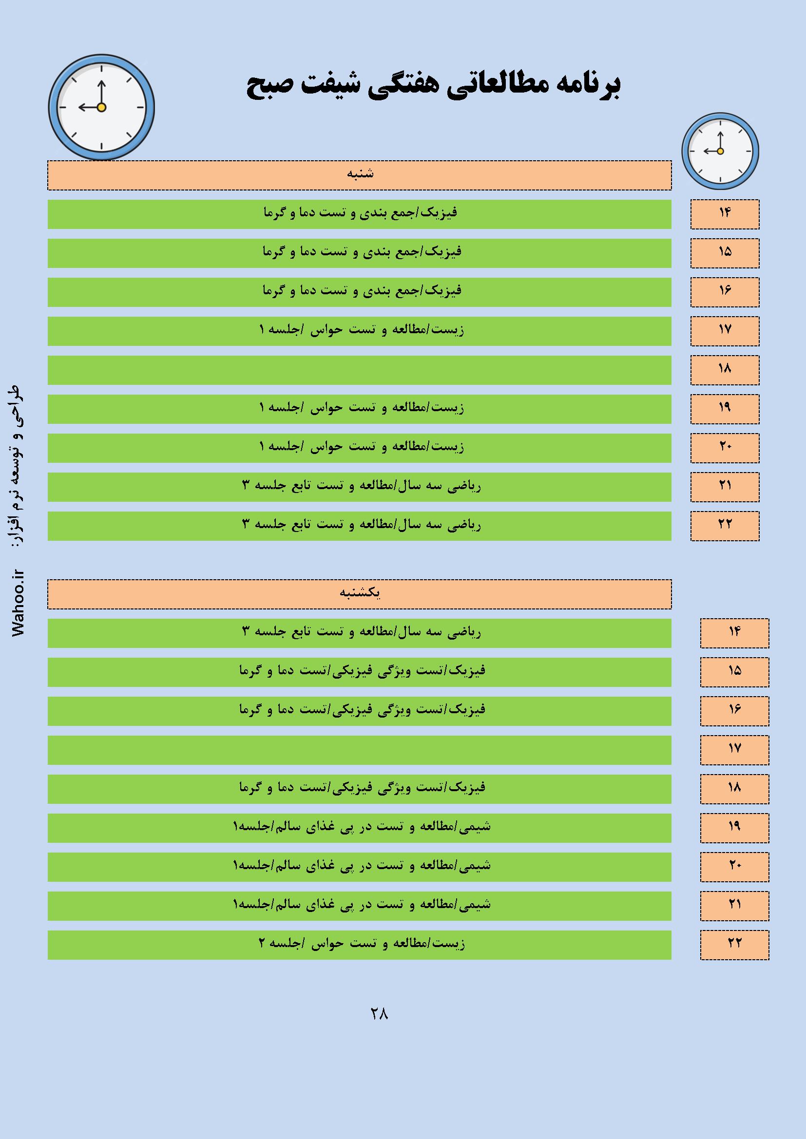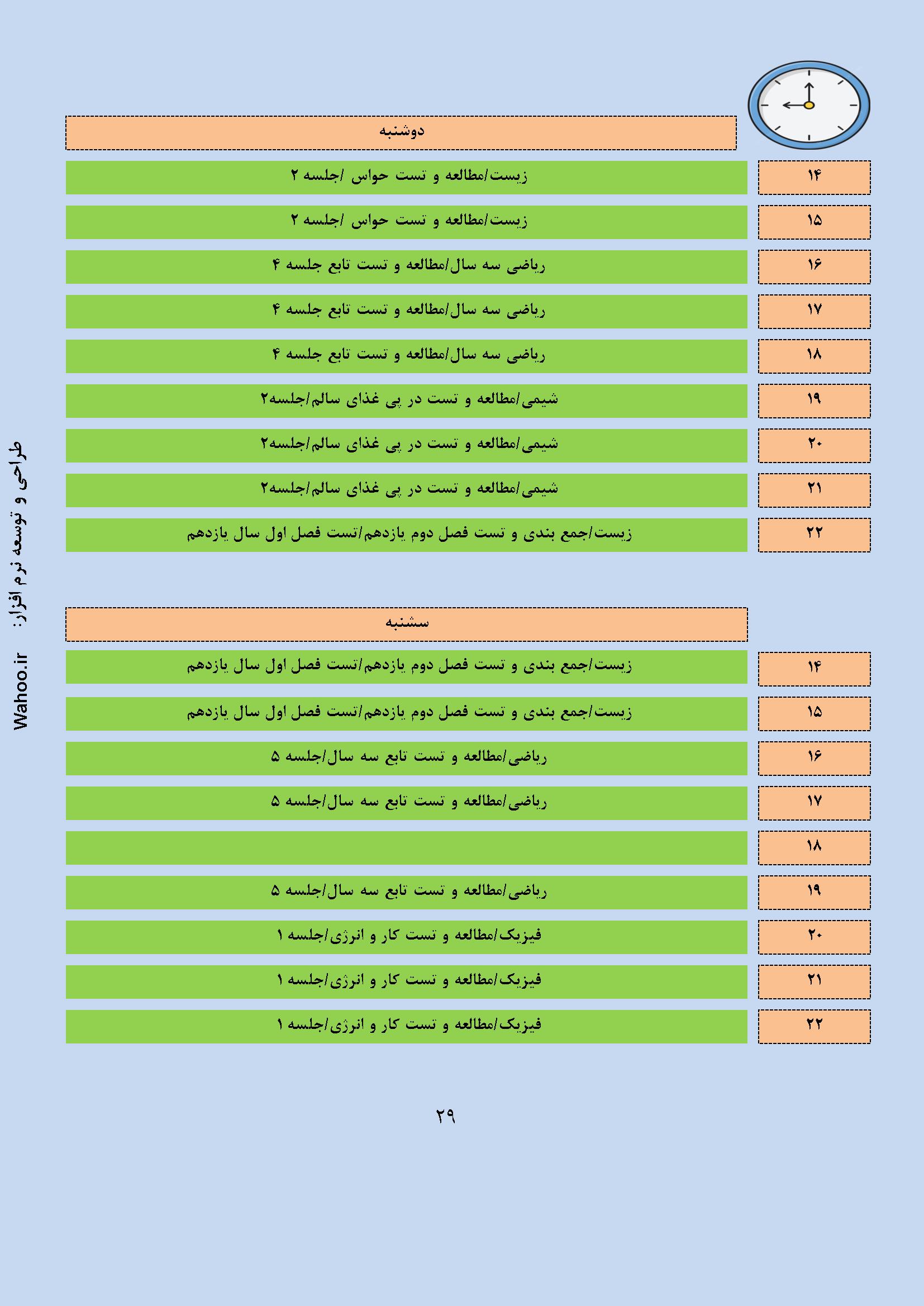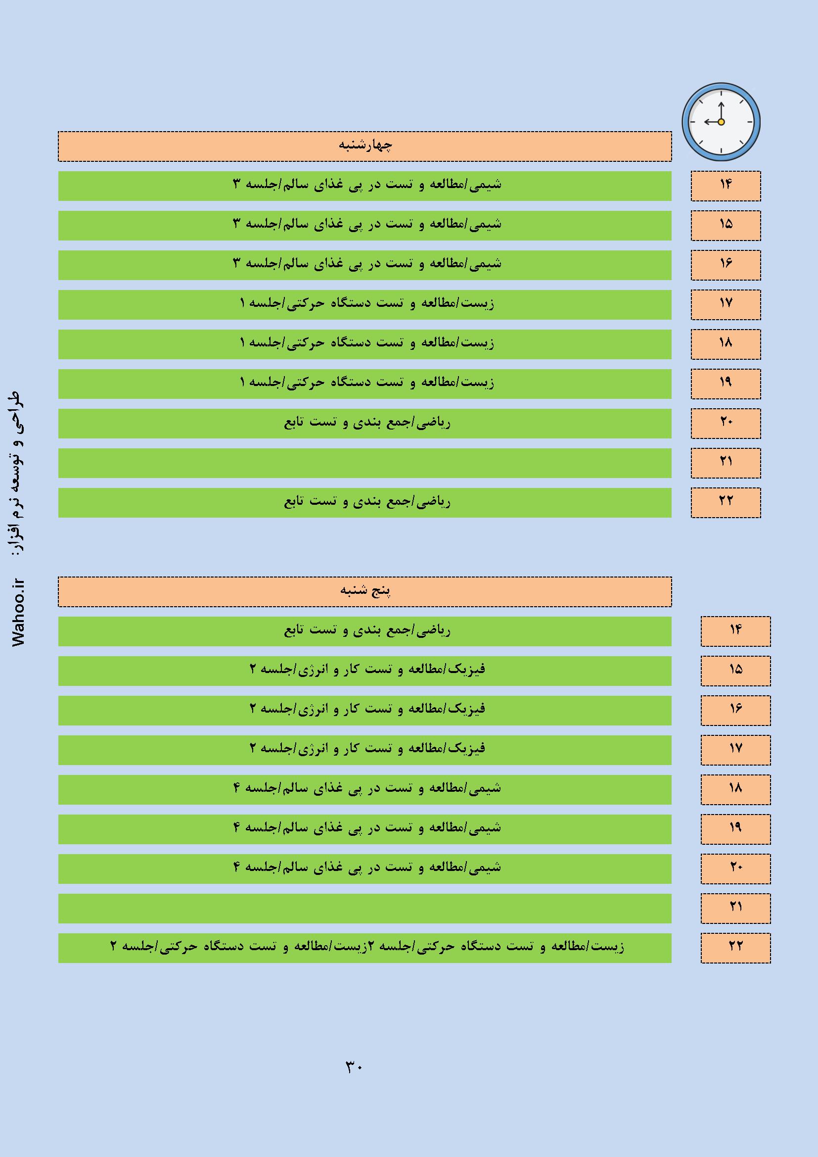در ادامه نمونه صفحاتی از گزارش نرم افزار پکیج نرم افزاری برنامه ریزی کنکور تجربی آورده شده است.