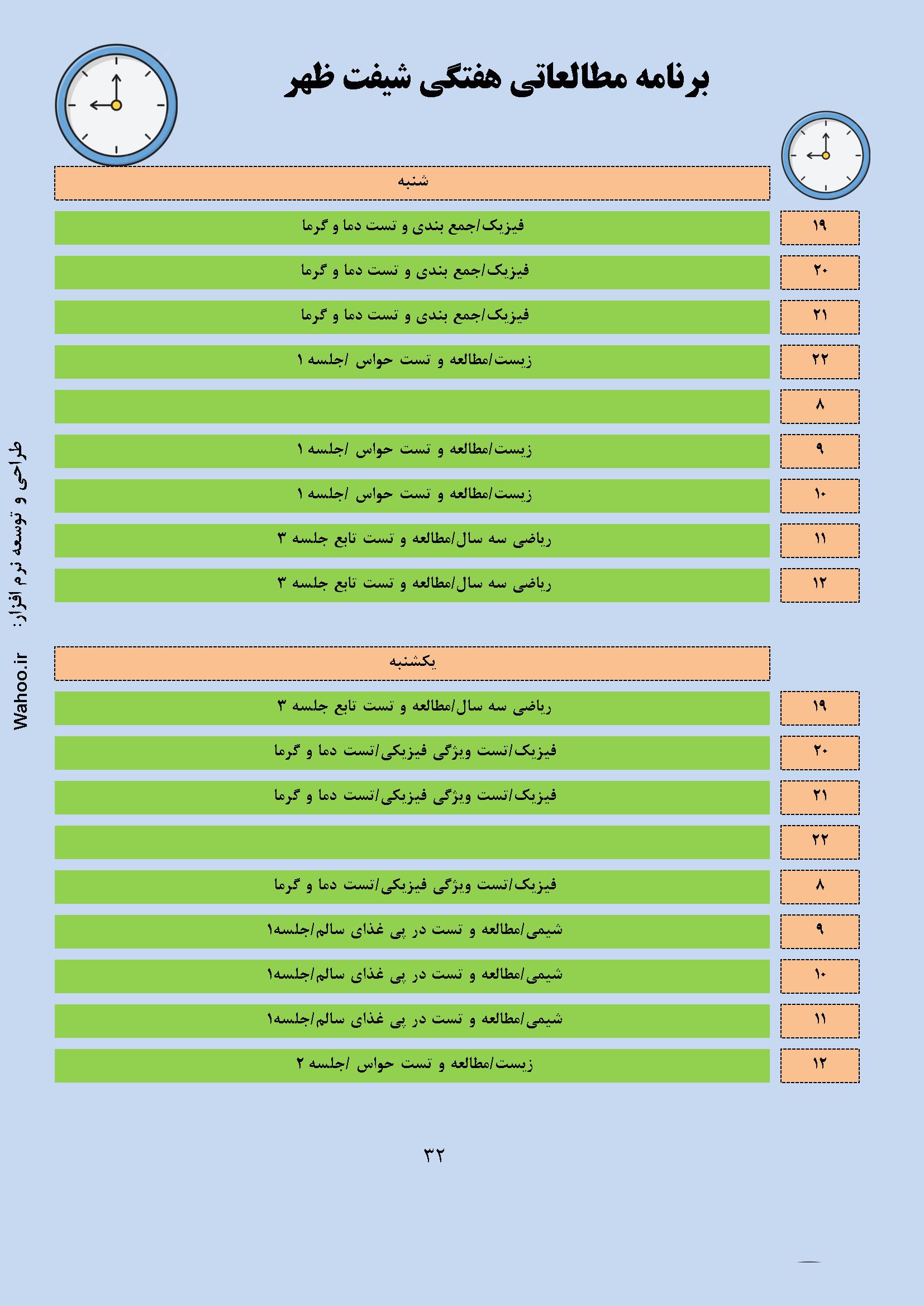 تنظیم شیفت‌های مختلف: این نرم‌افزار به شما امکان می‌دهد تا شیفت‌های صبح و ظهر را به‌طور دلخواه تنظیم کنید و بهترین زمان‌های مطالعه برای هر بخش را تعیین کنید.
