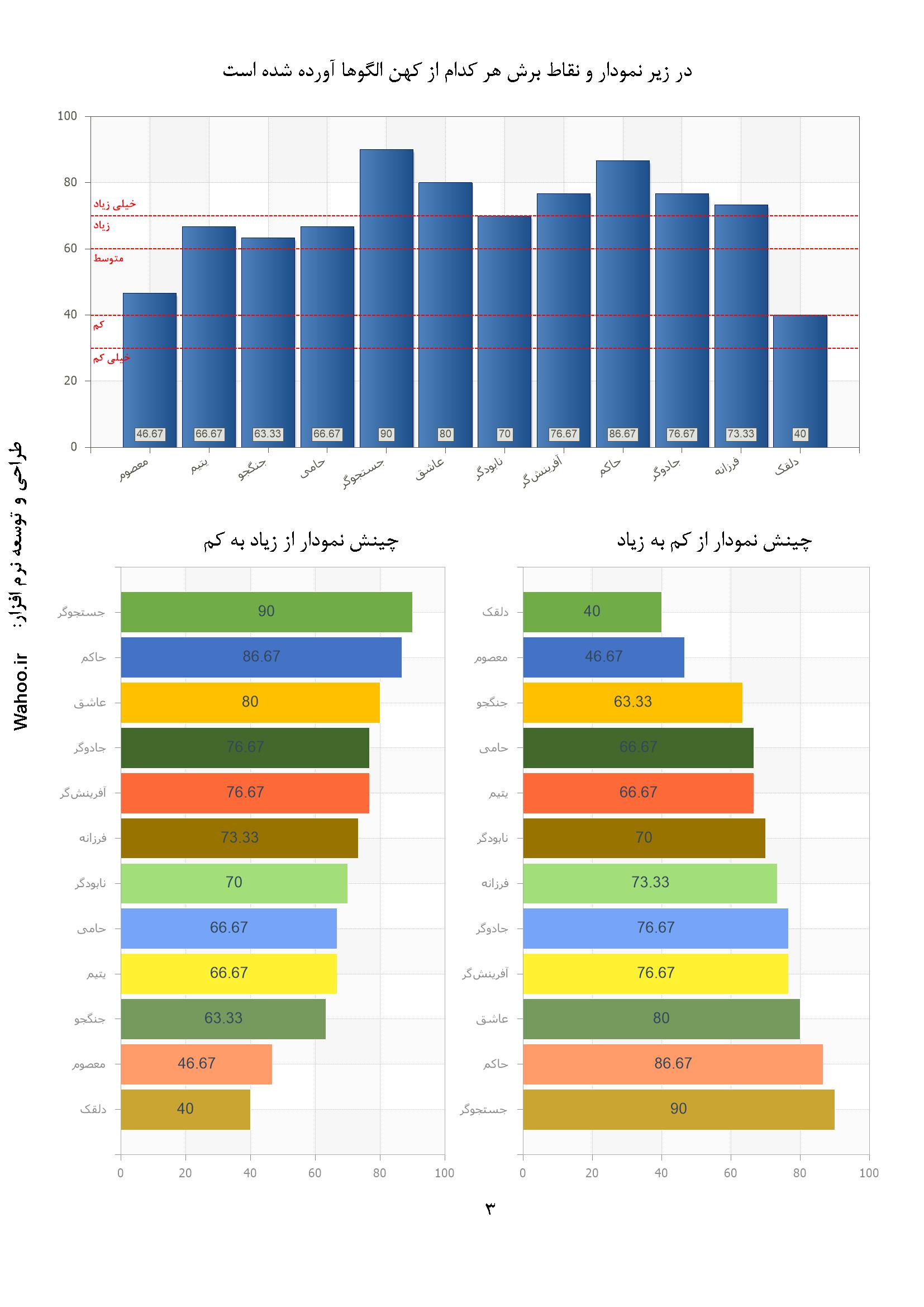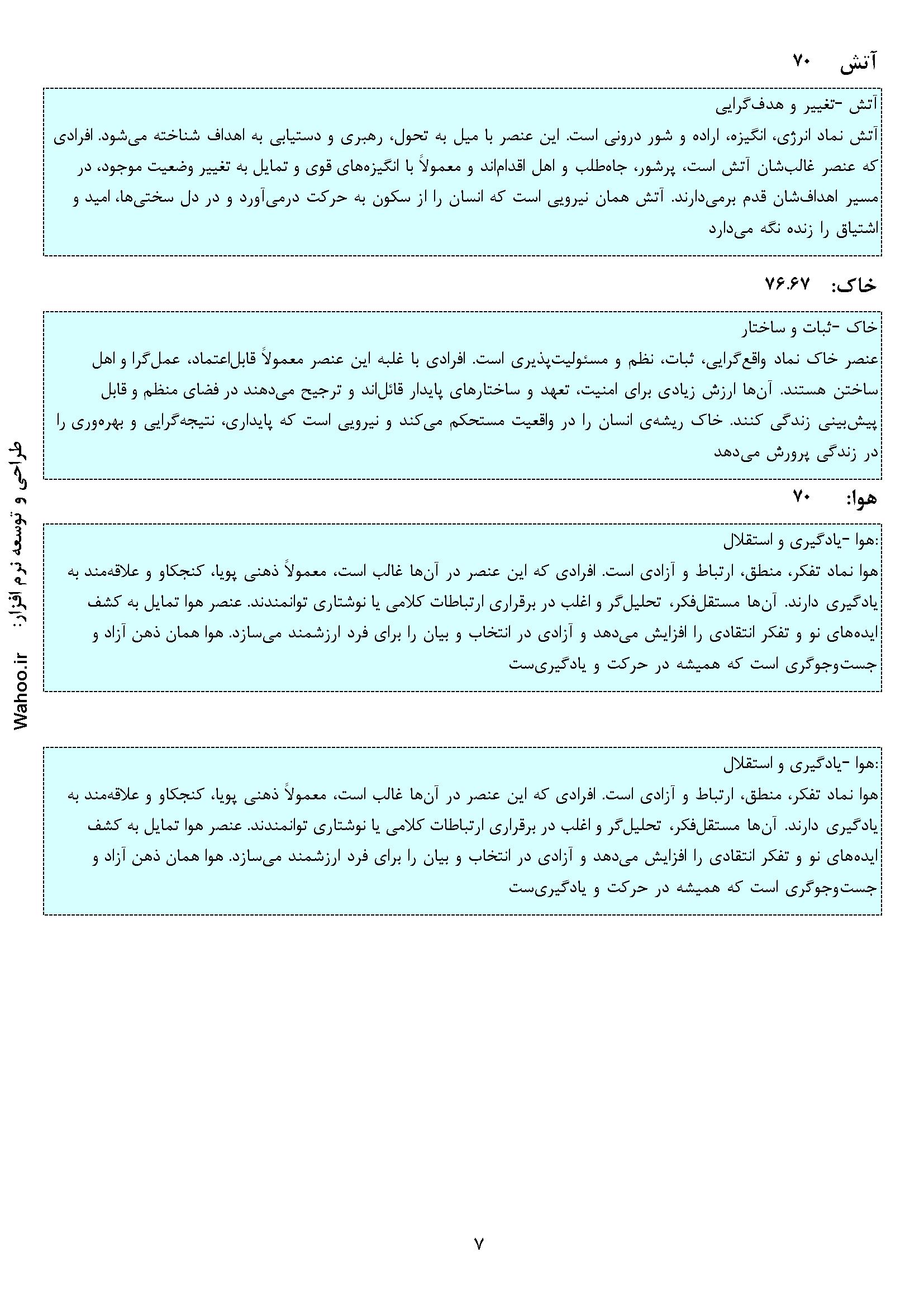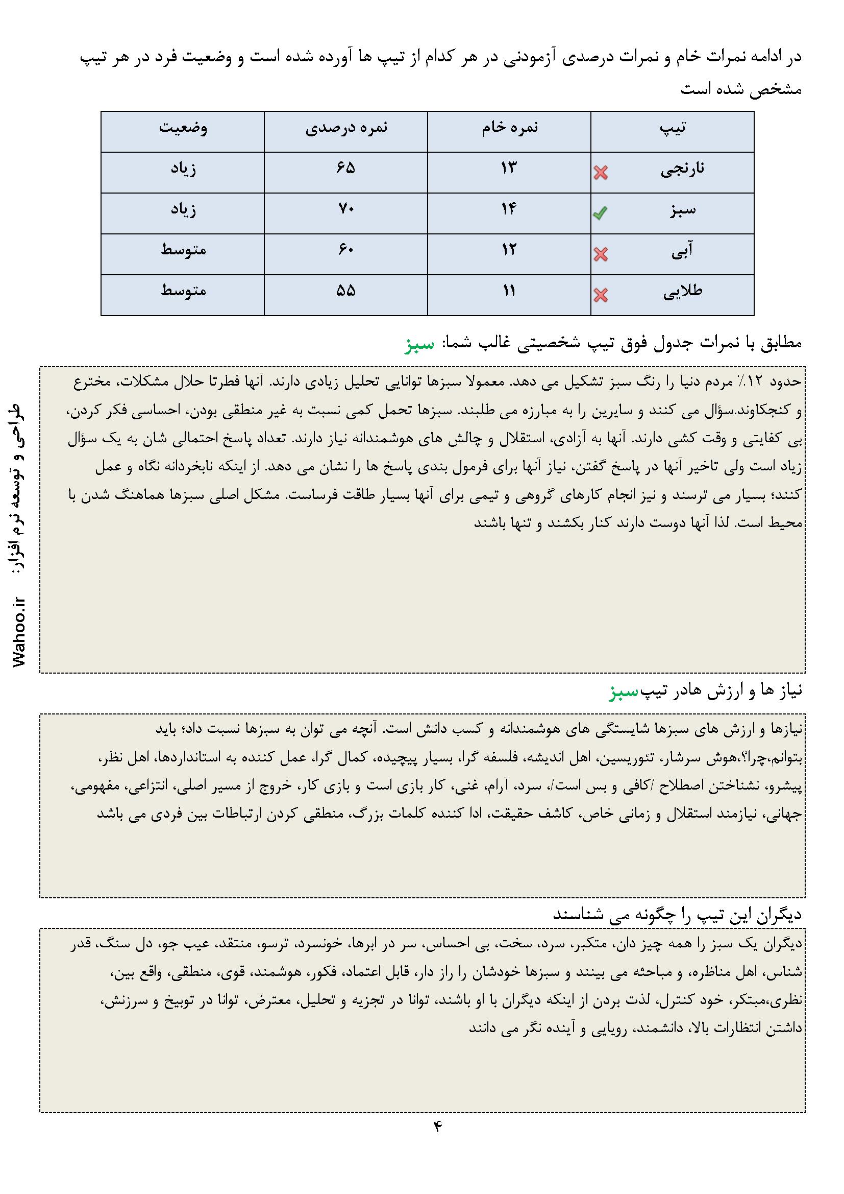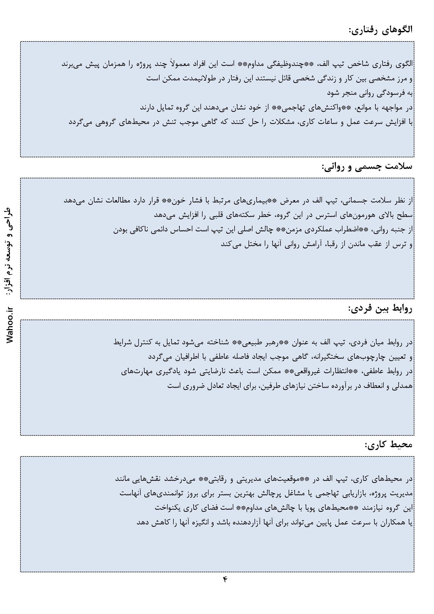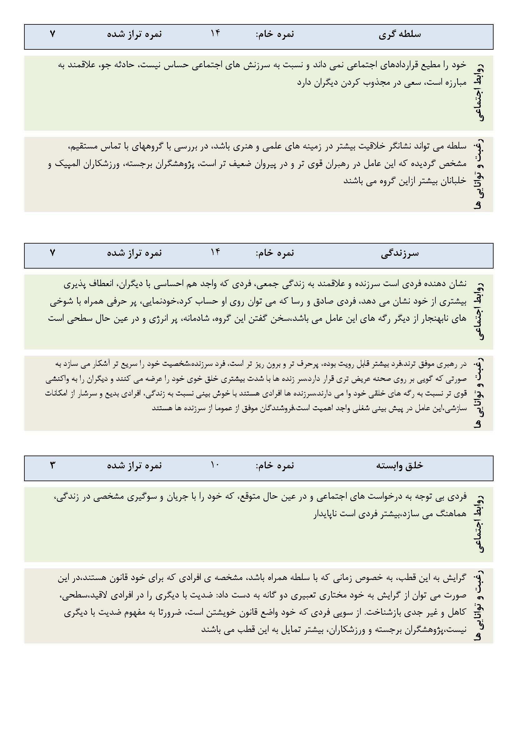 در ادامه نمونه صفحاتی از گزارش نرم‌افزار ارزیابی شخصیت A و B آورده شده است.