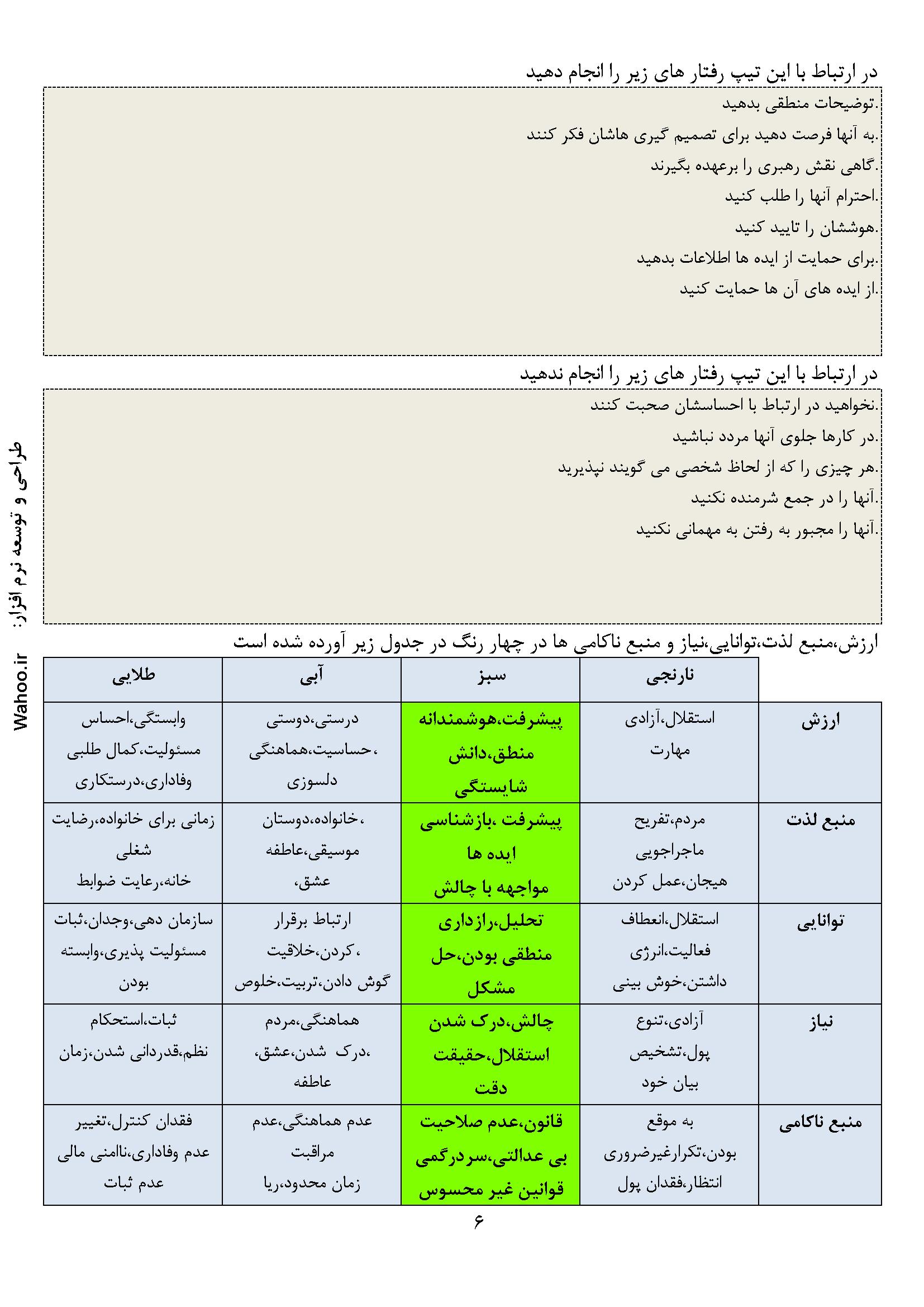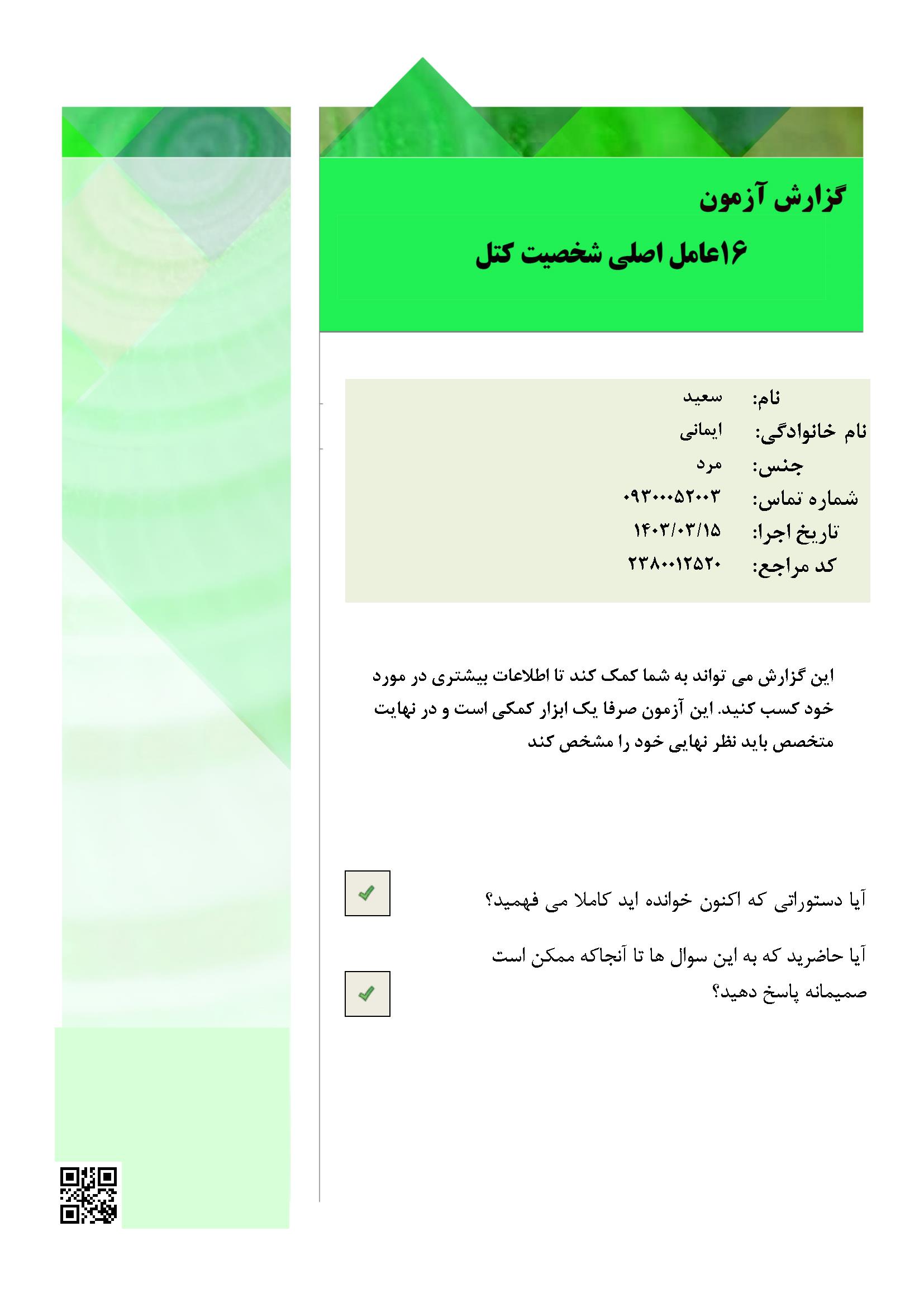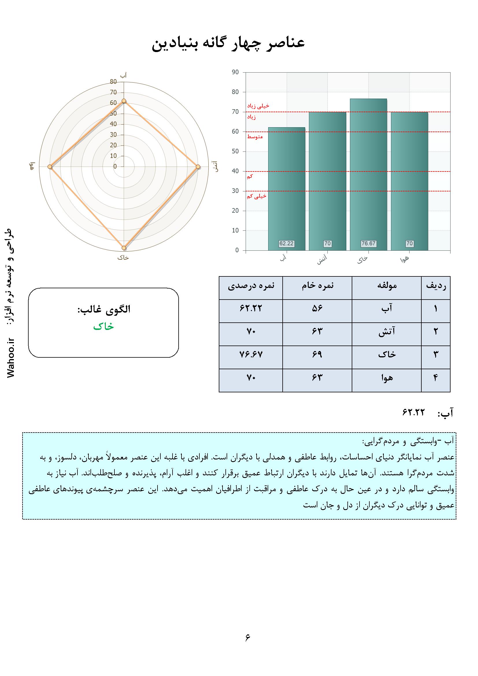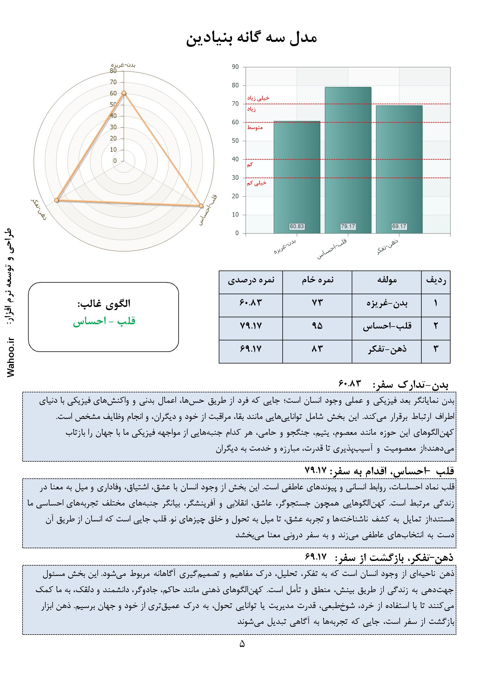 در ادامه نمونه صفحاتی از گزارش نرم‌افزار ارزیابی شخصیت A و B آورده شده است.