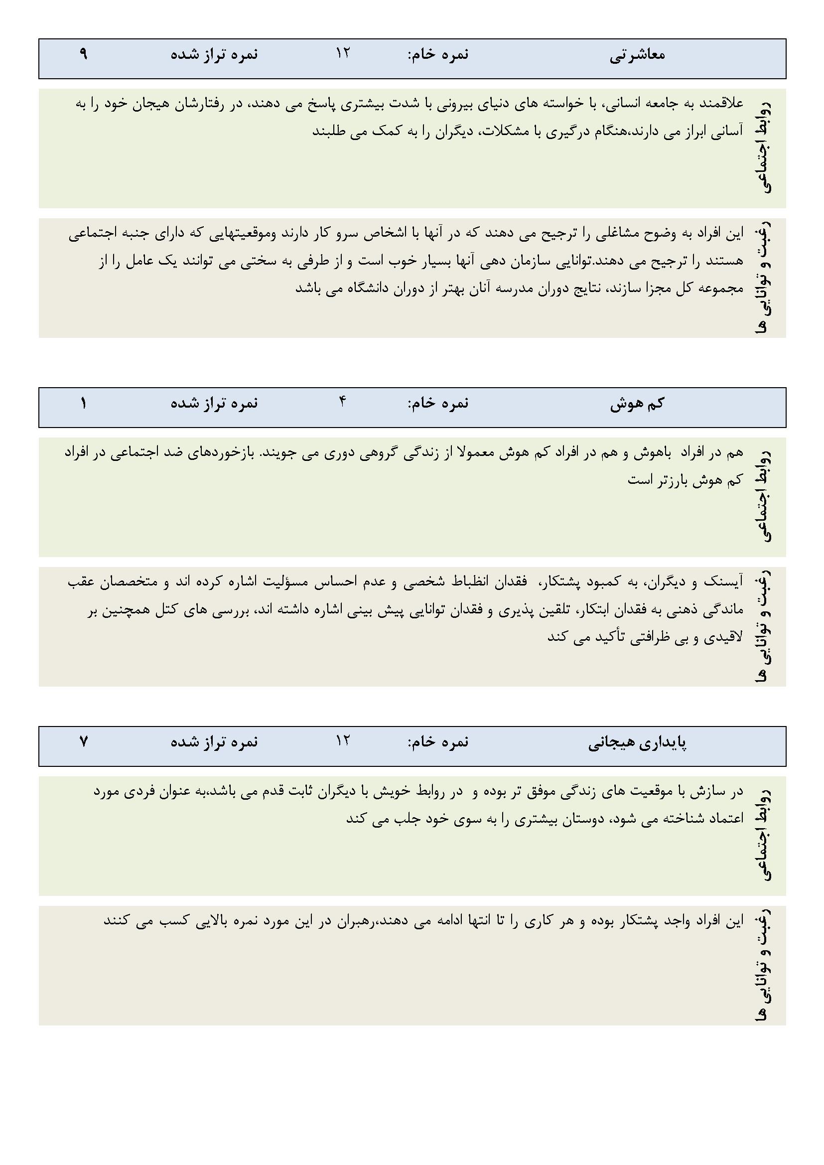در ادامه نمونه صفحاتی از گزارش نرم افزار شخصیت آیزنک نوجوان آورده شده است.
