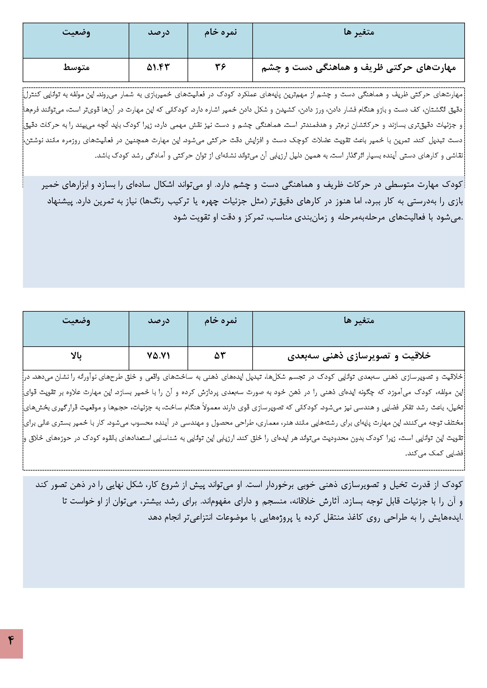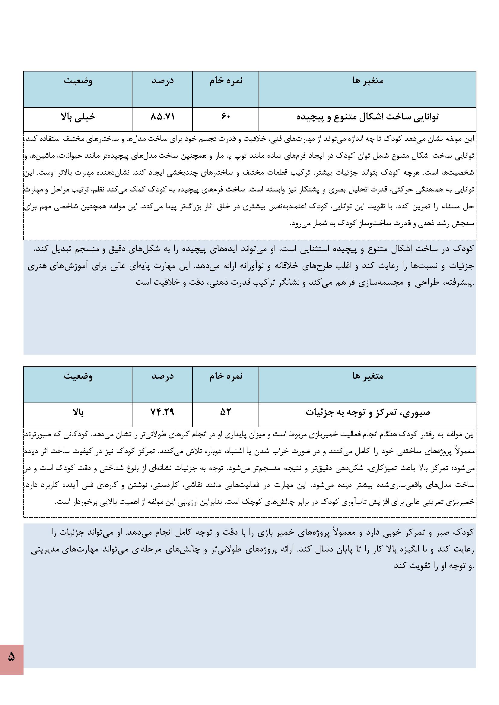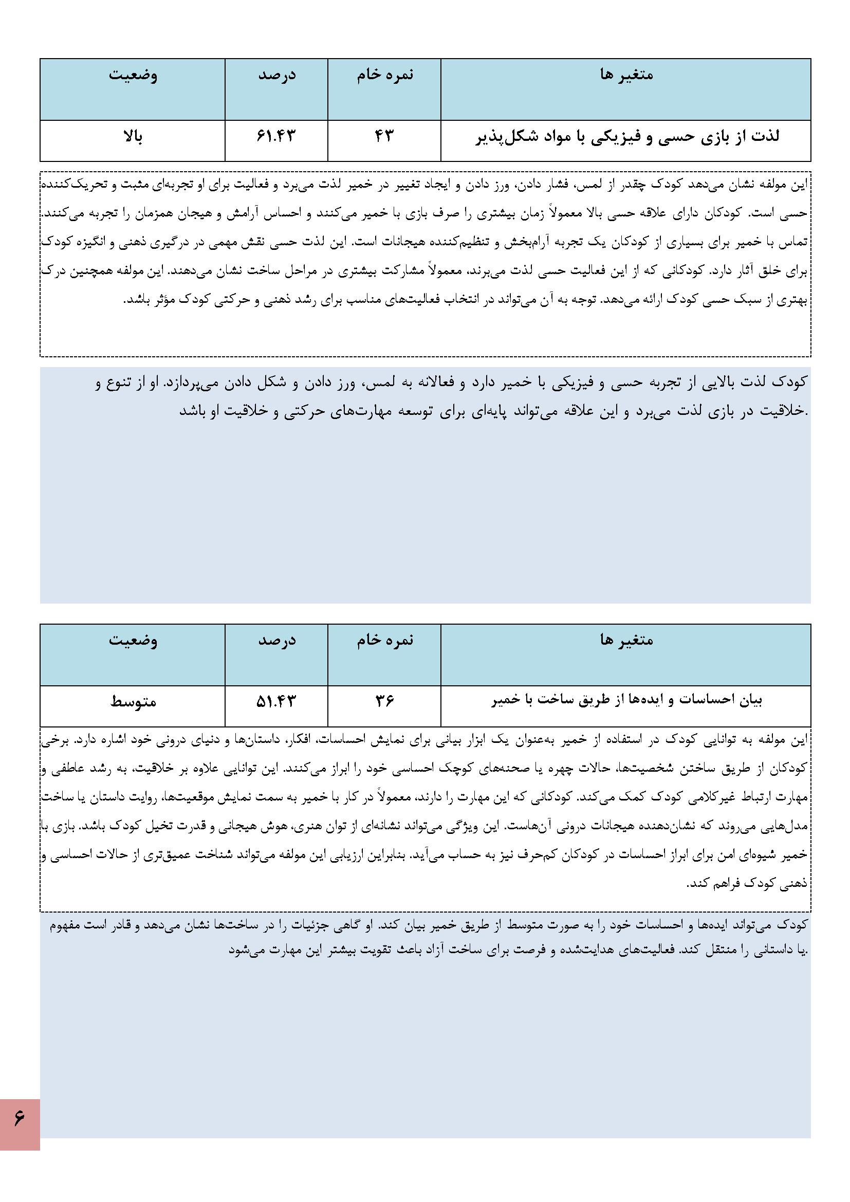 در زیر نمونه خروجی نرمافزار استعدادیابی خمیر بازی کودکان آورده شده است