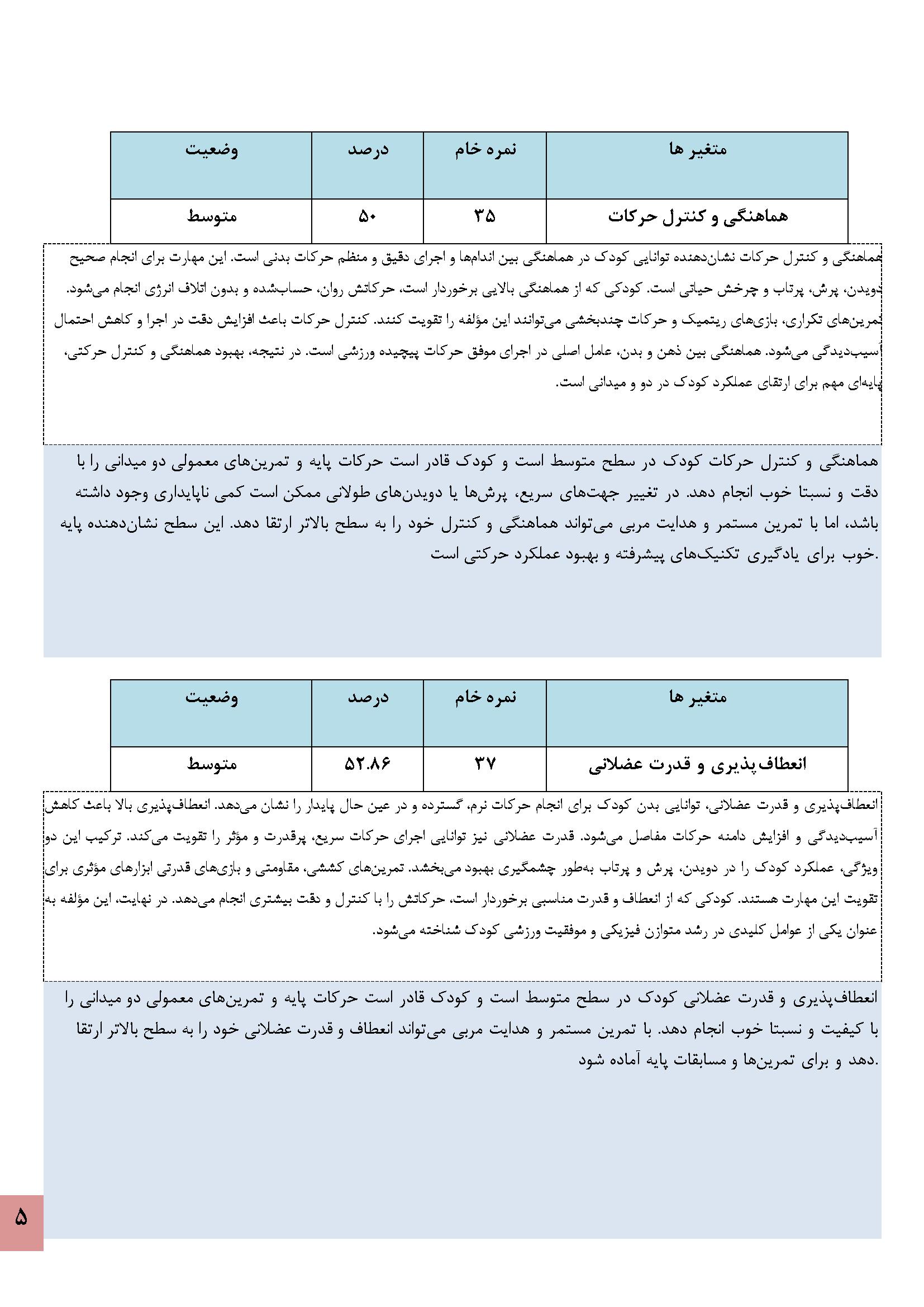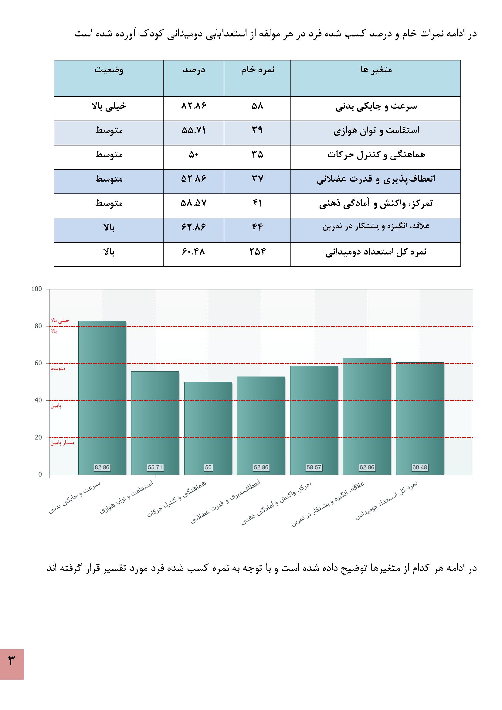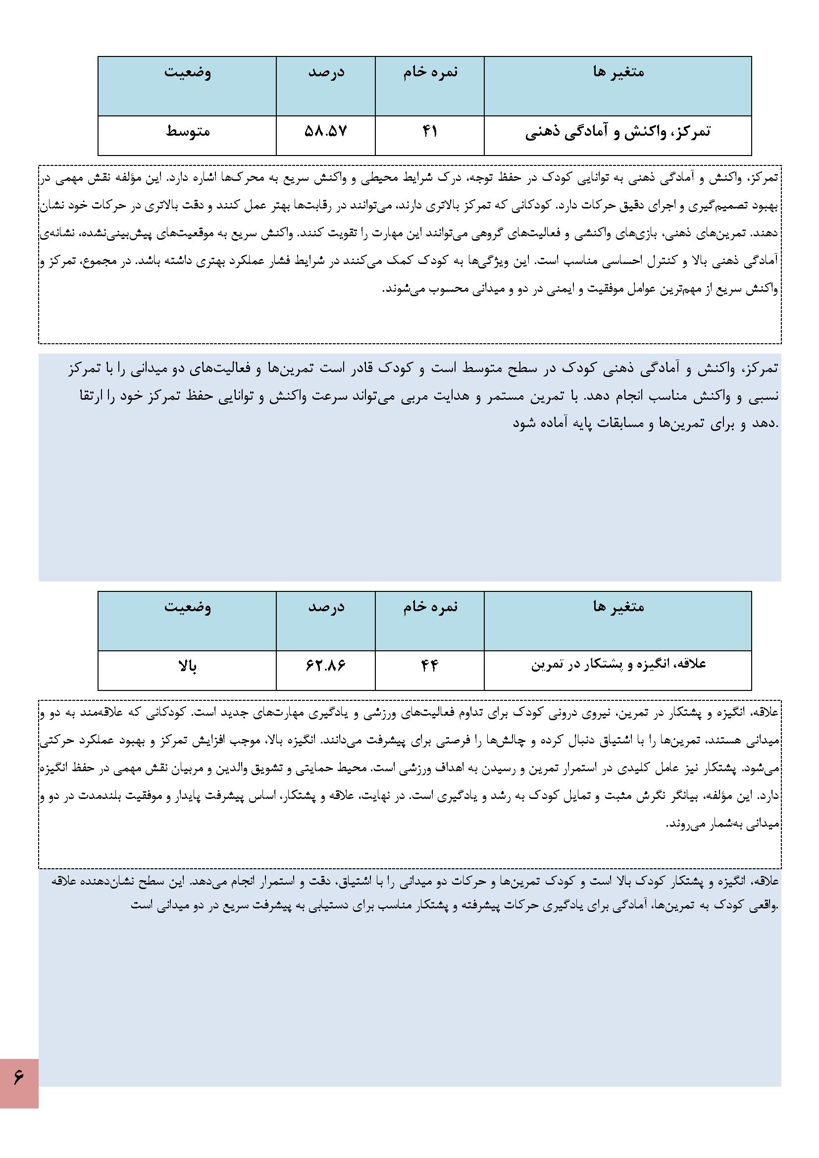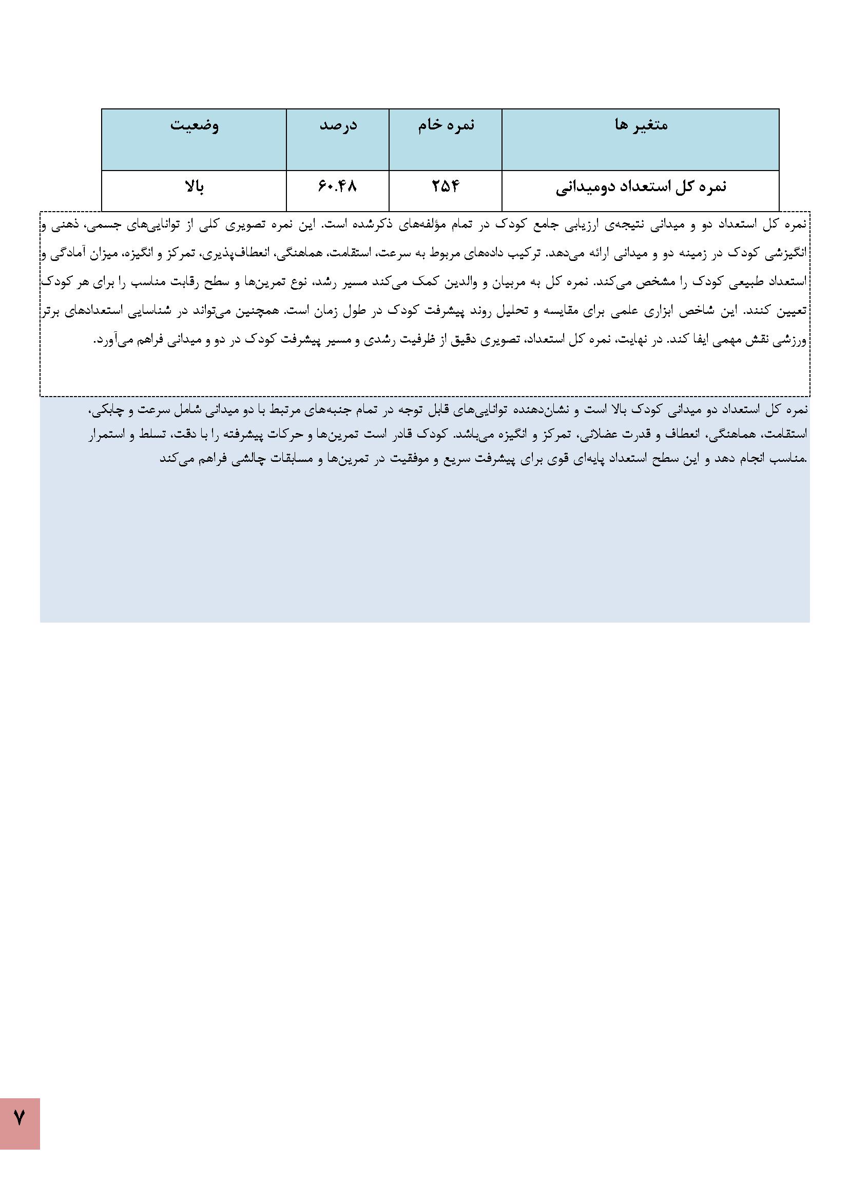در زیر نمونه خروجی نرمافزار استعدادیابی دو میدانی کودکان کودکان آورده شده است
