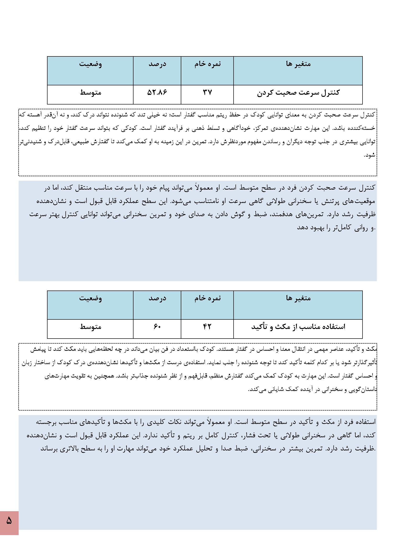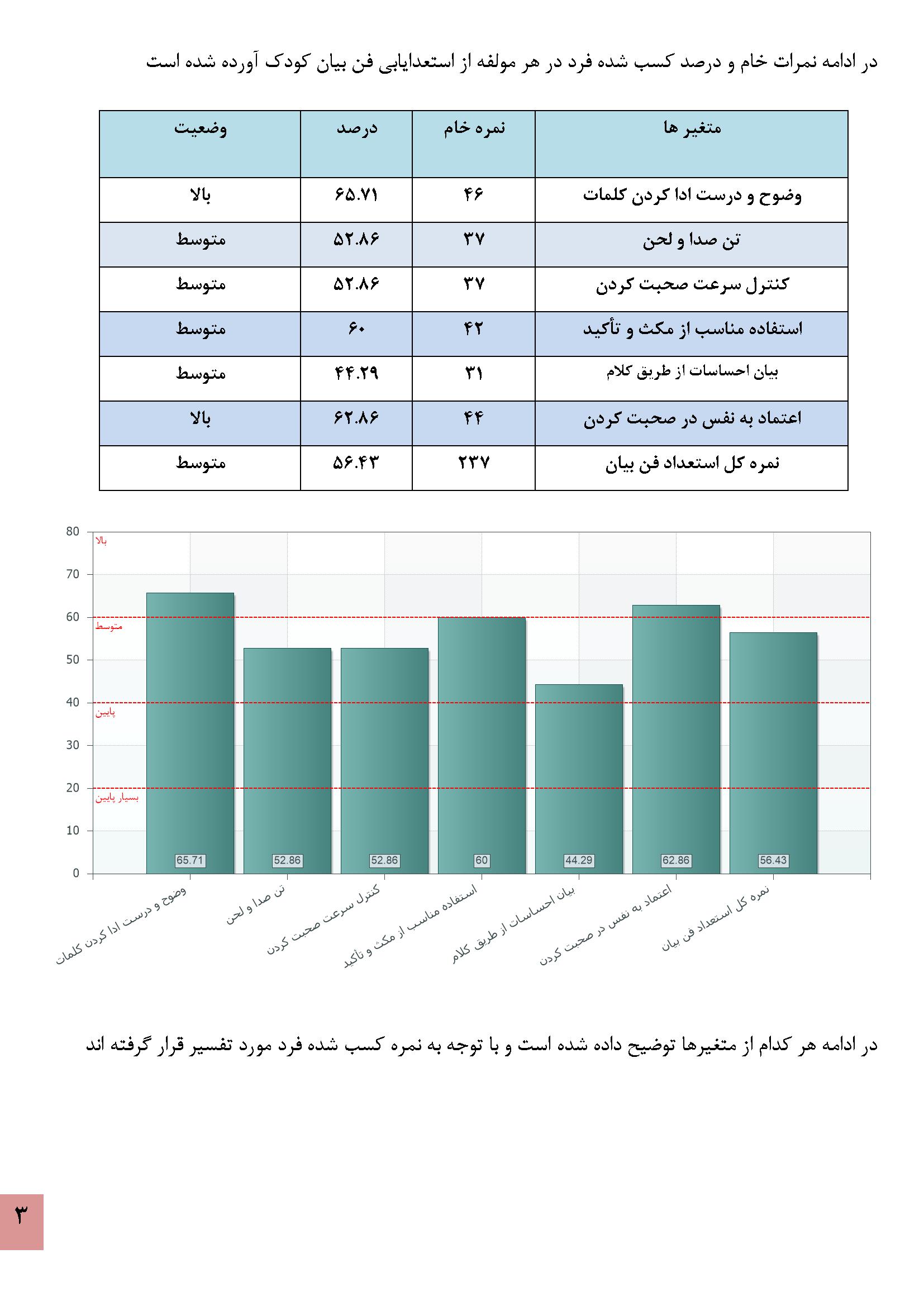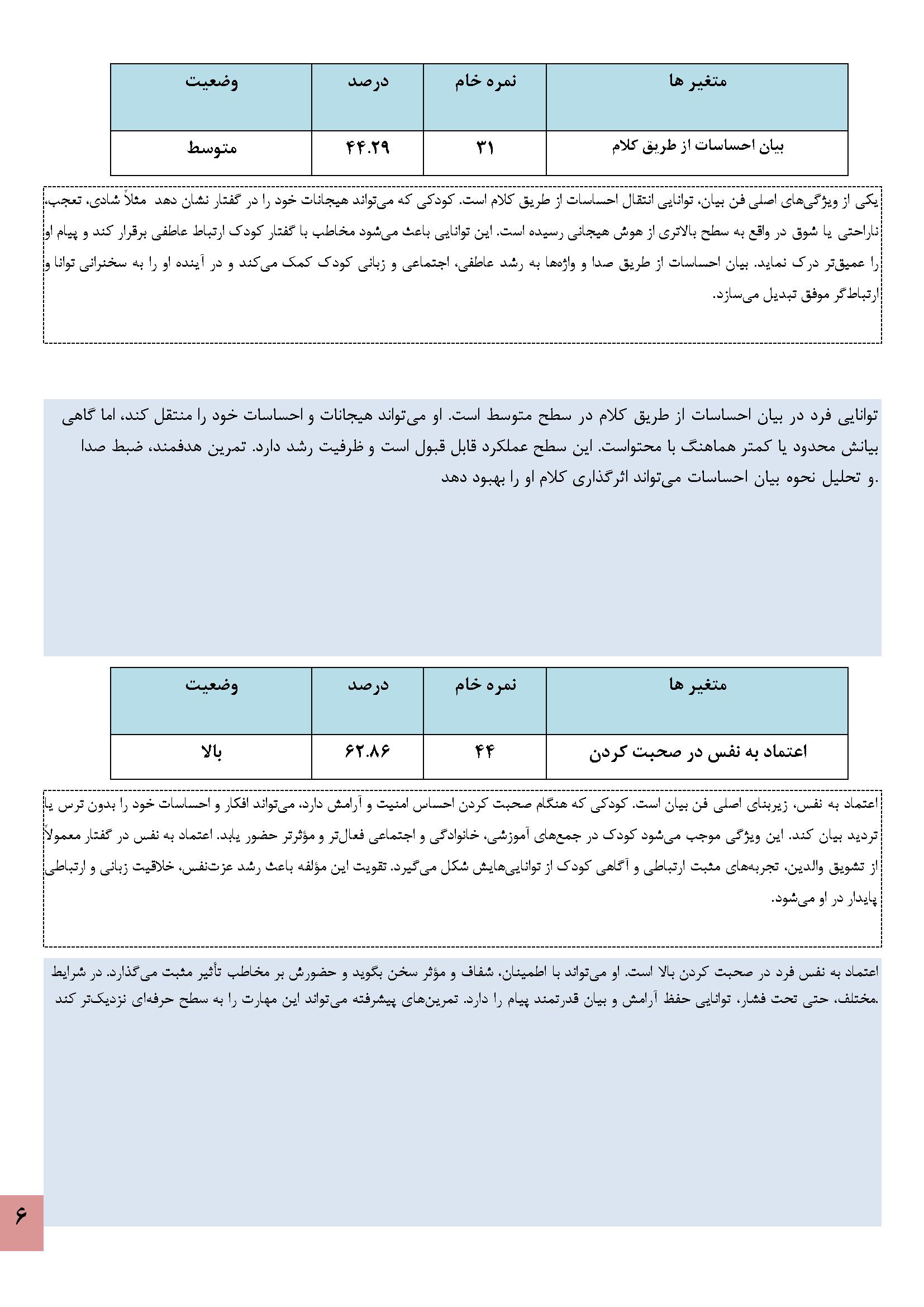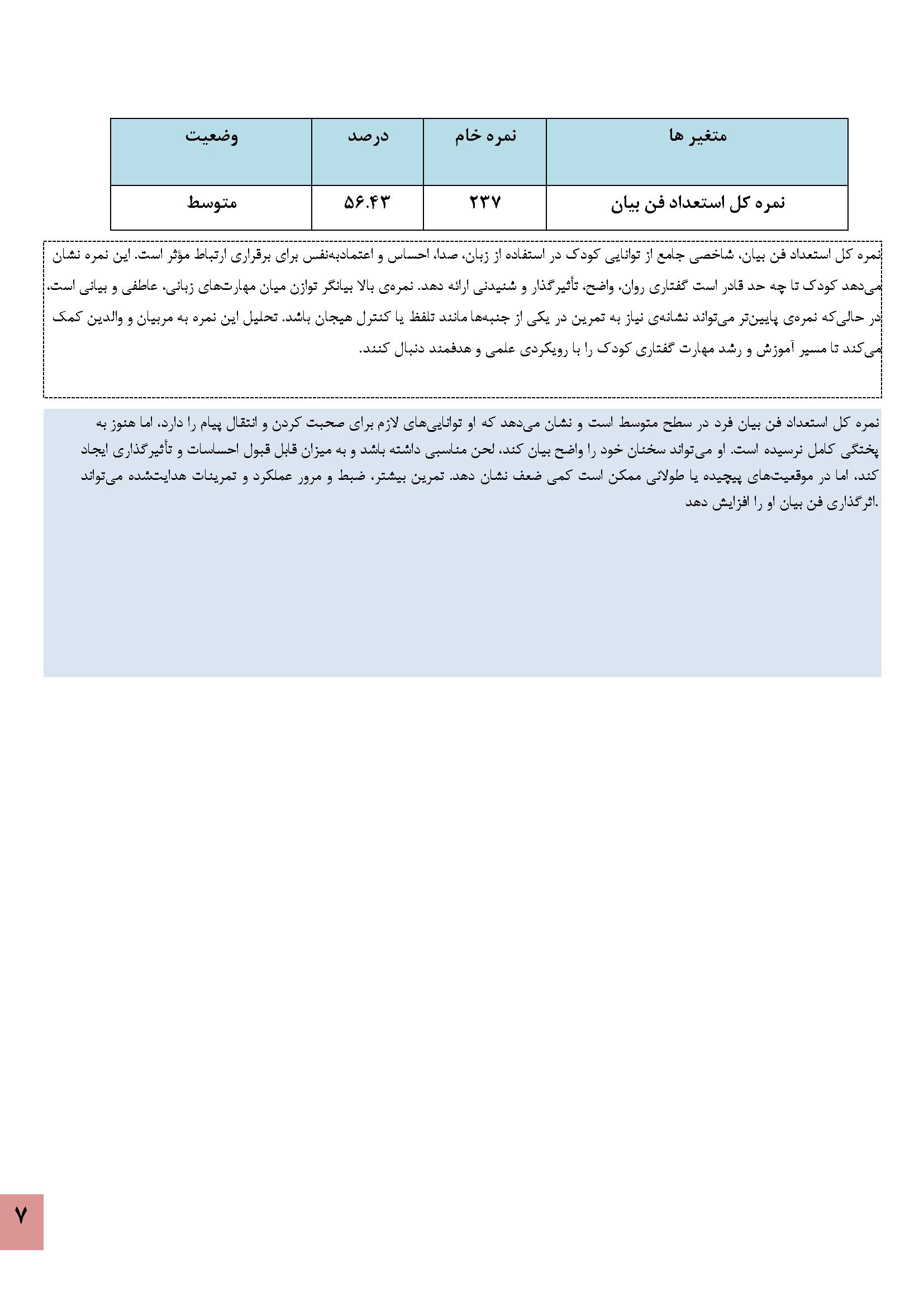 در زیر نمونه خروجی نرمافزار استعدادیابی فن بیان کودکان آورده شده است