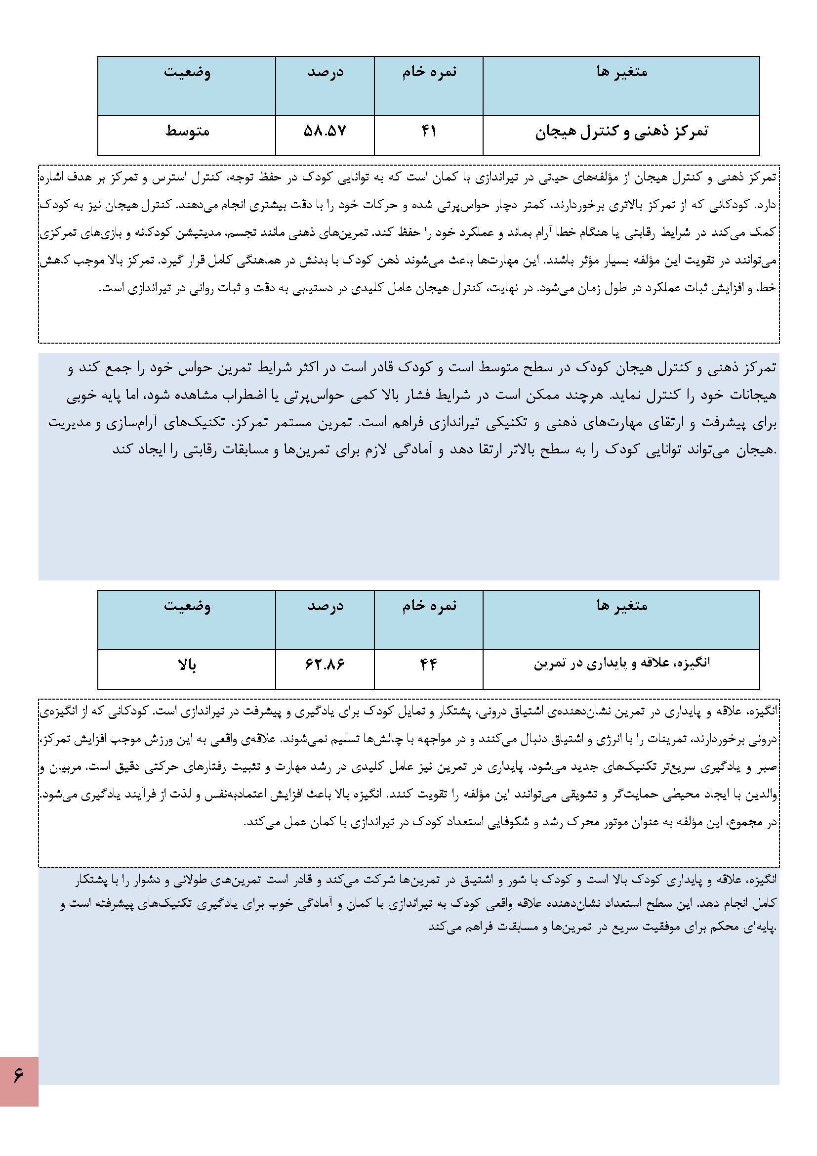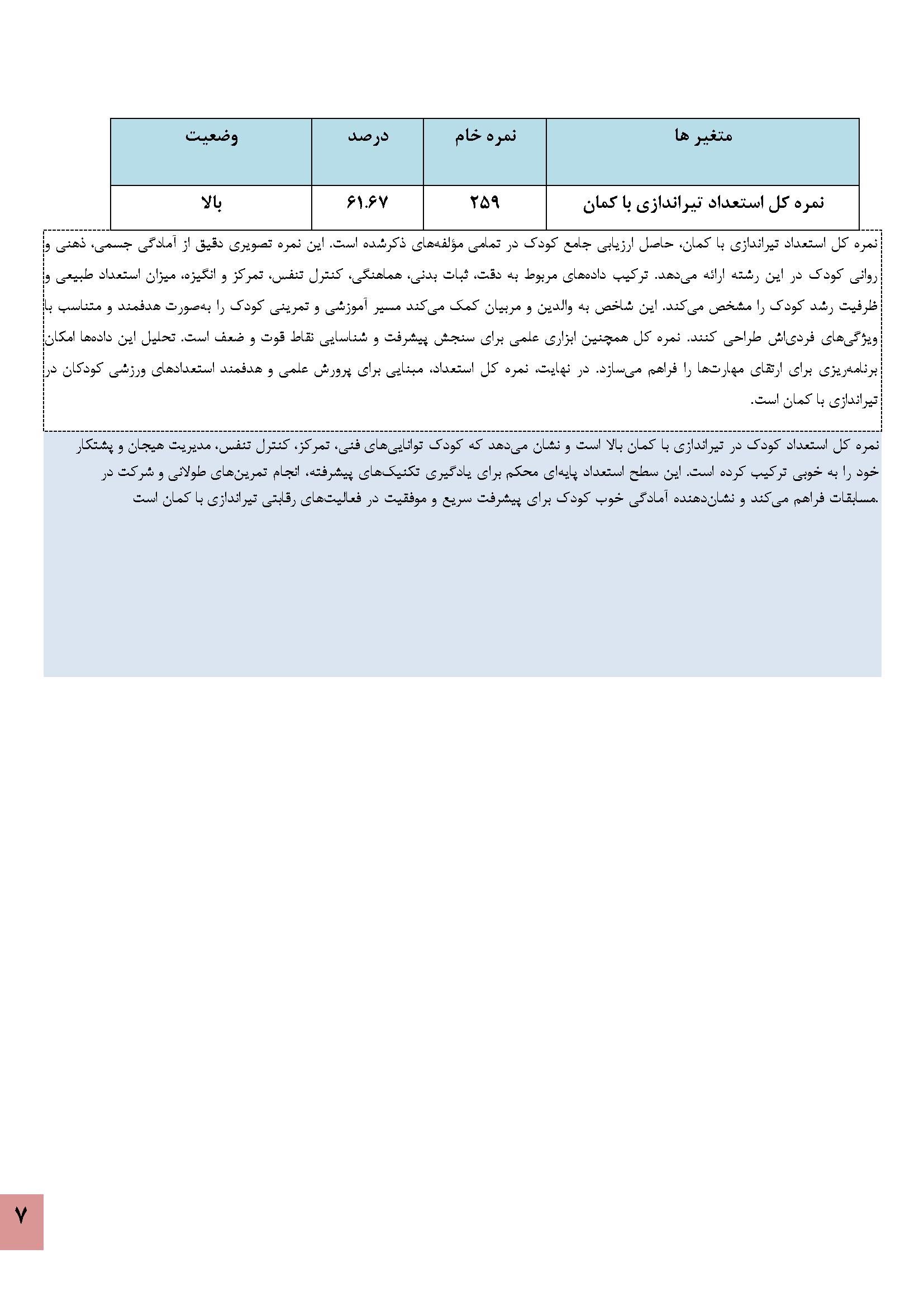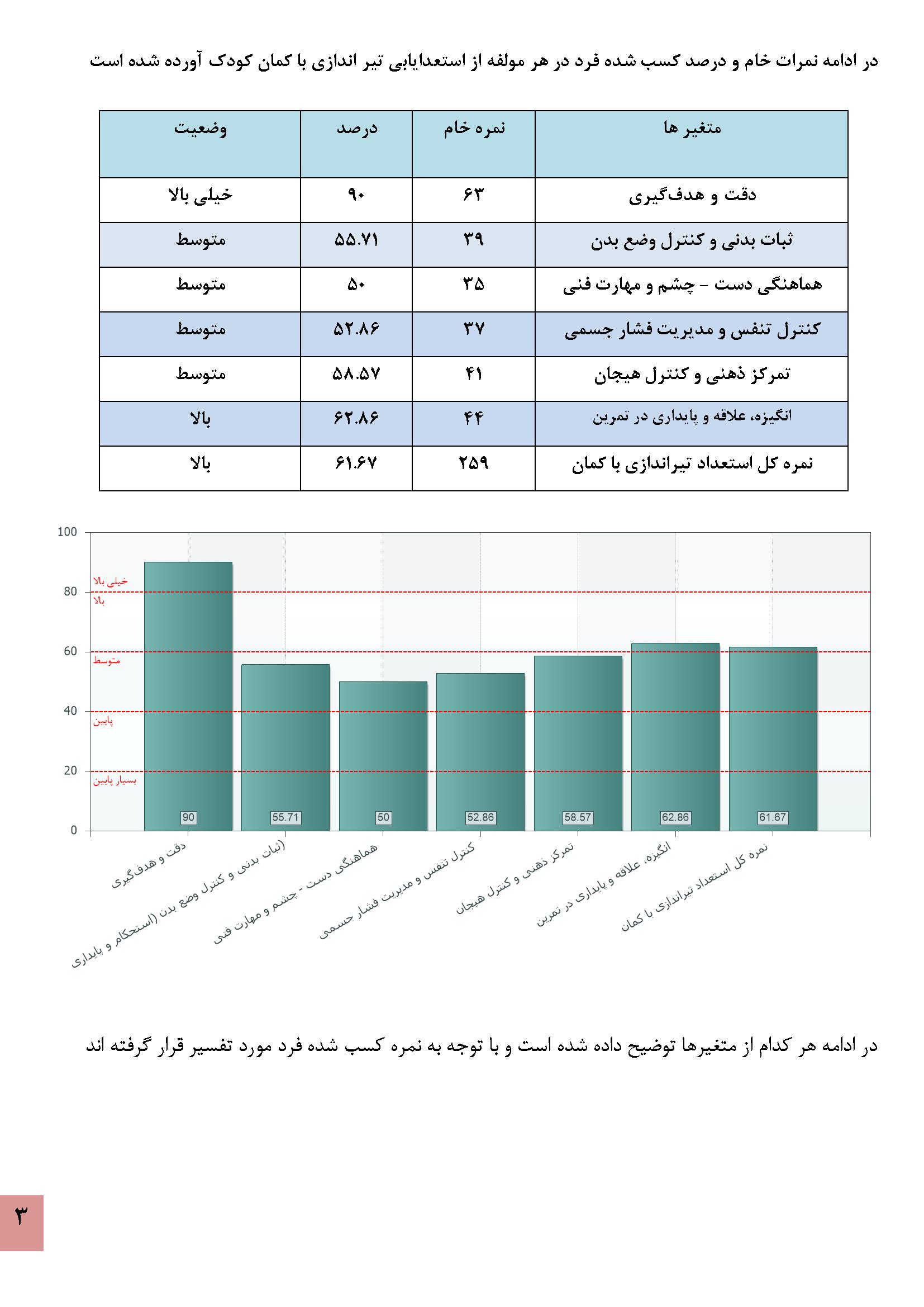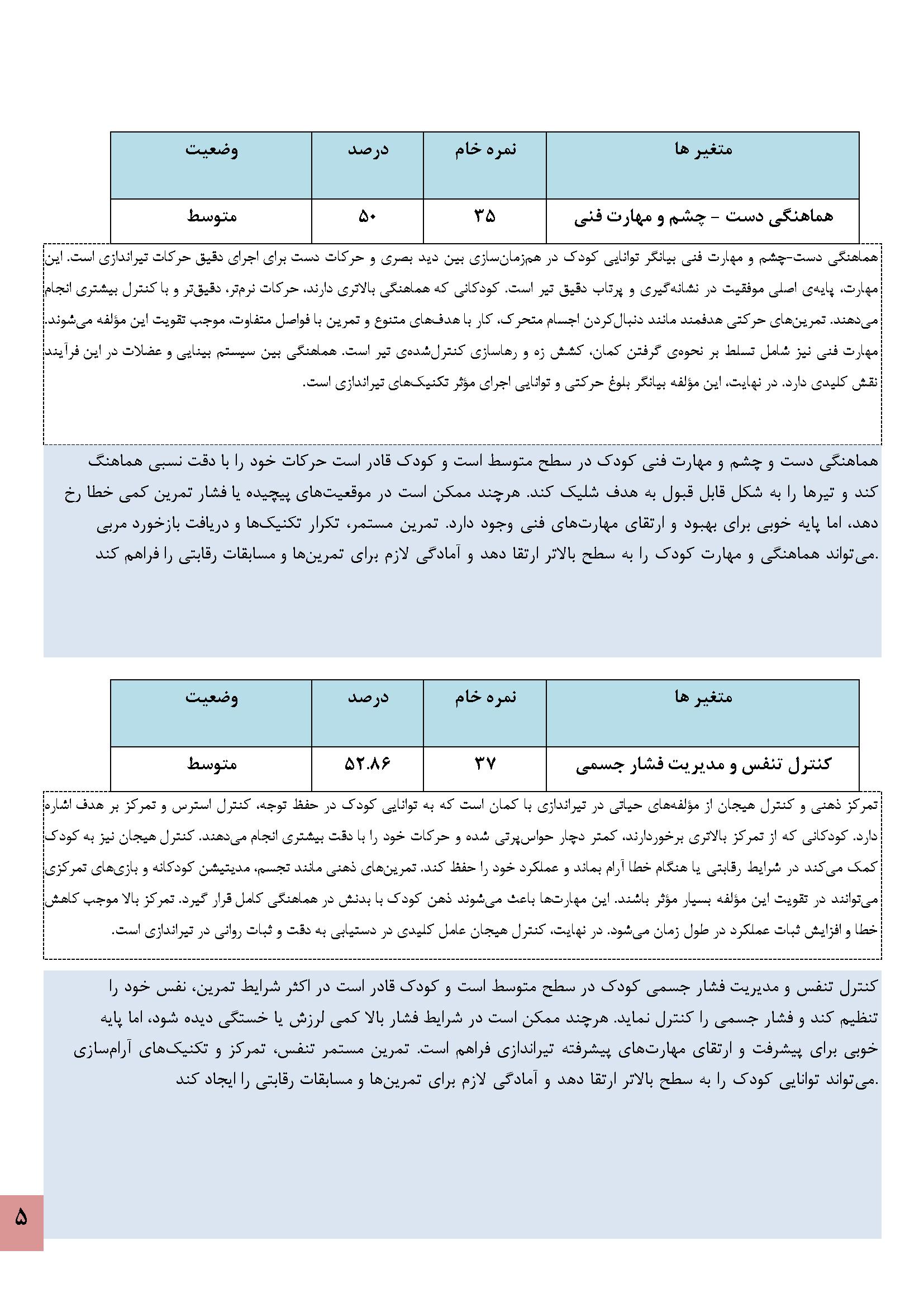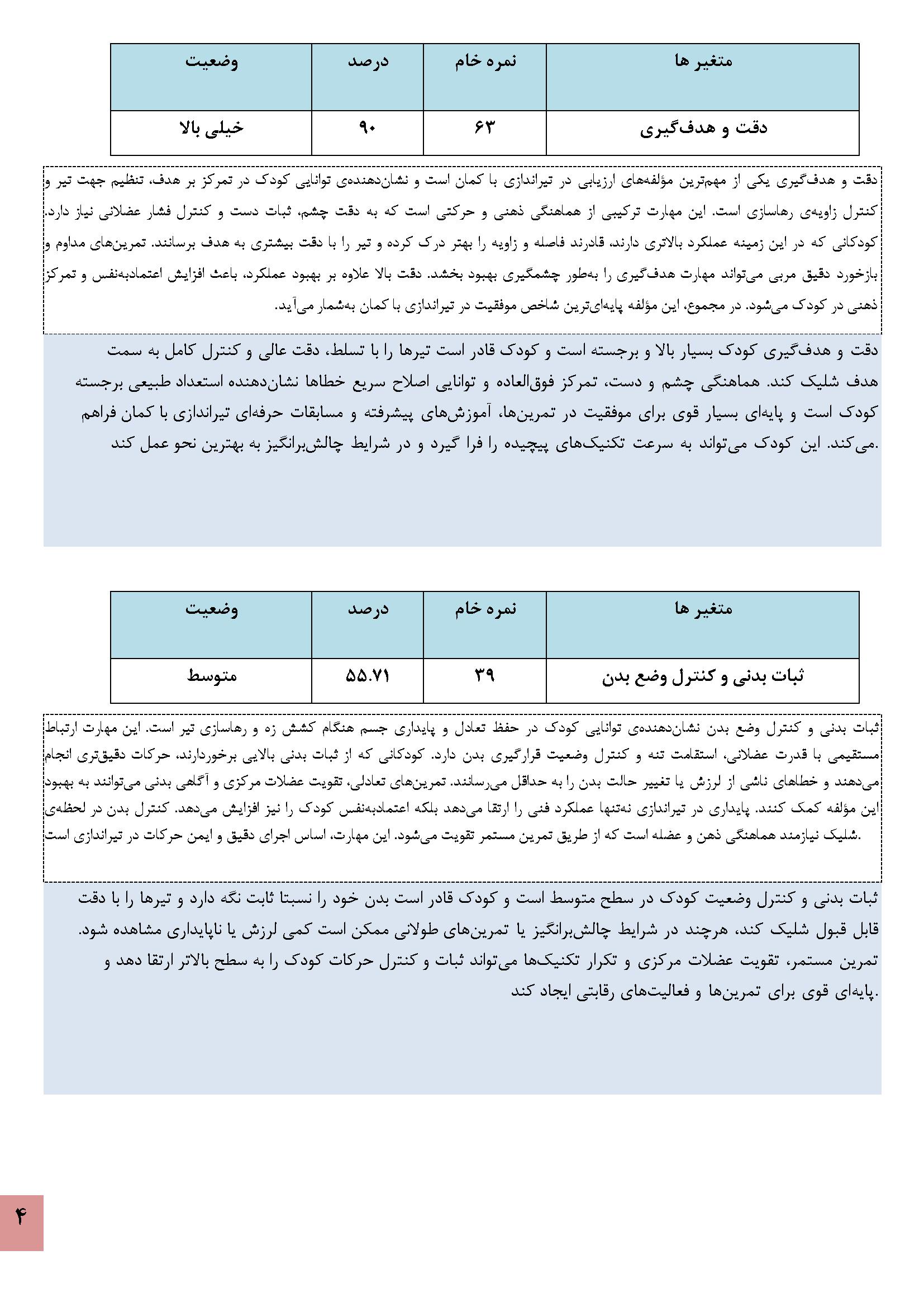 در زیر نمونه خروجی نرمافزار استعدادیابی تیر اندازی با کمان کودکان آورده شده است