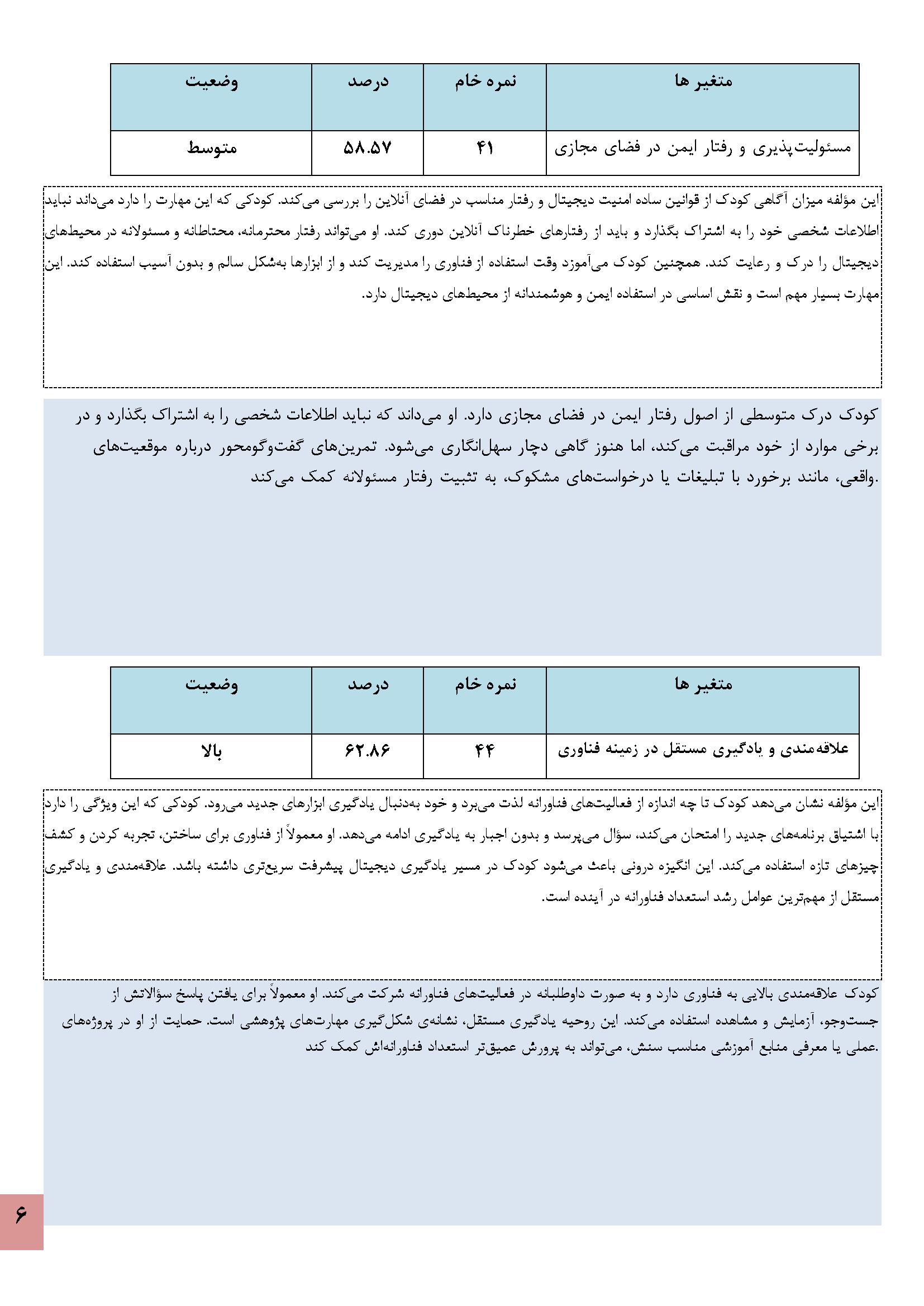 بررسی سطح آگاهی کودک در امنیت دیجیتال، رعایت قوانین و رفتار صحیح در فضای مجازی.