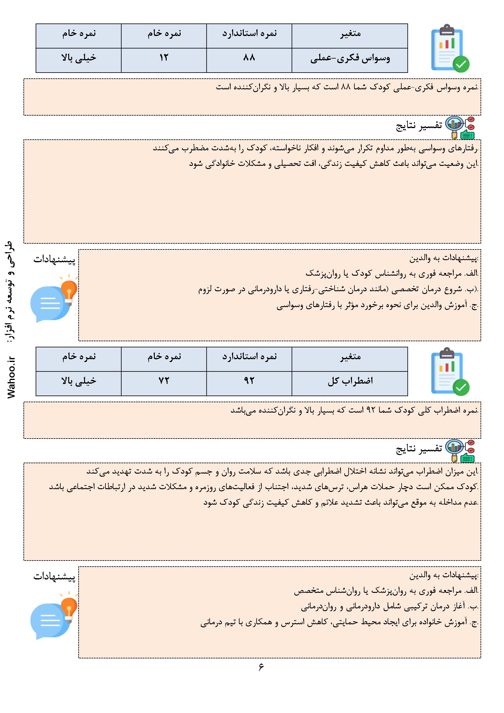 در ادامه نمونه صفحاتی از  نرم افزار اضطراب کودک اسپنس فرم والد آورده شده است