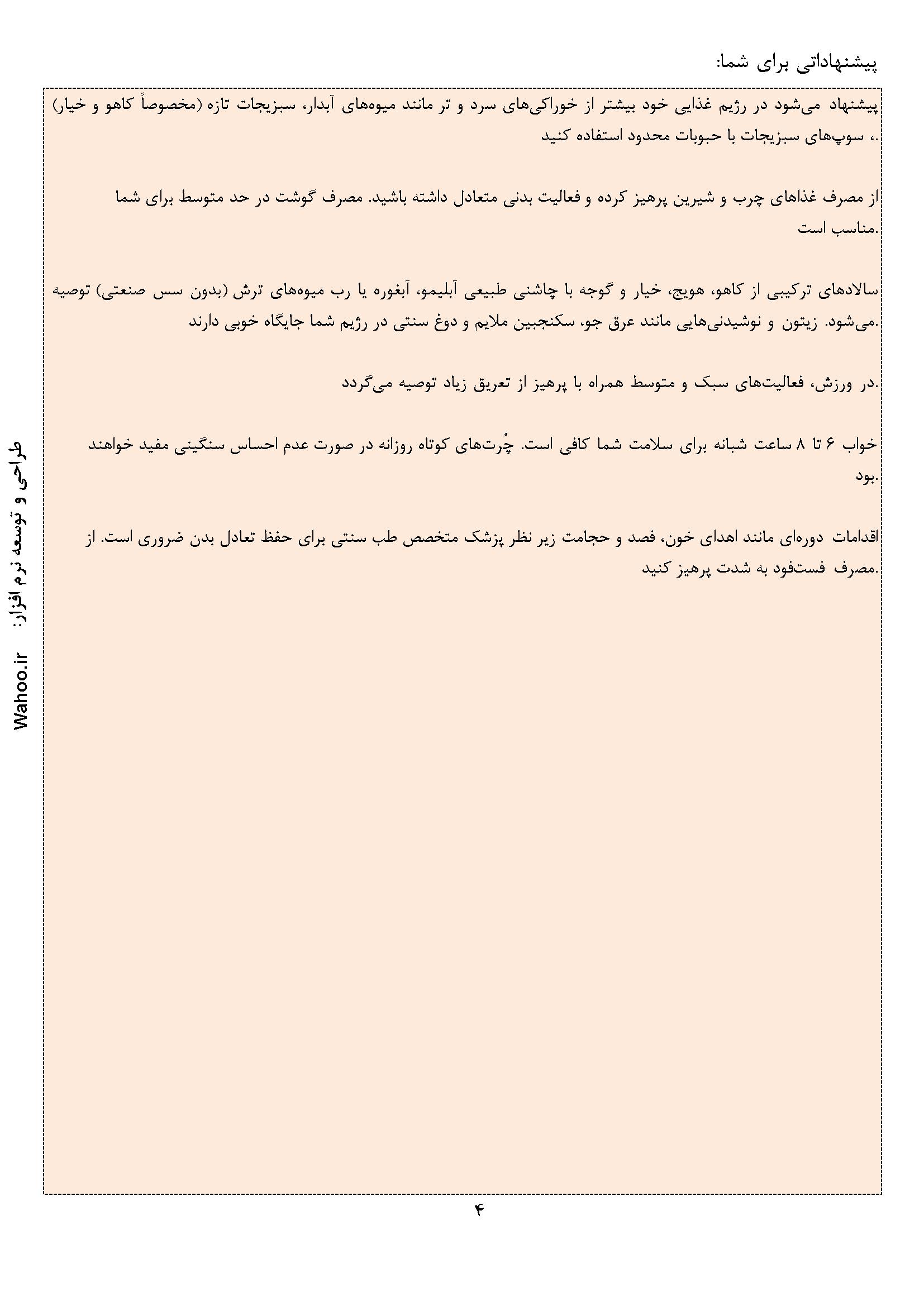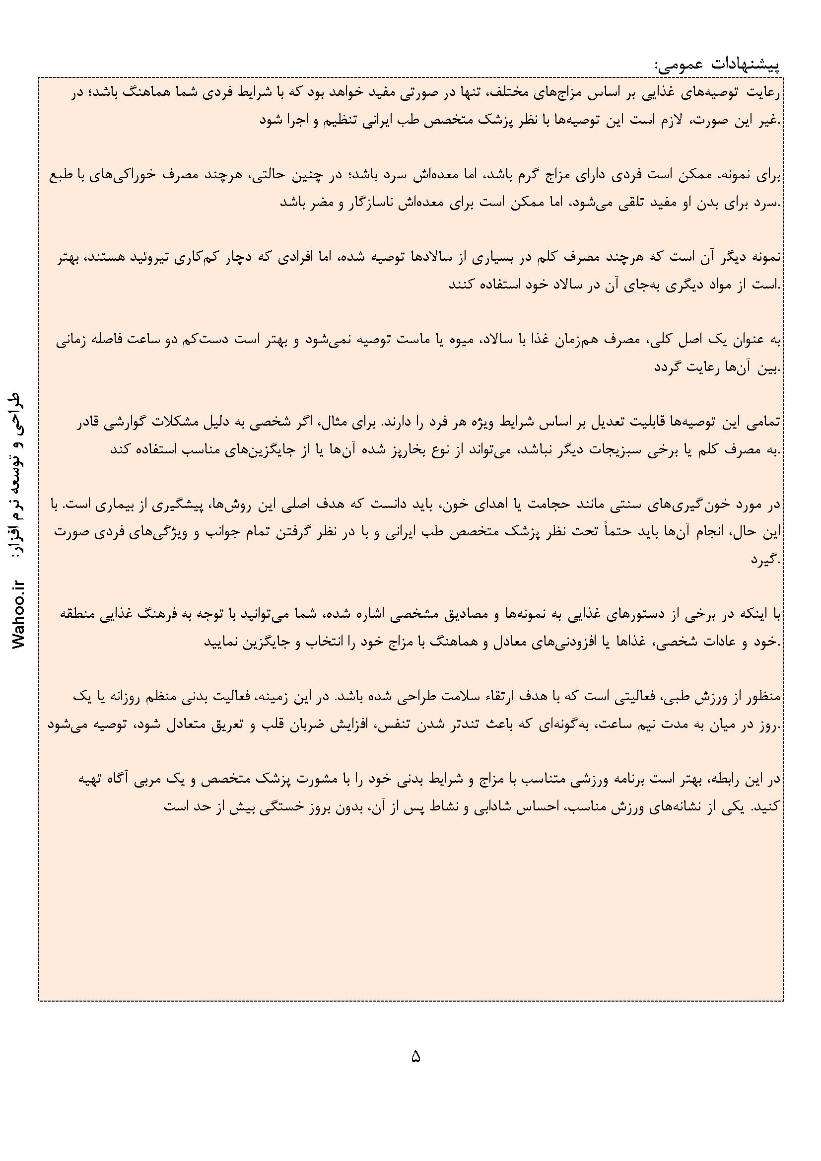 در ادامه نمونه صفحاتی از گزارش نرم افزار مزاج شناسی آورده شده است.