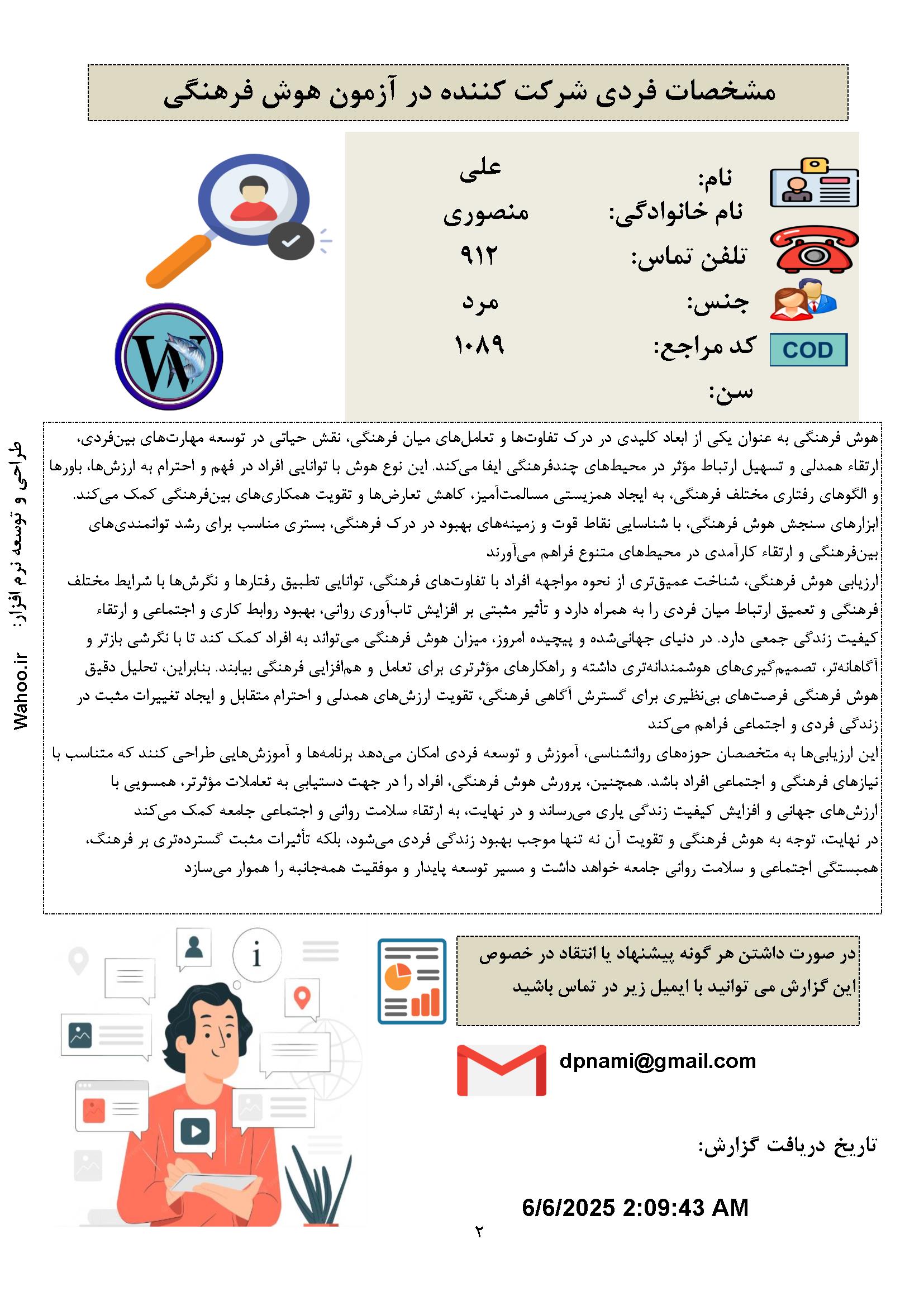 ✔ تحلیل چهار بعد هوش فرهنگی با گزارشهای جامع و نمودارهای تعاملی