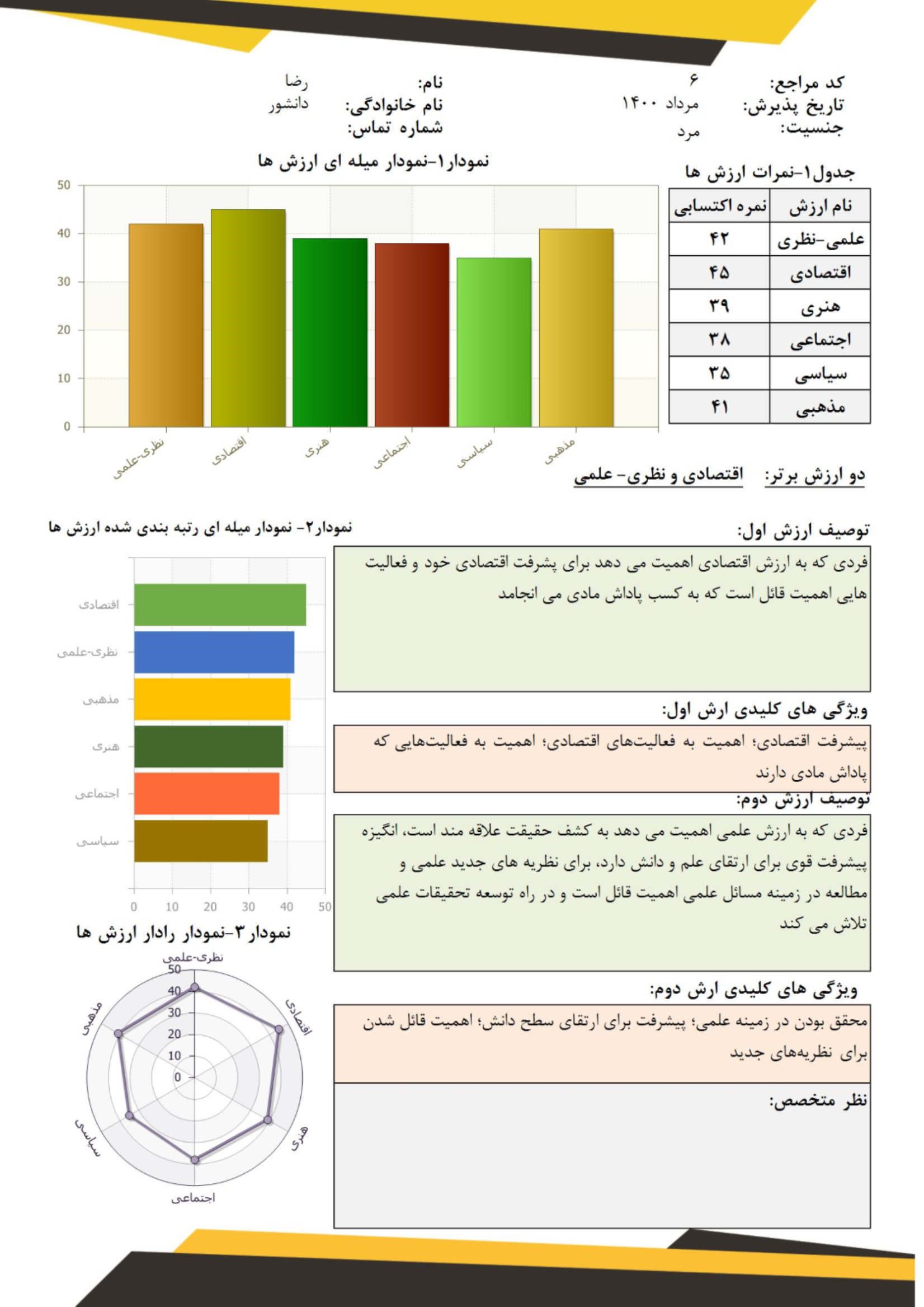 پرسشنامه ارزش های شغلی آلپورت از پرسشنامه های مهم در سنجش ارزش های شغلی افراد جهت استخدام ، انتخاب رشته و …. می باشد. انجام این آزمون به صورت مداد کاغذی بسیار سخت و زمان بر است لذا این مرکز این آزمون را به بهترین شکل به نرم افزار تبدیل کرده است