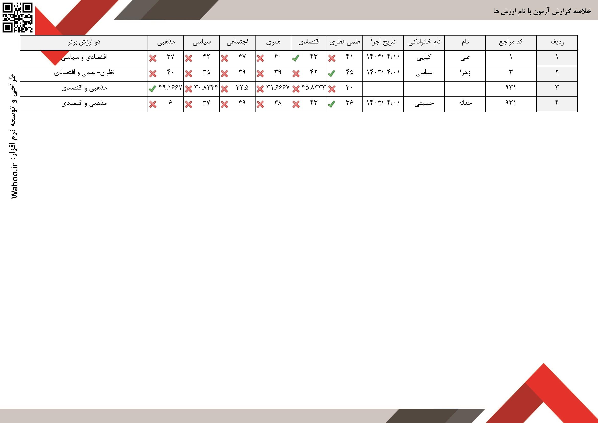 | مشاهده نتایج بر روی وب سایت توسط کاربر | امکان مشاهده نتایج با کد ملی و یا کد منحصر به فرد برای هر شخص | |||