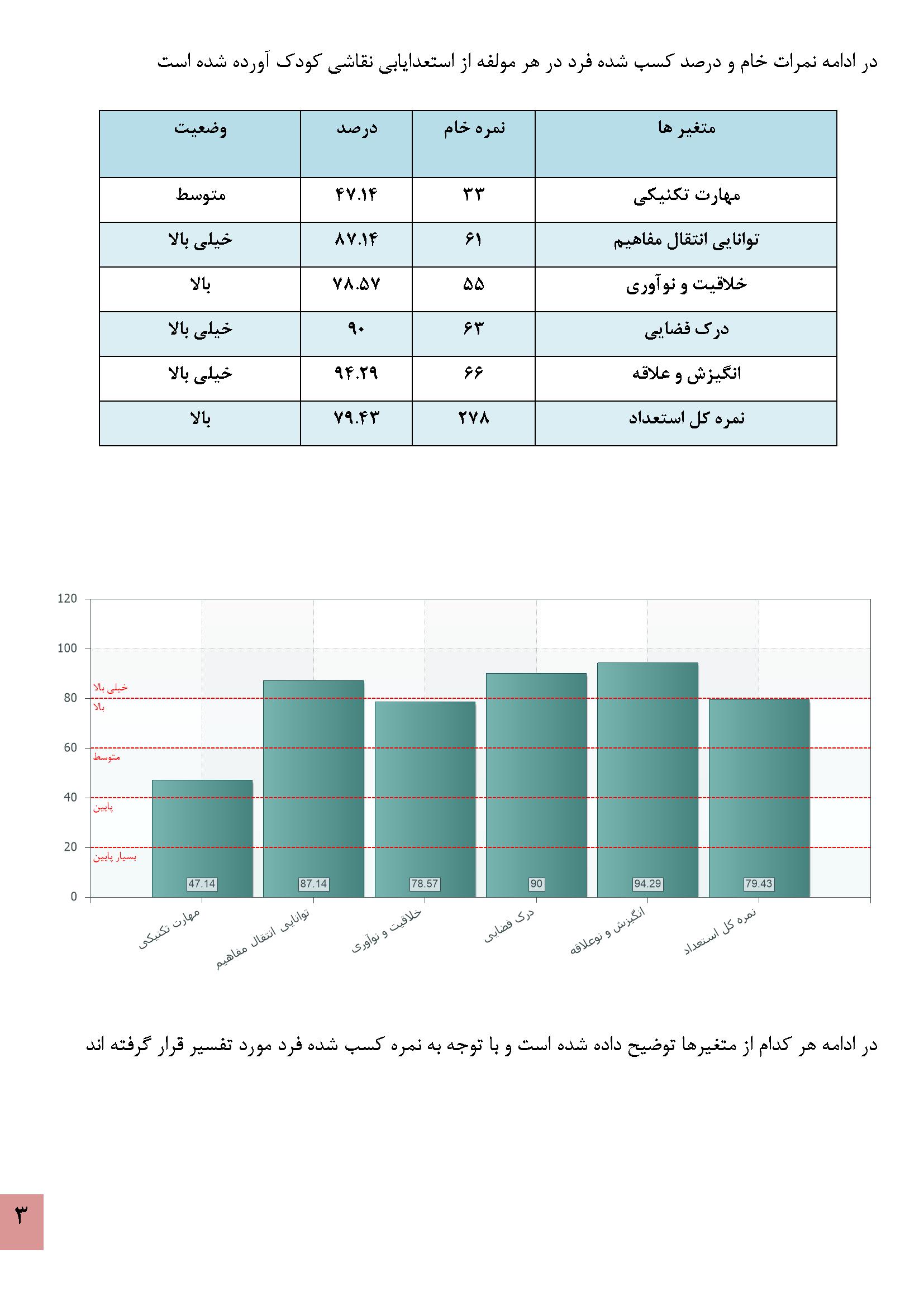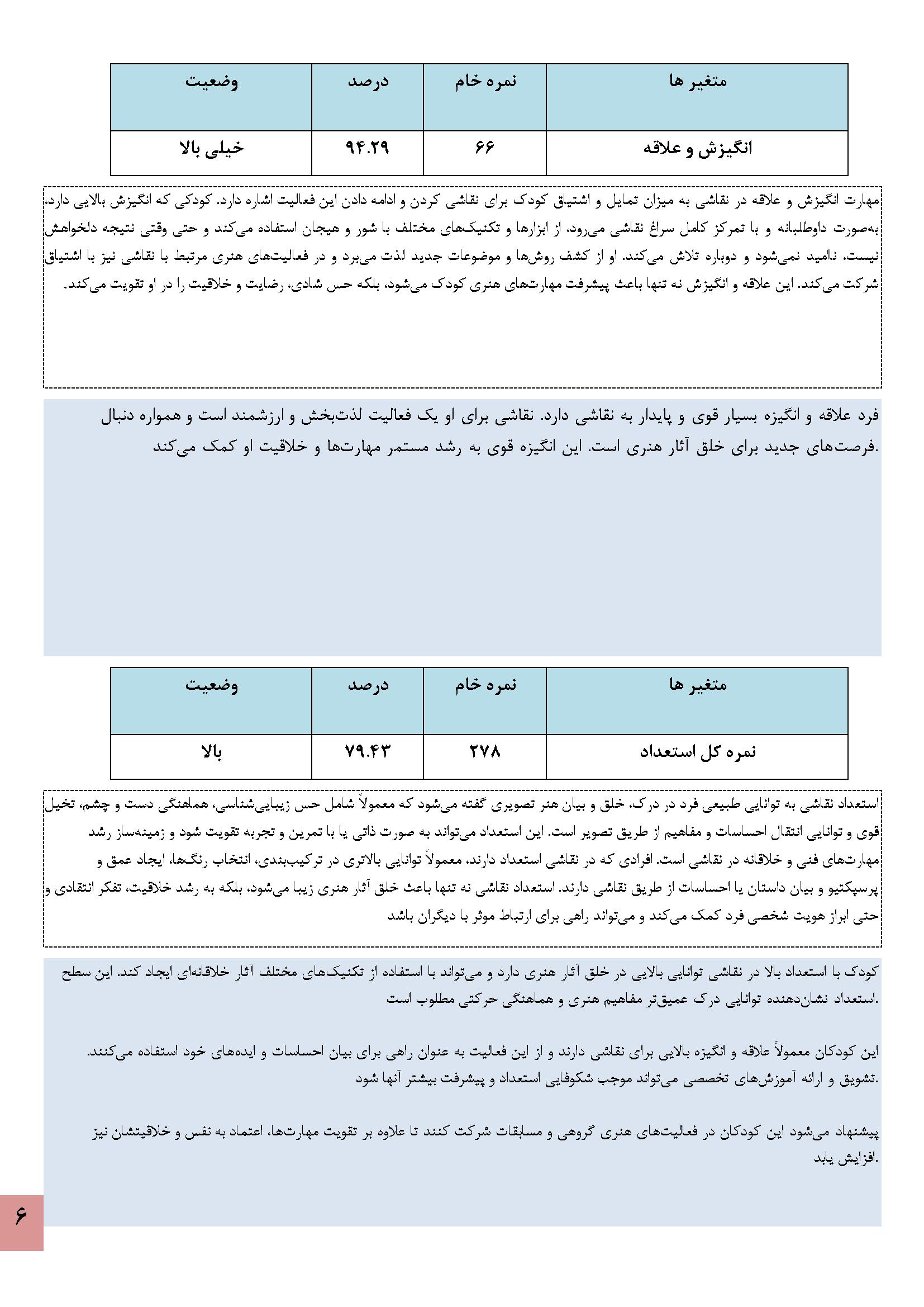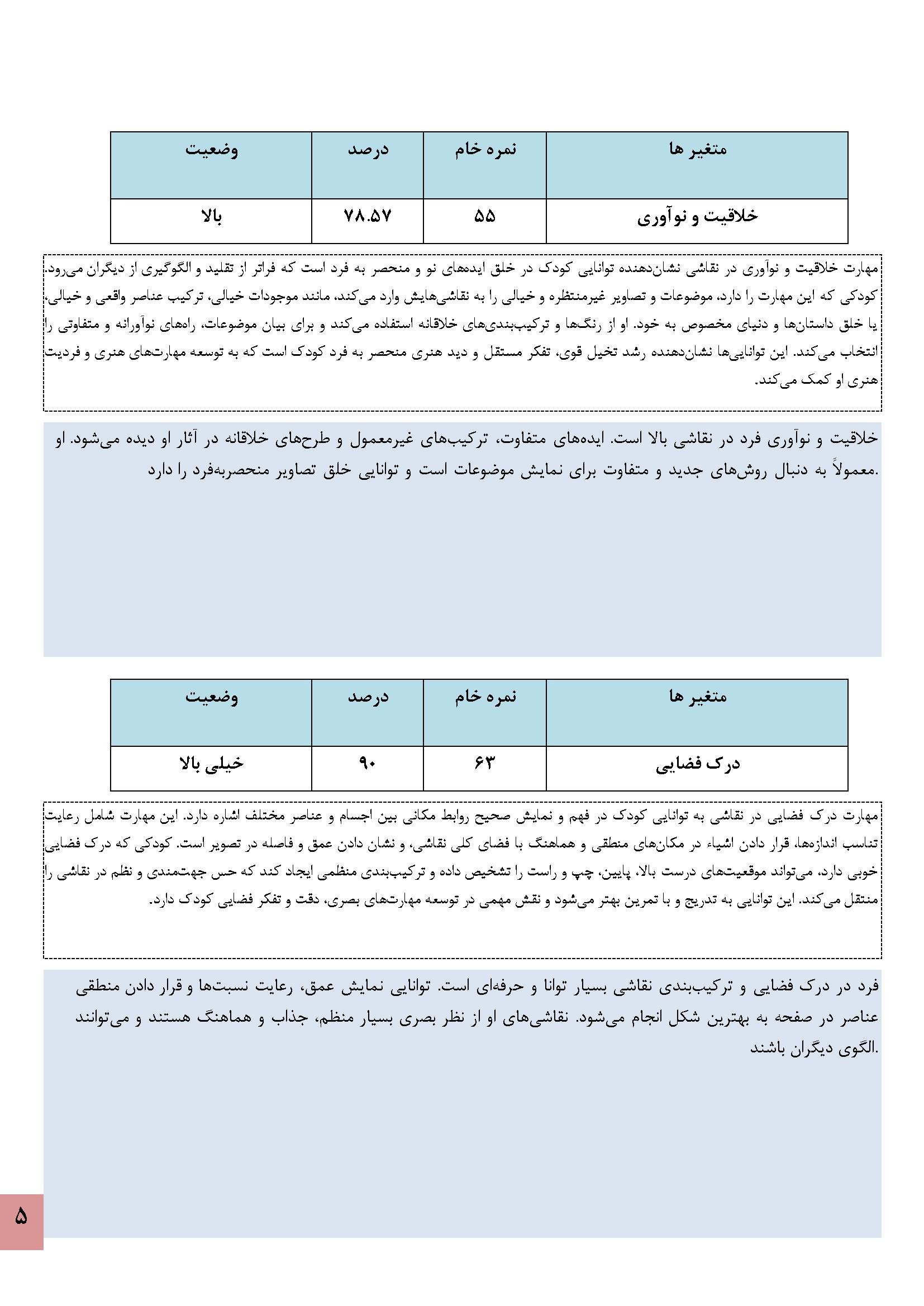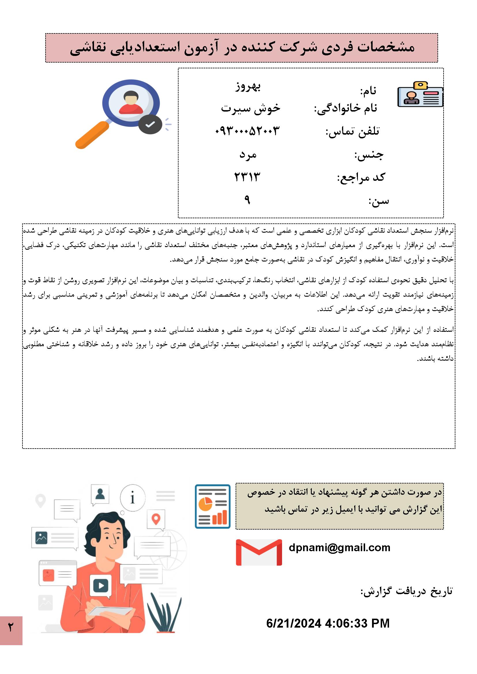 در زیر نمونه خروجی نرم افزار استعداد یابی نقاشی کودکان آورده شده است