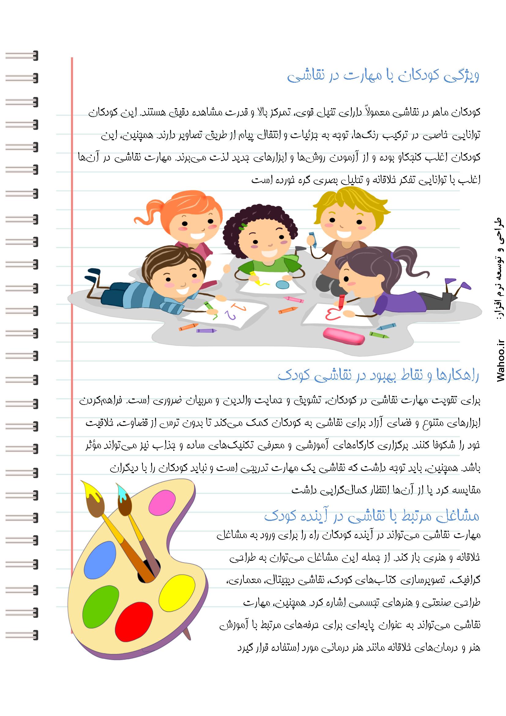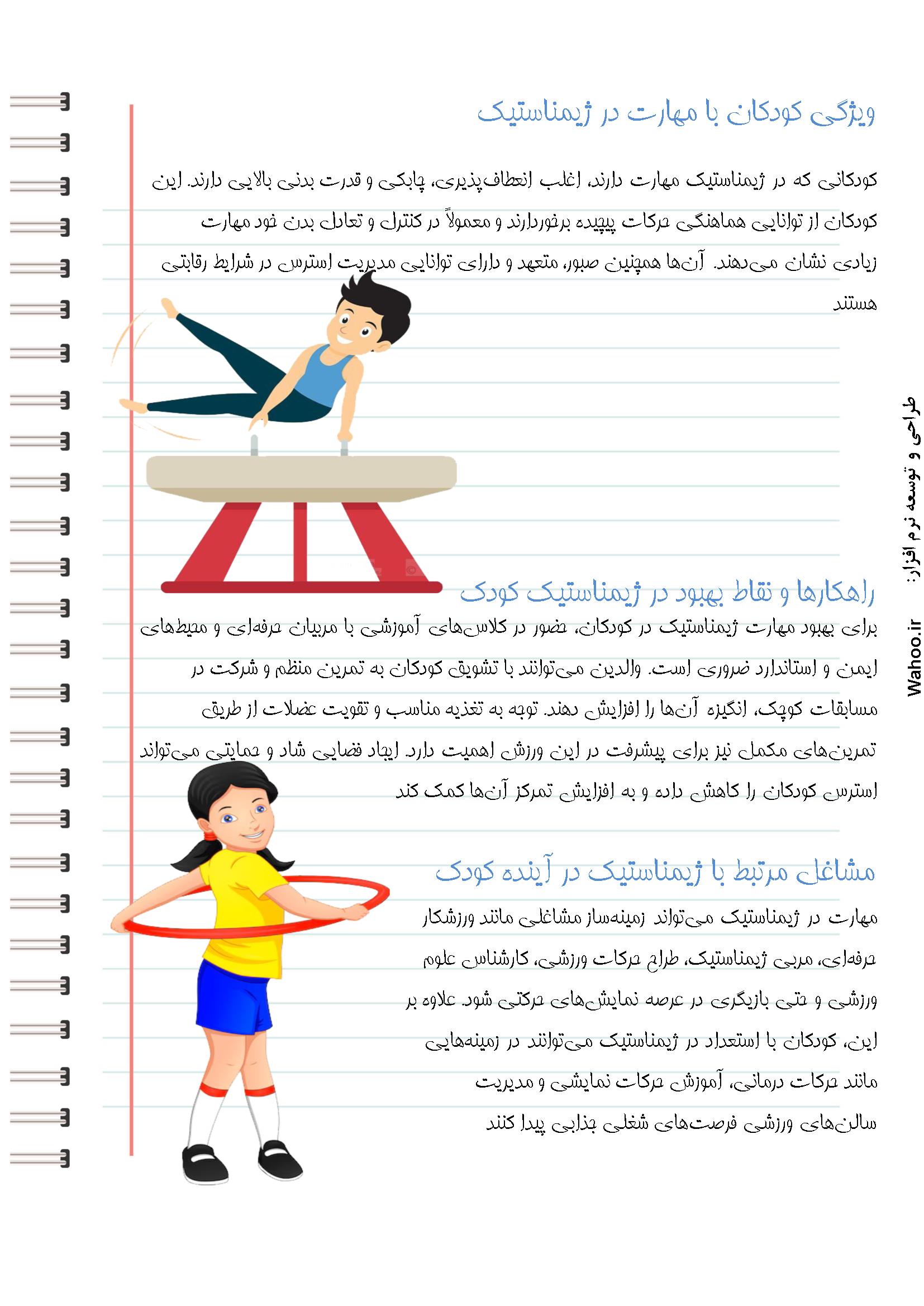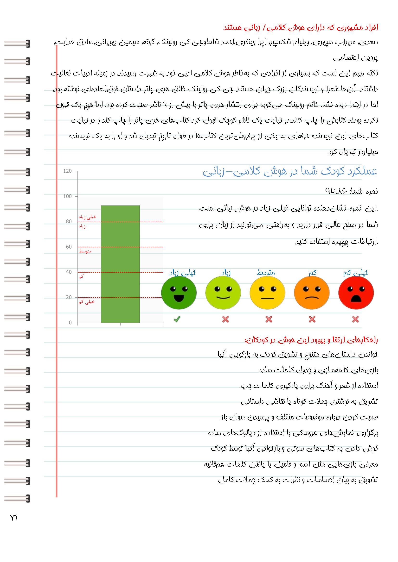 در ادامه نمونه صفحاتی از گزارش نرم افزار استعداد یابی کودکان آورده شده است. این گزارش به صورت جامع و در 84 صفحه تنظیم شده است