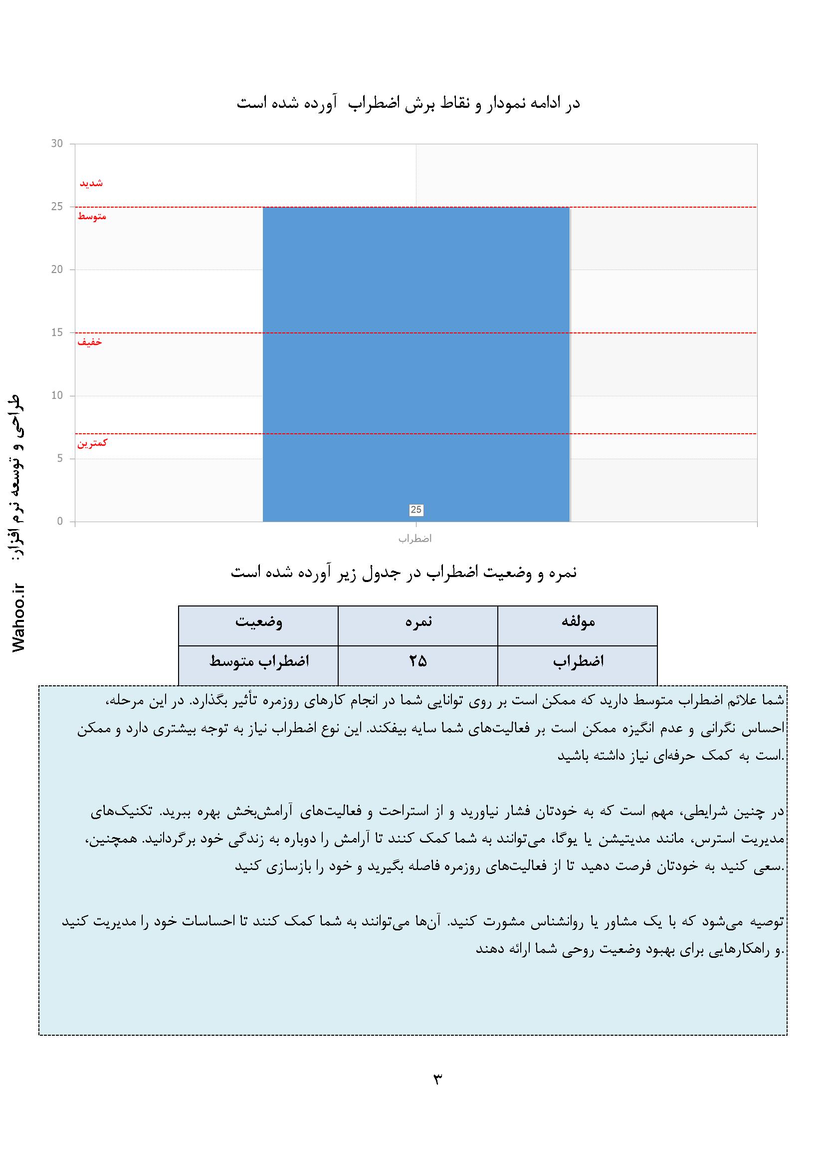 در زیر نمونه خروجی از نرم افزار افسردگی،اضطراب و استرسDASS-21 آورده شده است