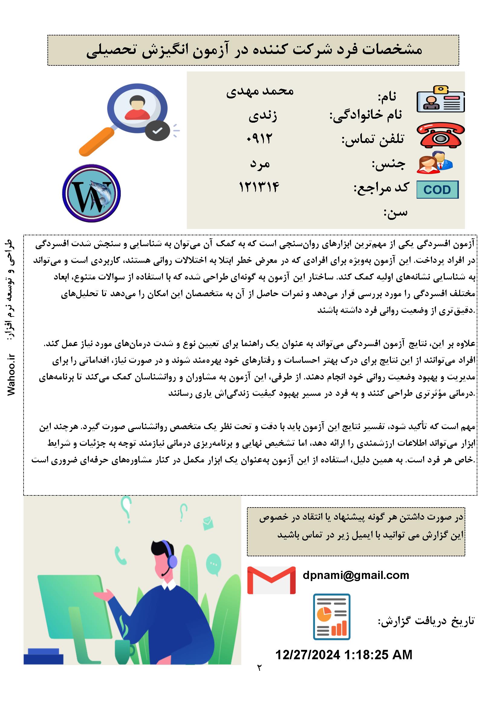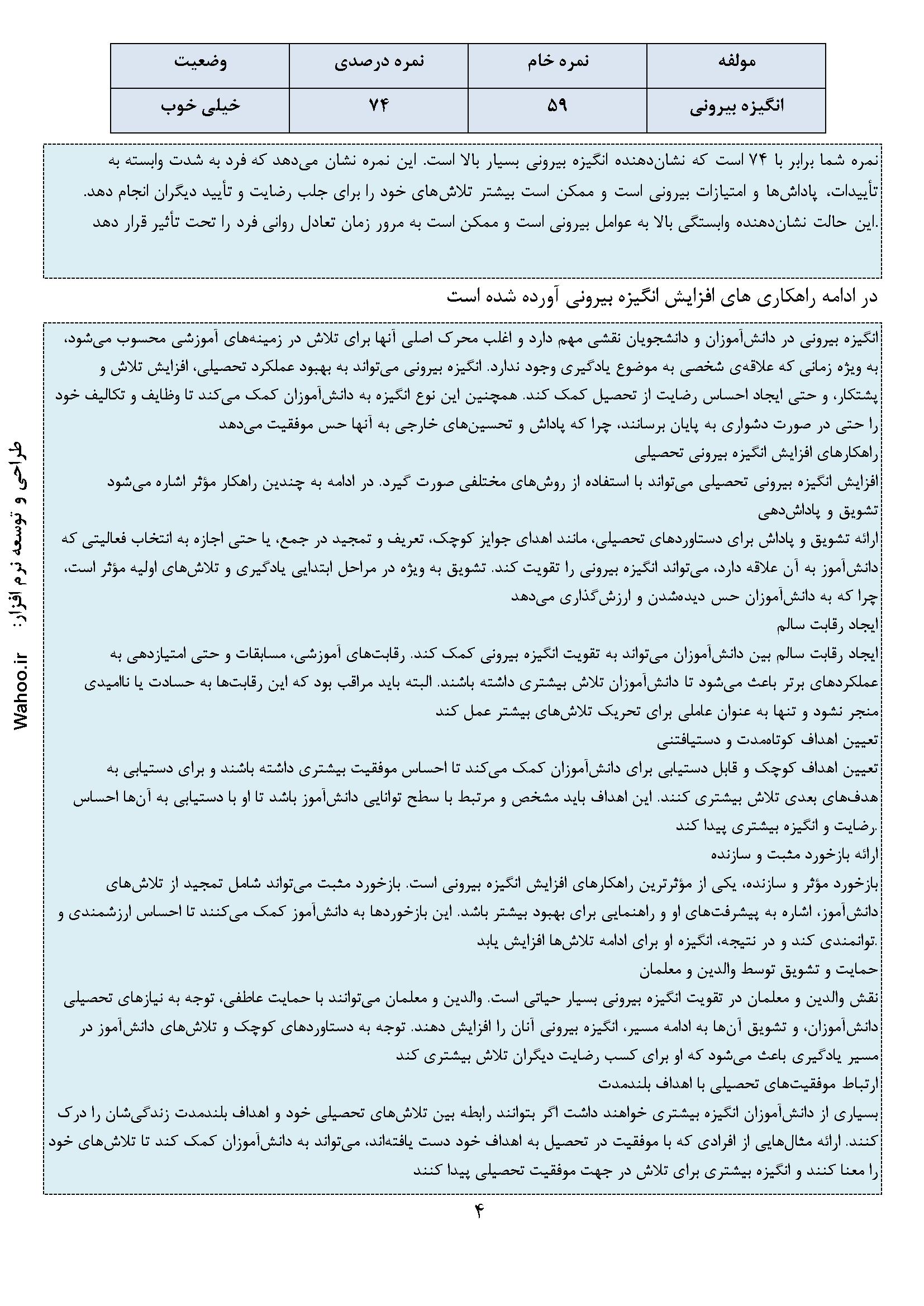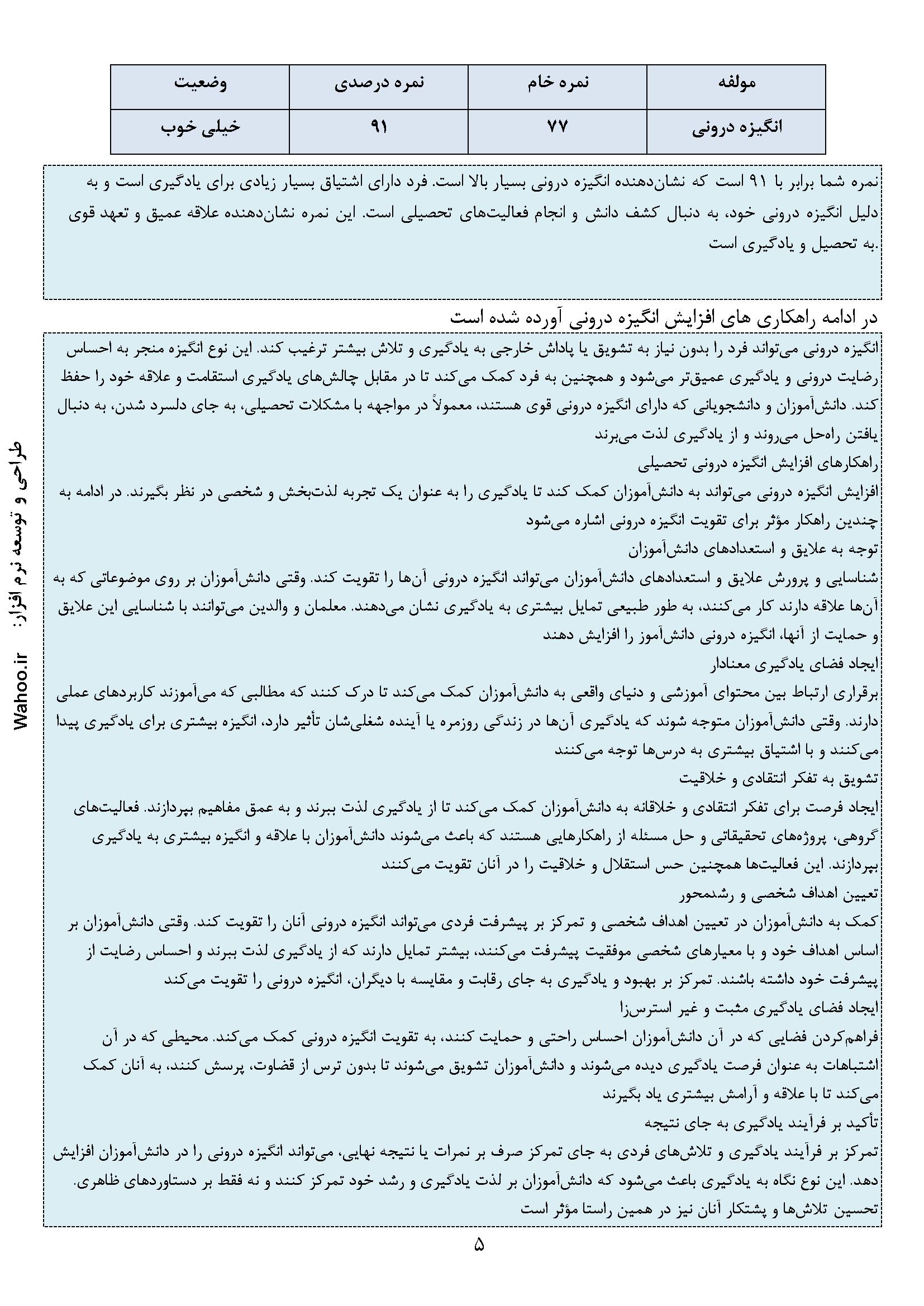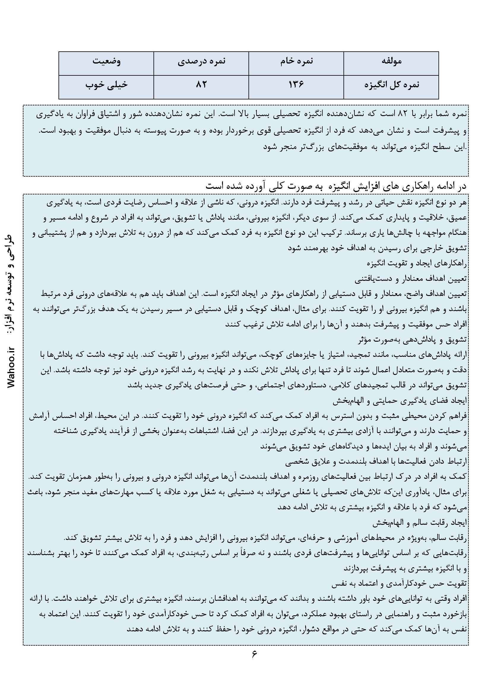 در ادامه نمونه صفحاتی از گزارش نرم افزار انگیزش تحصیلی هارتر آورده شده است.