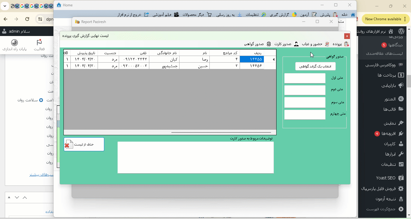 اتصال اتومات نرم افزار در بخش پذیرش به وب سایت بدون نیاز به مراجعه به وبسایت کسانی که ثبت نام کرده اند در نرم افزار وارد می شوند