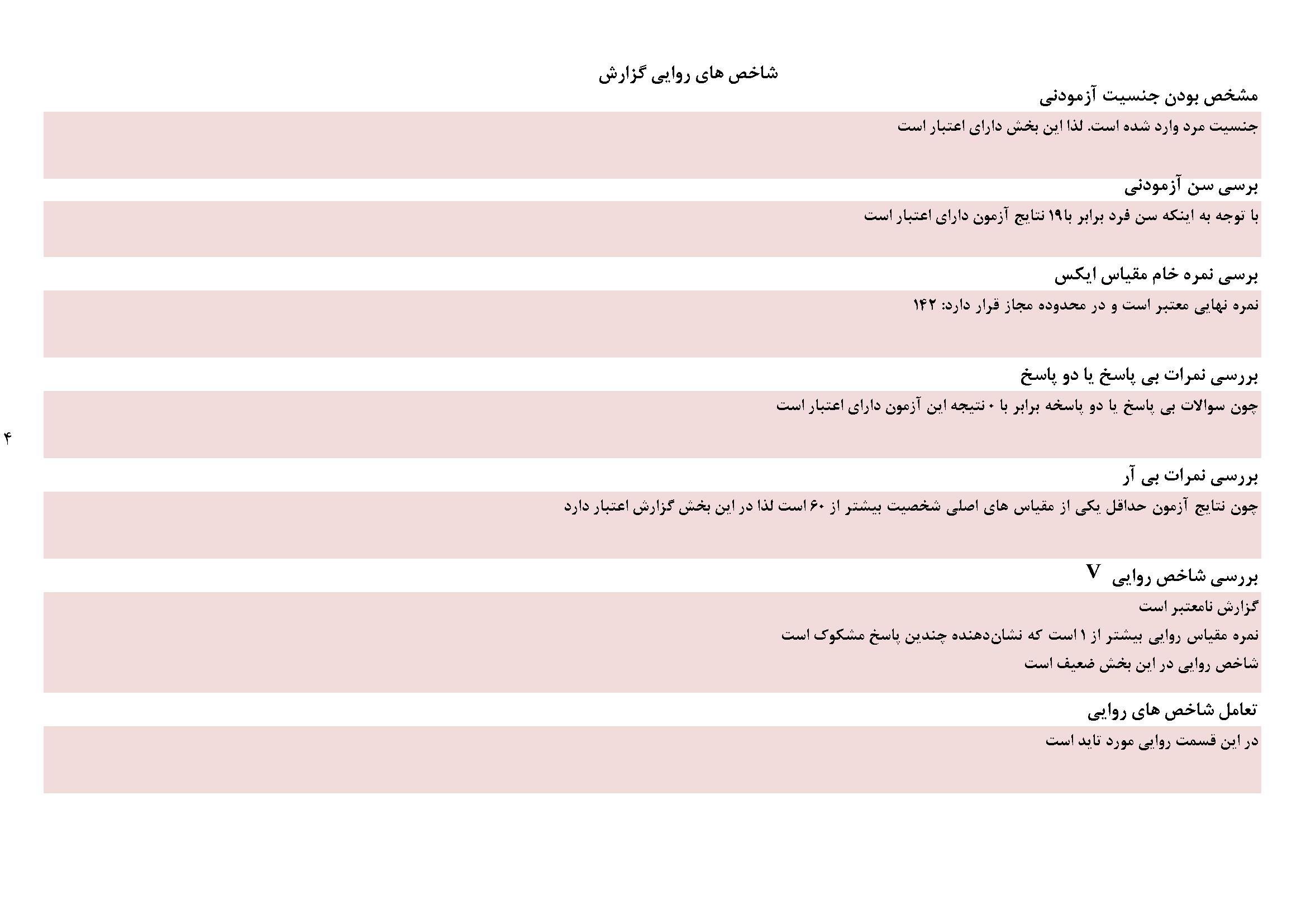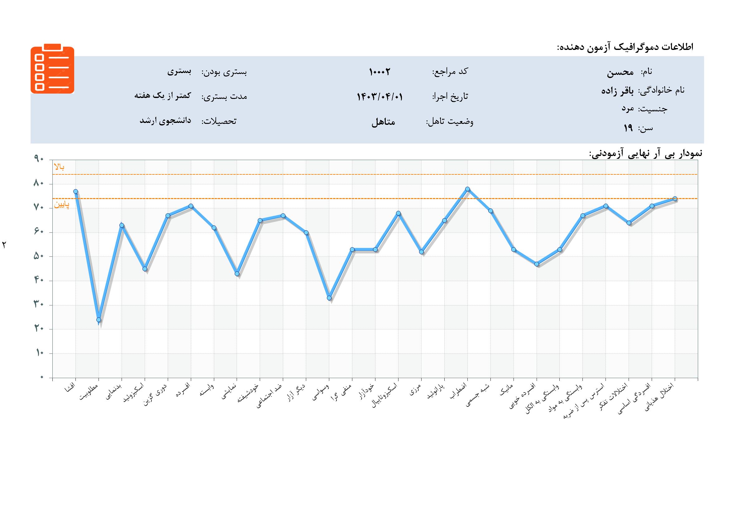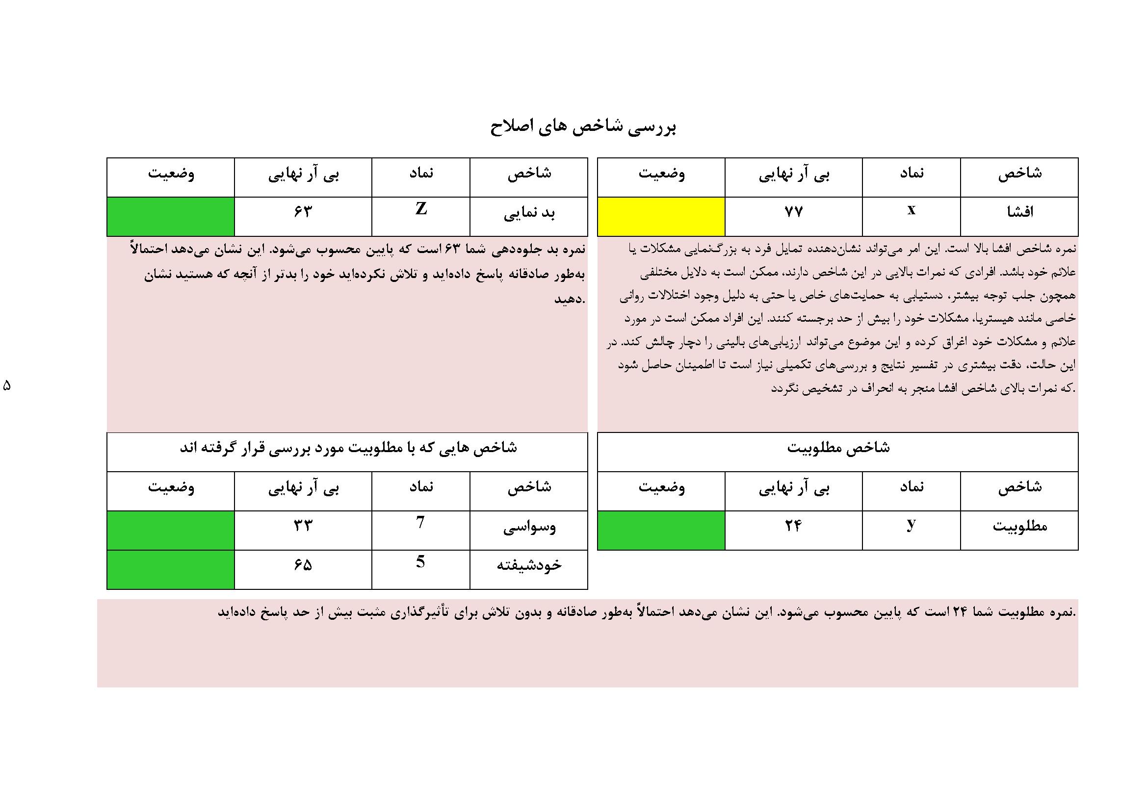 در زیر یک نمونه گزارش لیستی این آزمون ارائه شده است