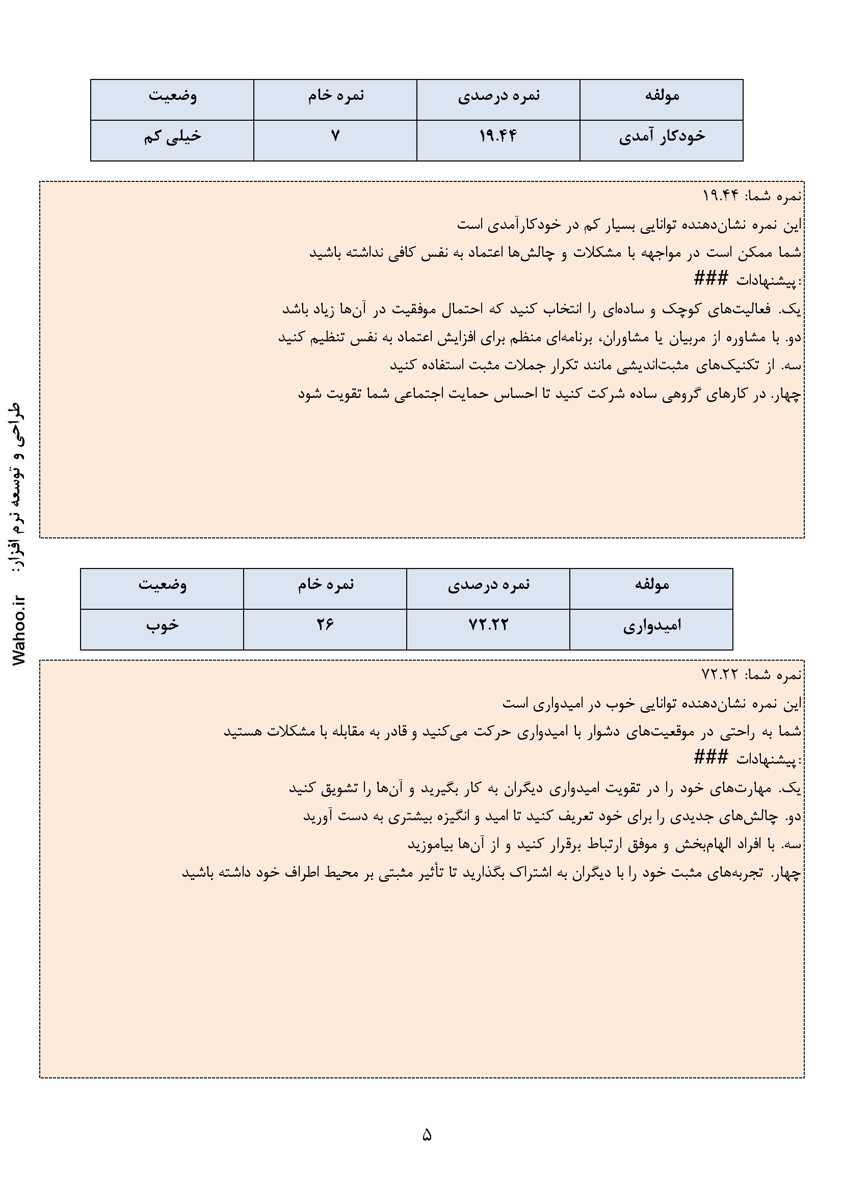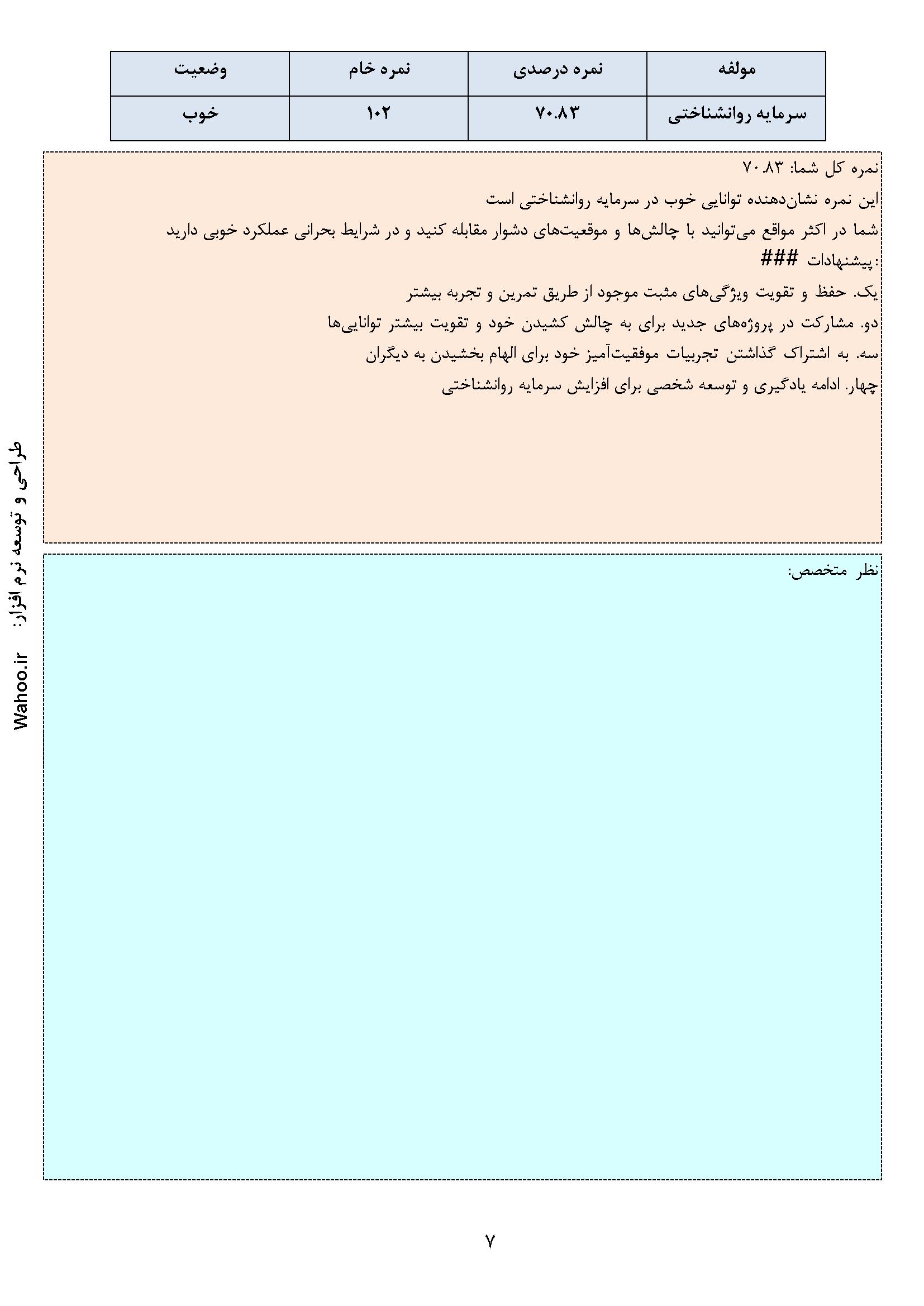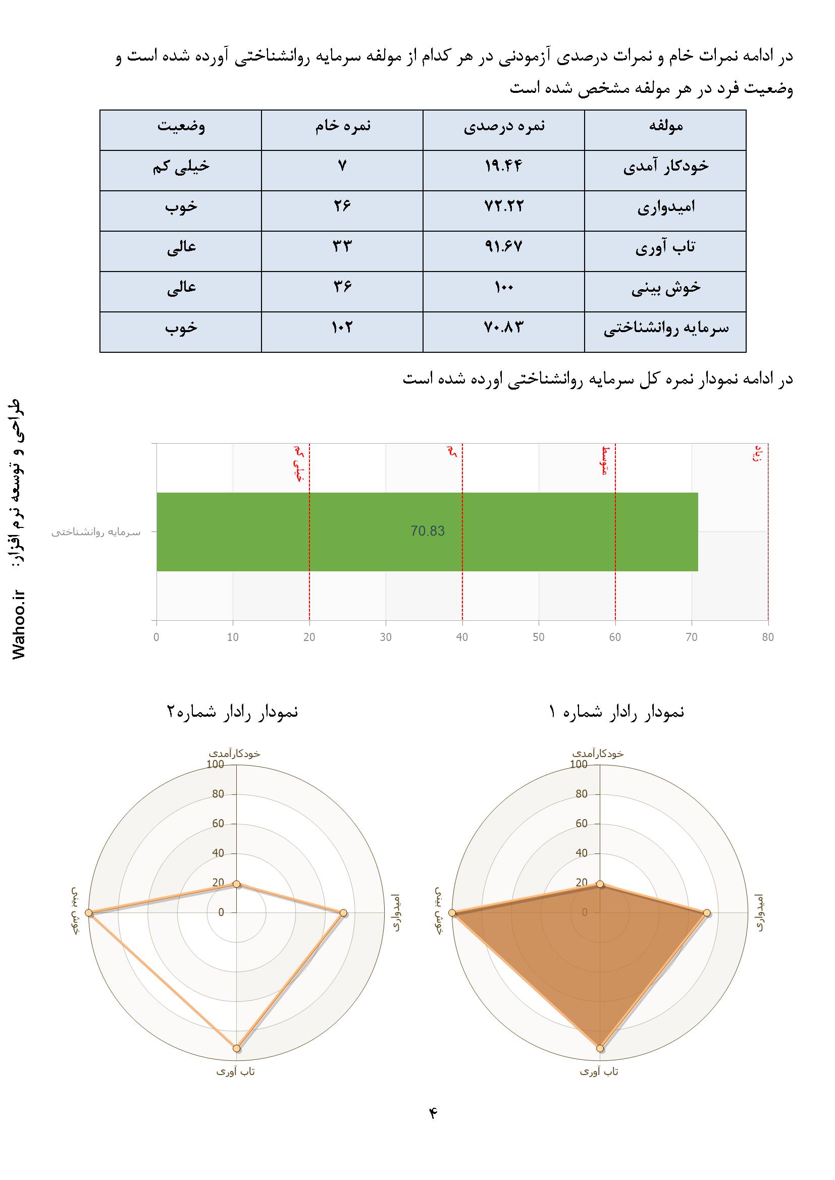 در ادامه نمونه صفحاتی از گزارش  کامل نرم افزار سرمایه روانشناختی آورده شده است.