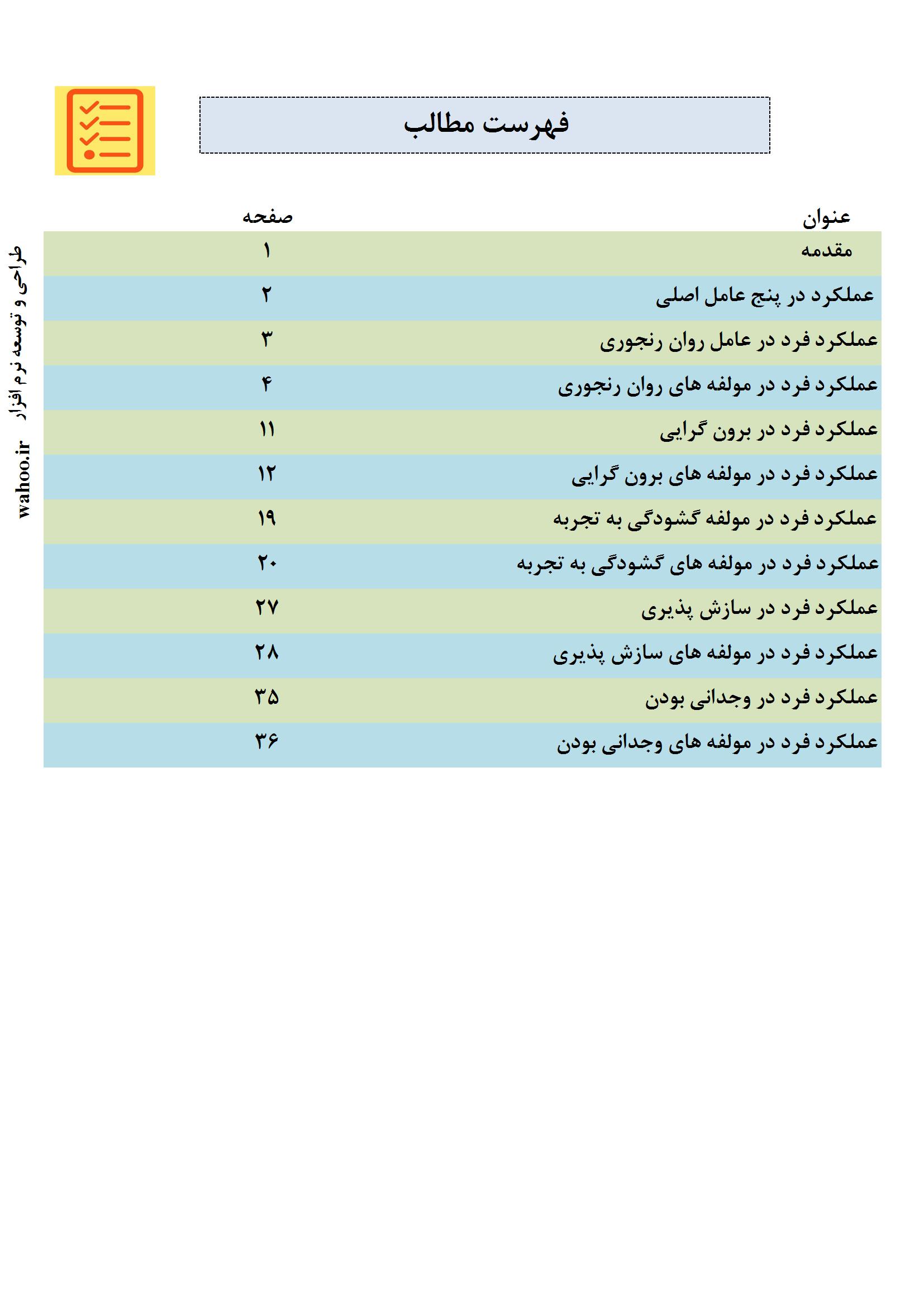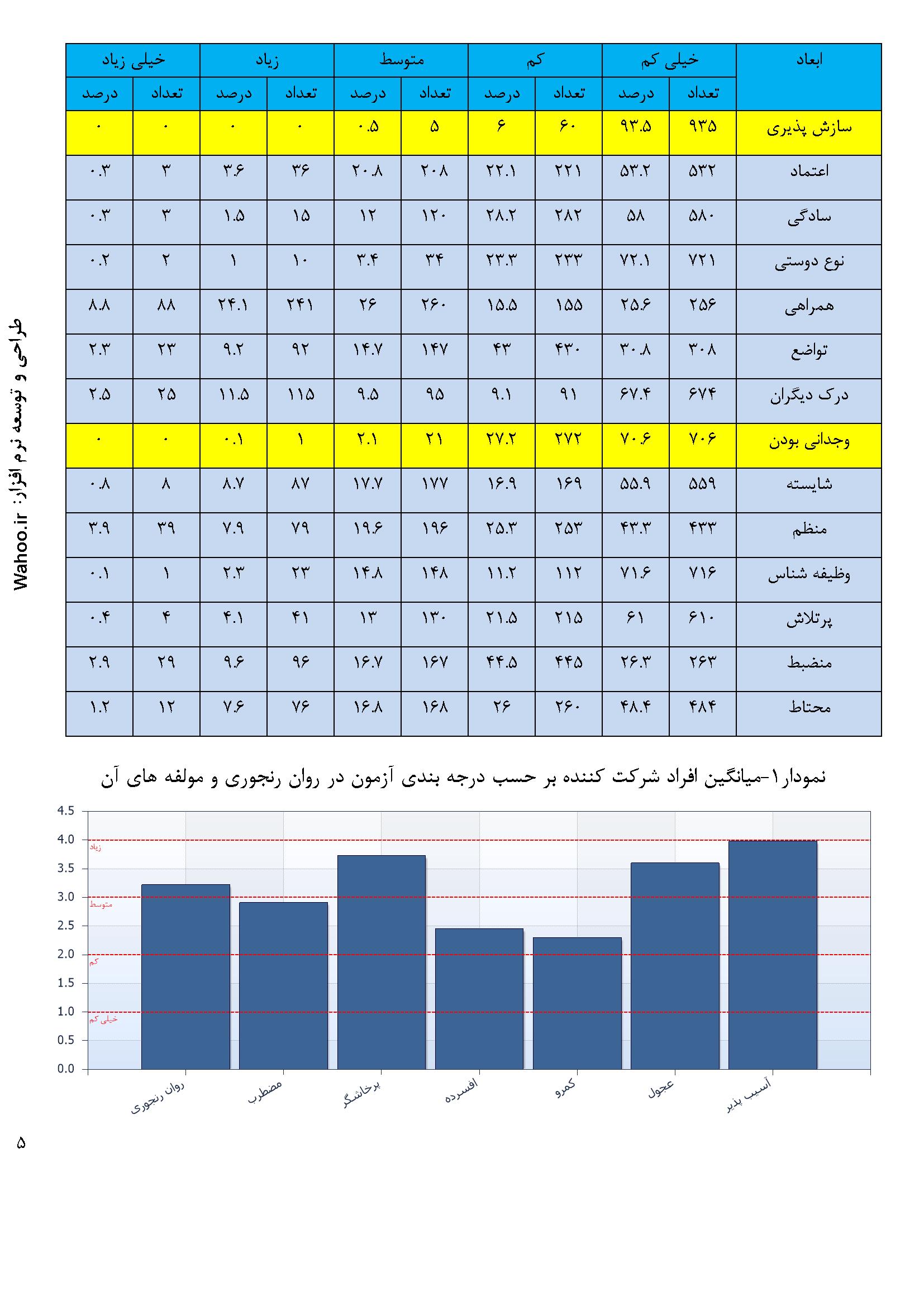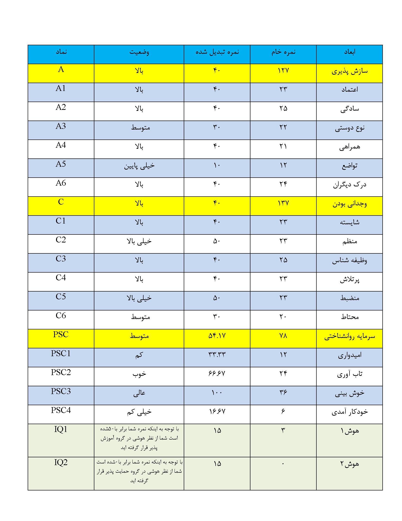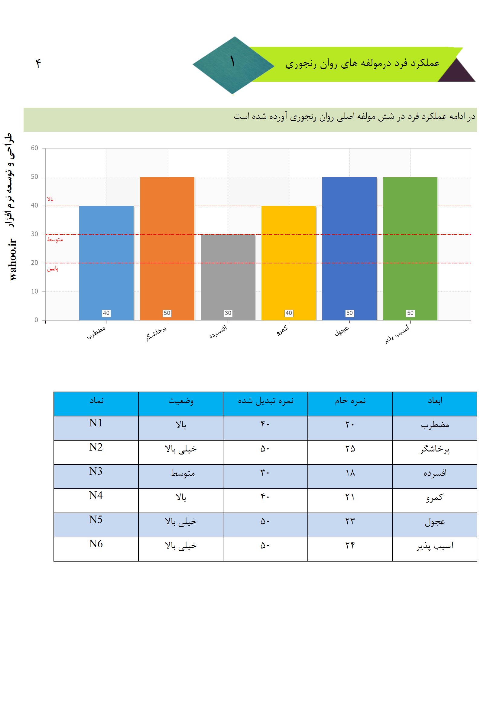 در ادامه نمونه صفحاتی از گزارش  کامل نرم افزار سرمایه روانشناختی آورده شده است.
