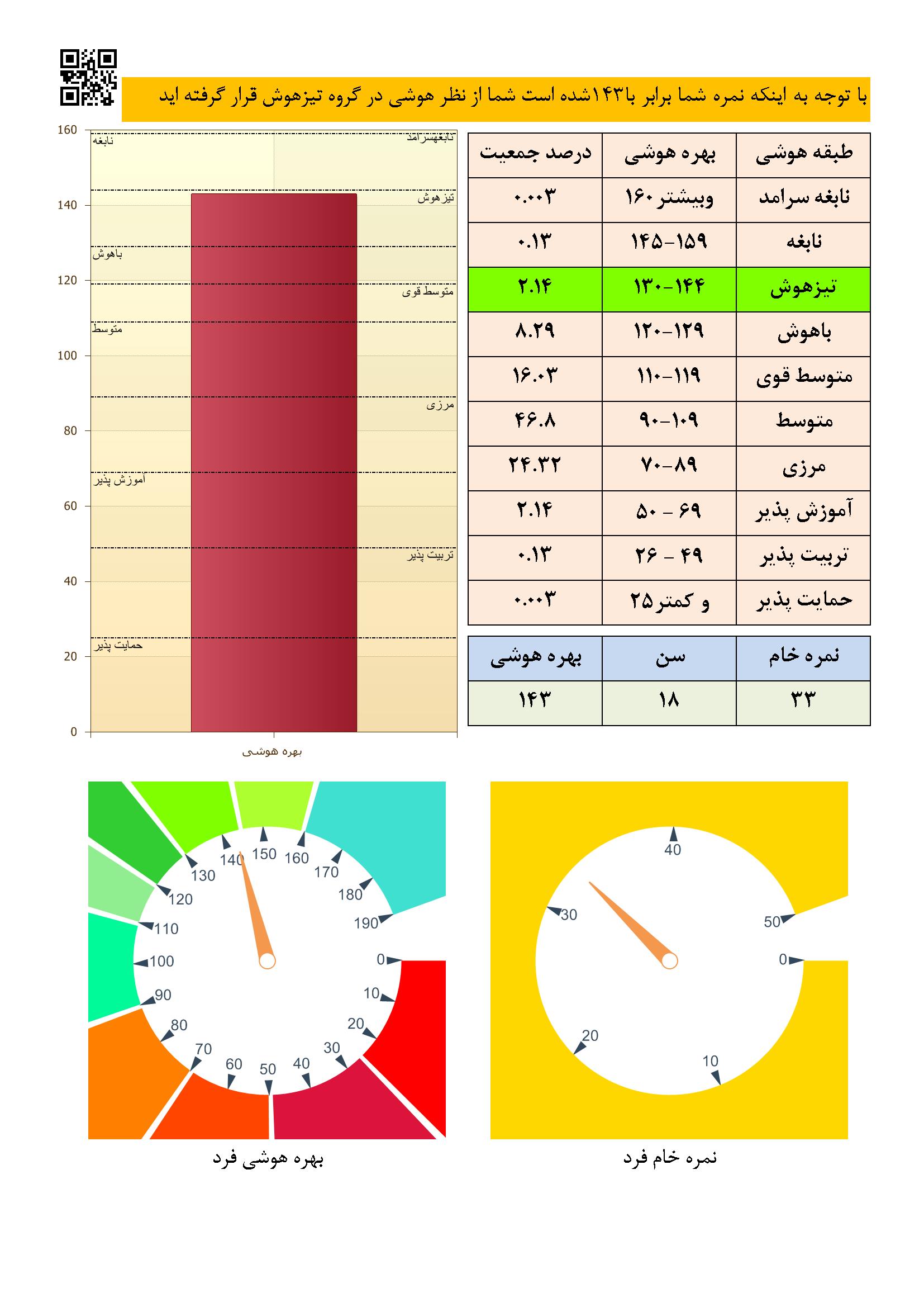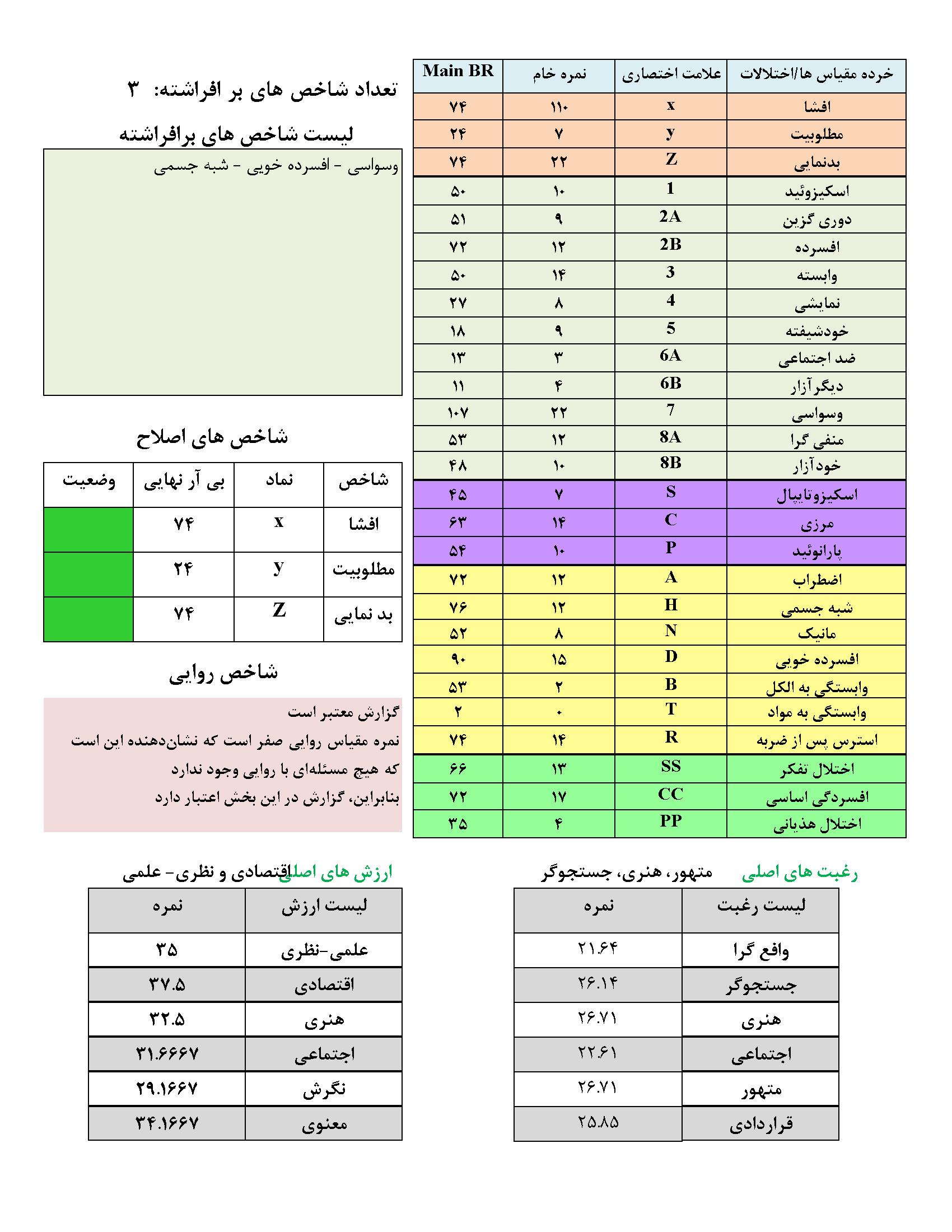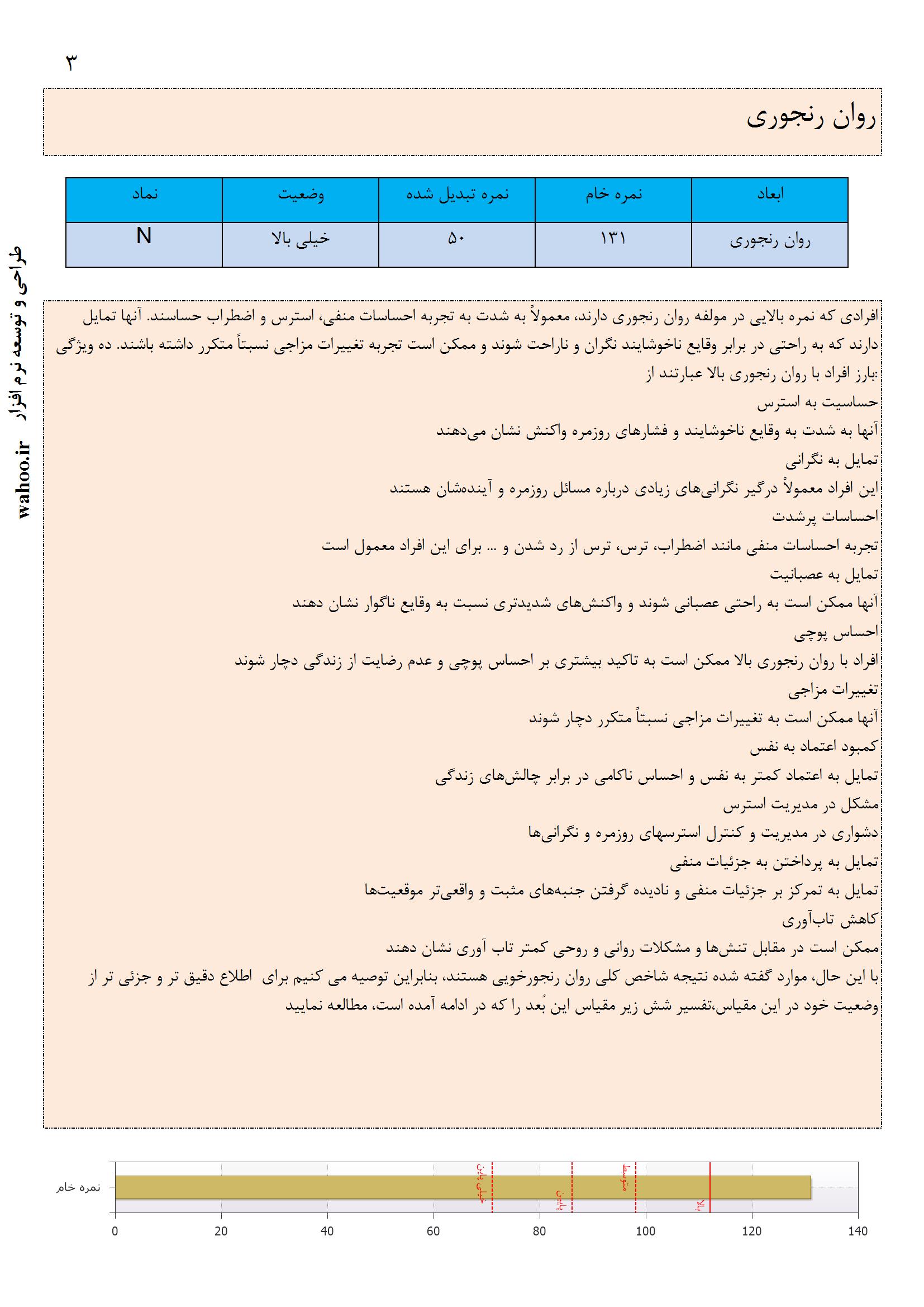 در زیر هم یک نمونه گزارش لیستی از این آزمون ارائه شده است