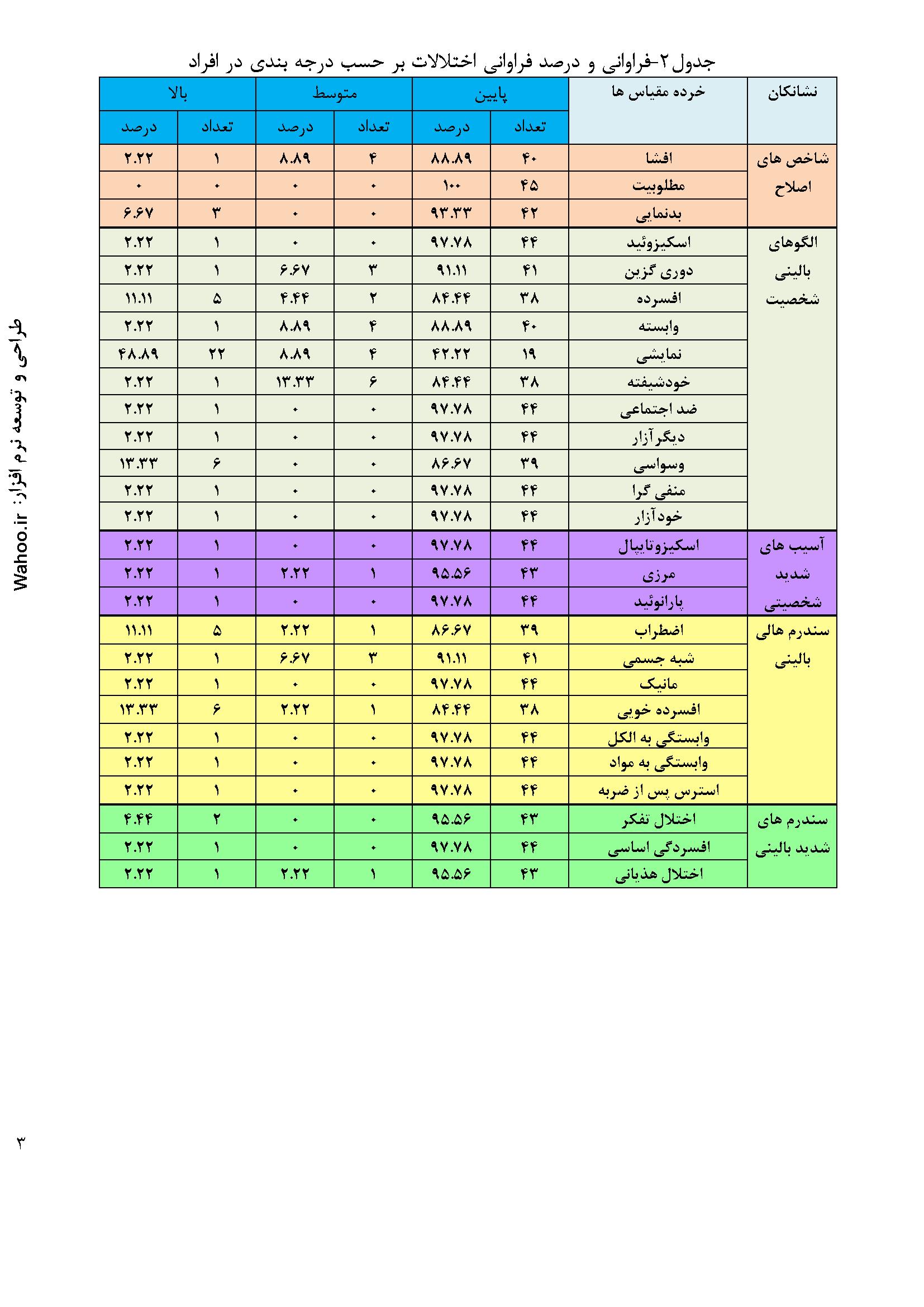 3-شما می توانید گزارش تحلیلی از نرم افزار برای هر آزمون دریافت کنید. در این گزارش شاخص های توصیفی و طبقه بندی فراوانی و درصد فراوانی در طبفه های مختلف متغیرها آورده شده است