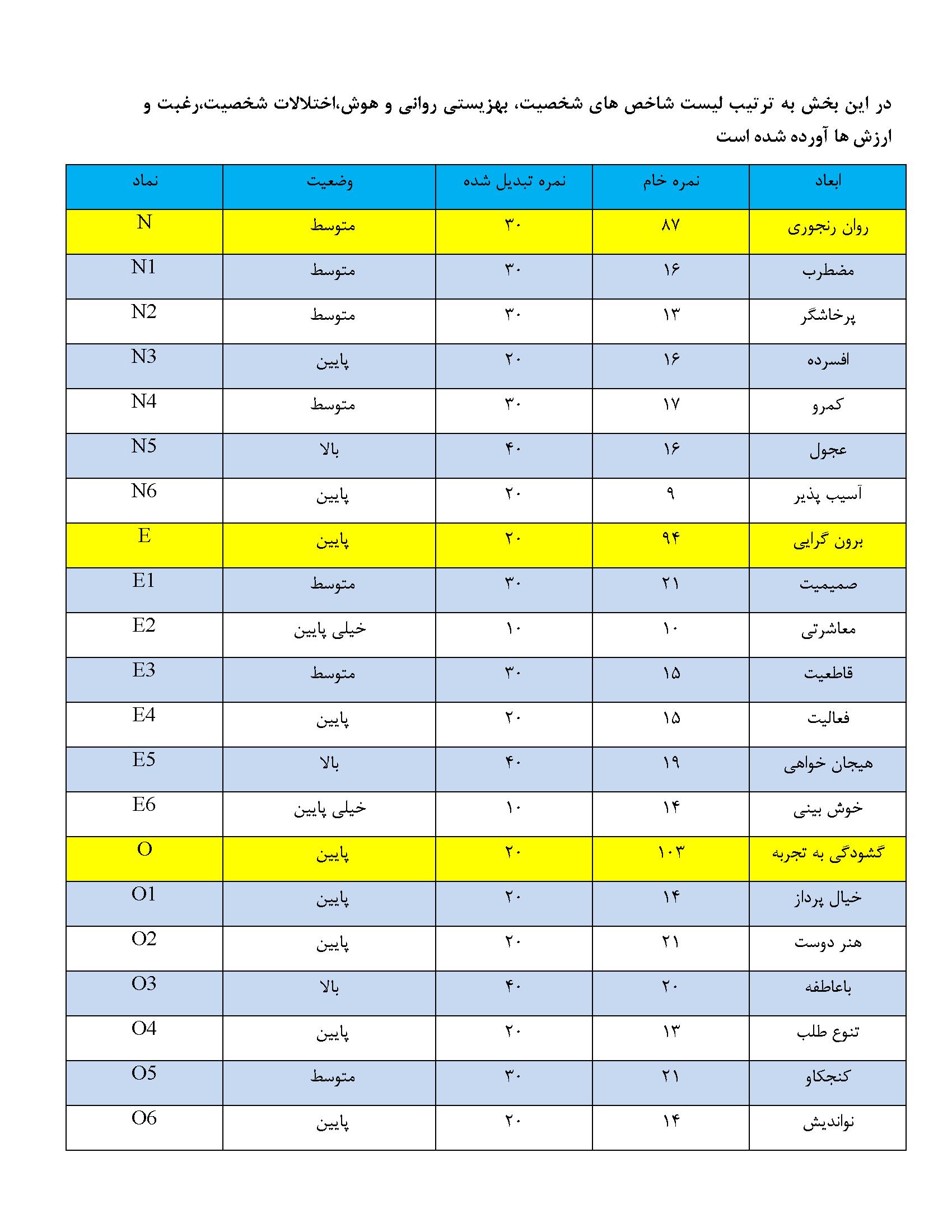 یکی از دقیق‌ترین ابزارهای سنجش پنج عامل اصلی شخصیت (روان‌رنجوری، برون‌گرایی، گشودگی به تجربه، توافق‌پذیری و وظیفه‌شناسی).