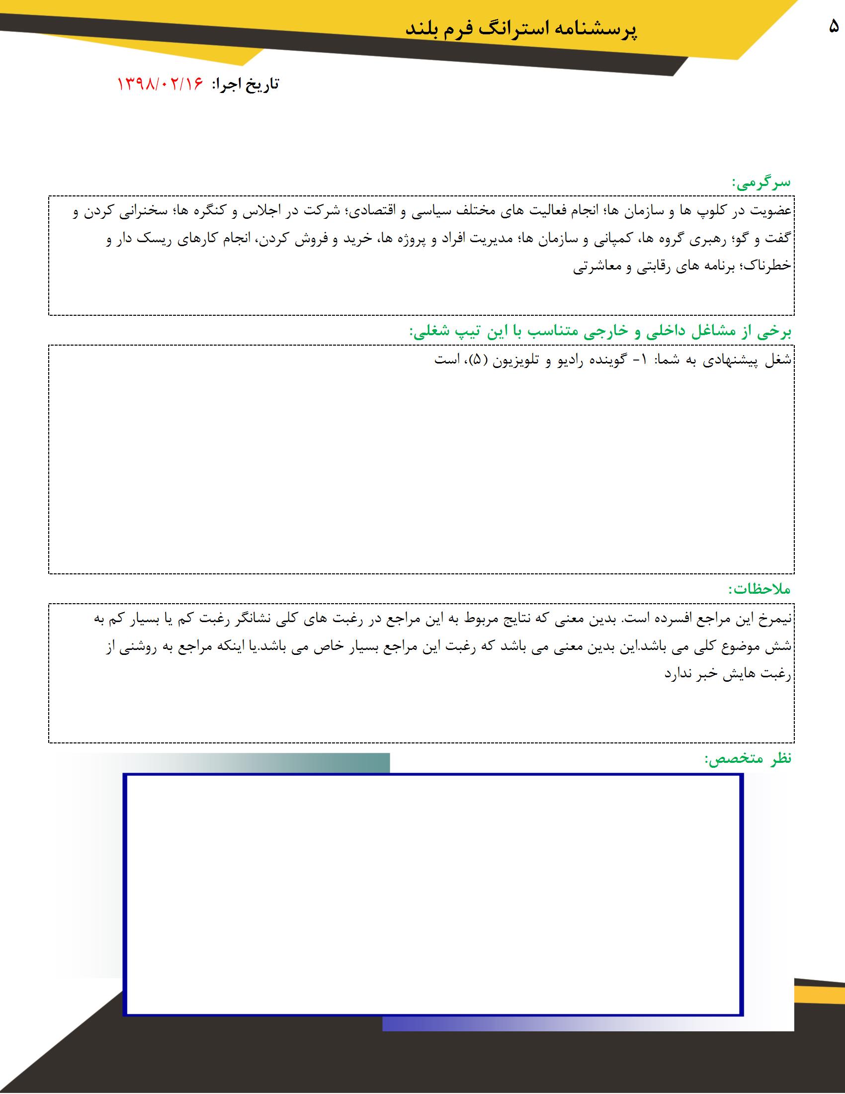 نرم افزار رغبت سنج استرانگ(فرم بلند)