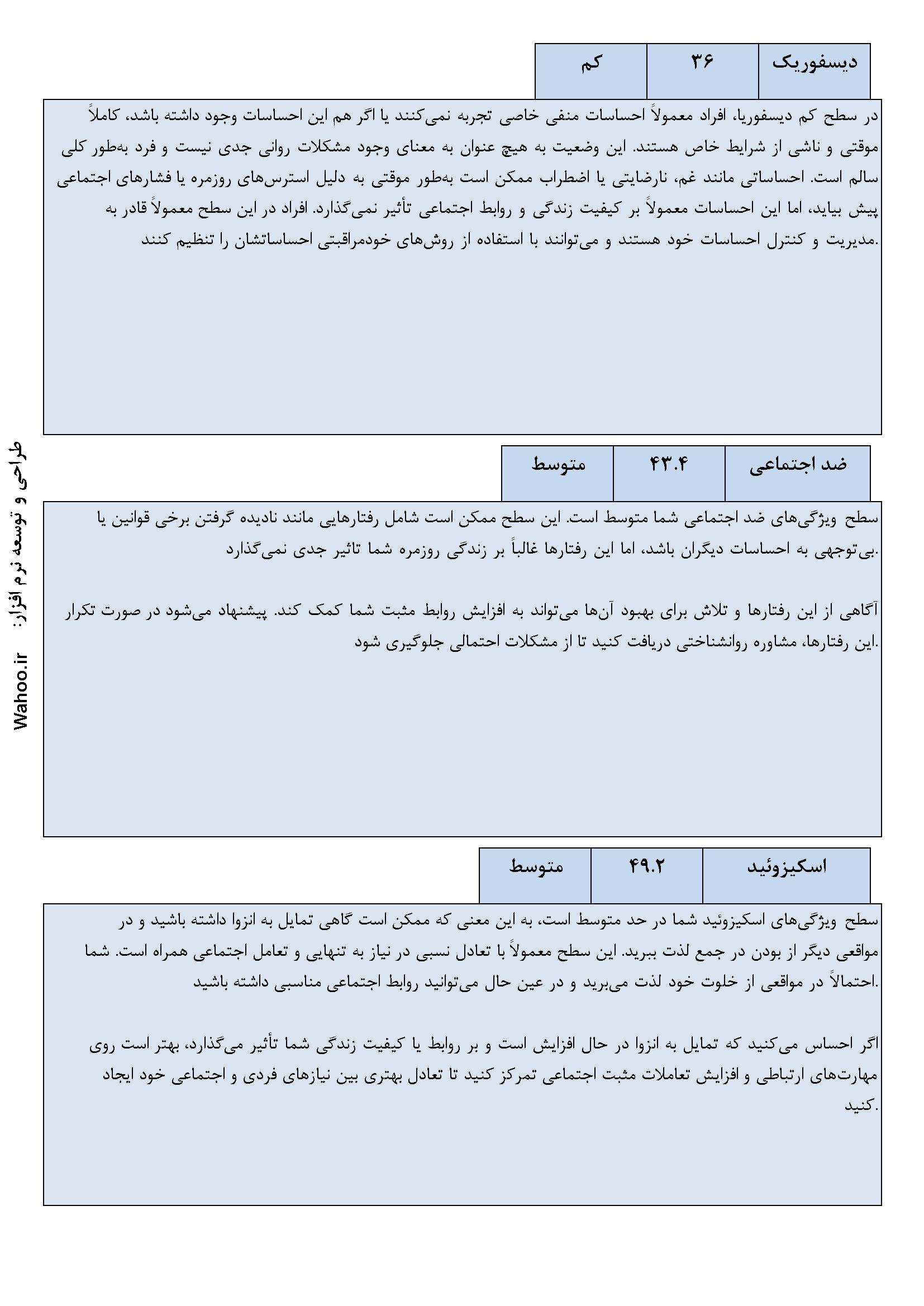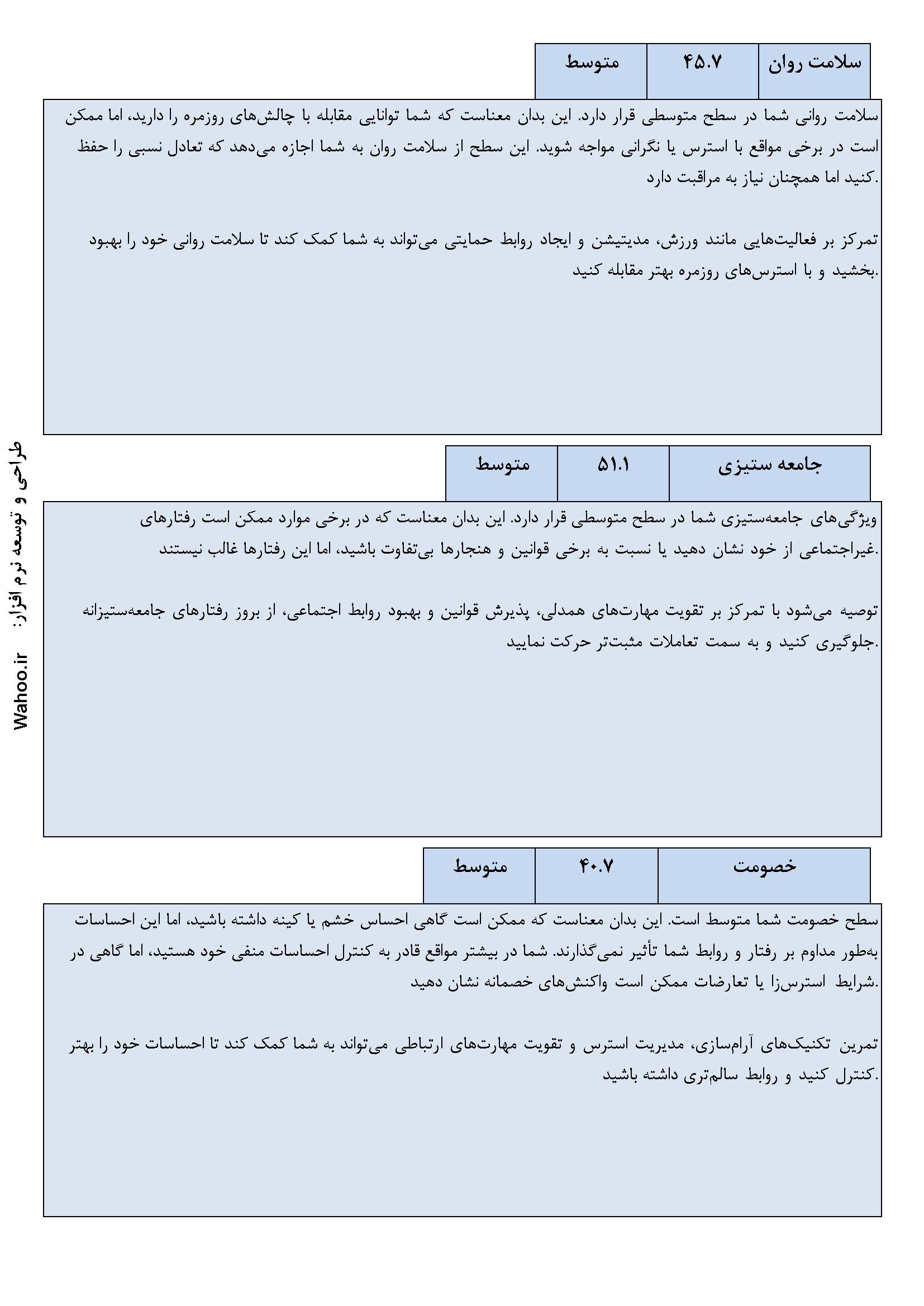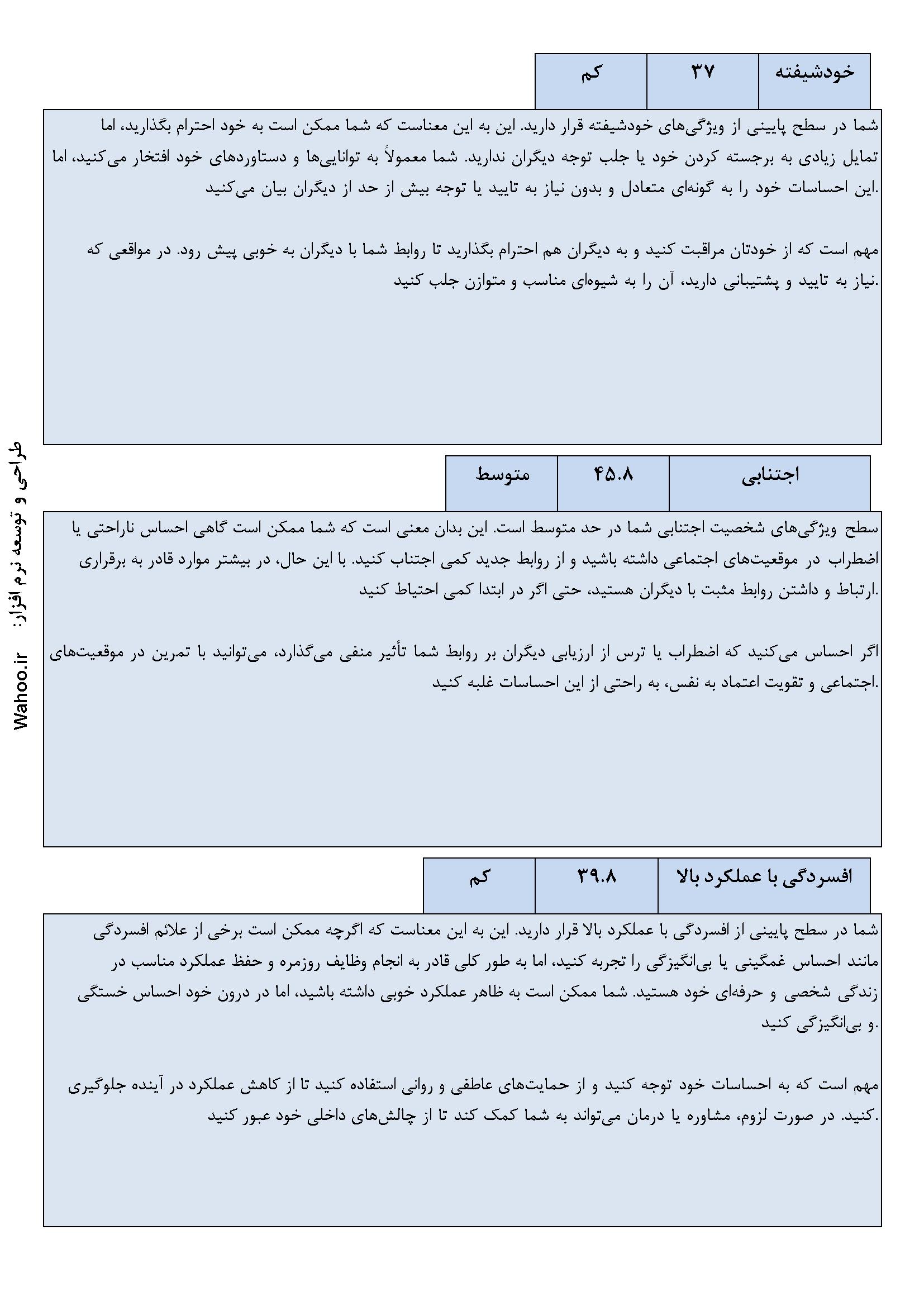 🔹 تحلیل جامع و کاربردی: نتایج دقیق و تحلیل‌های کاربردی برای بهبود وضعیت روانی و شناخت بهتر شخصیت.