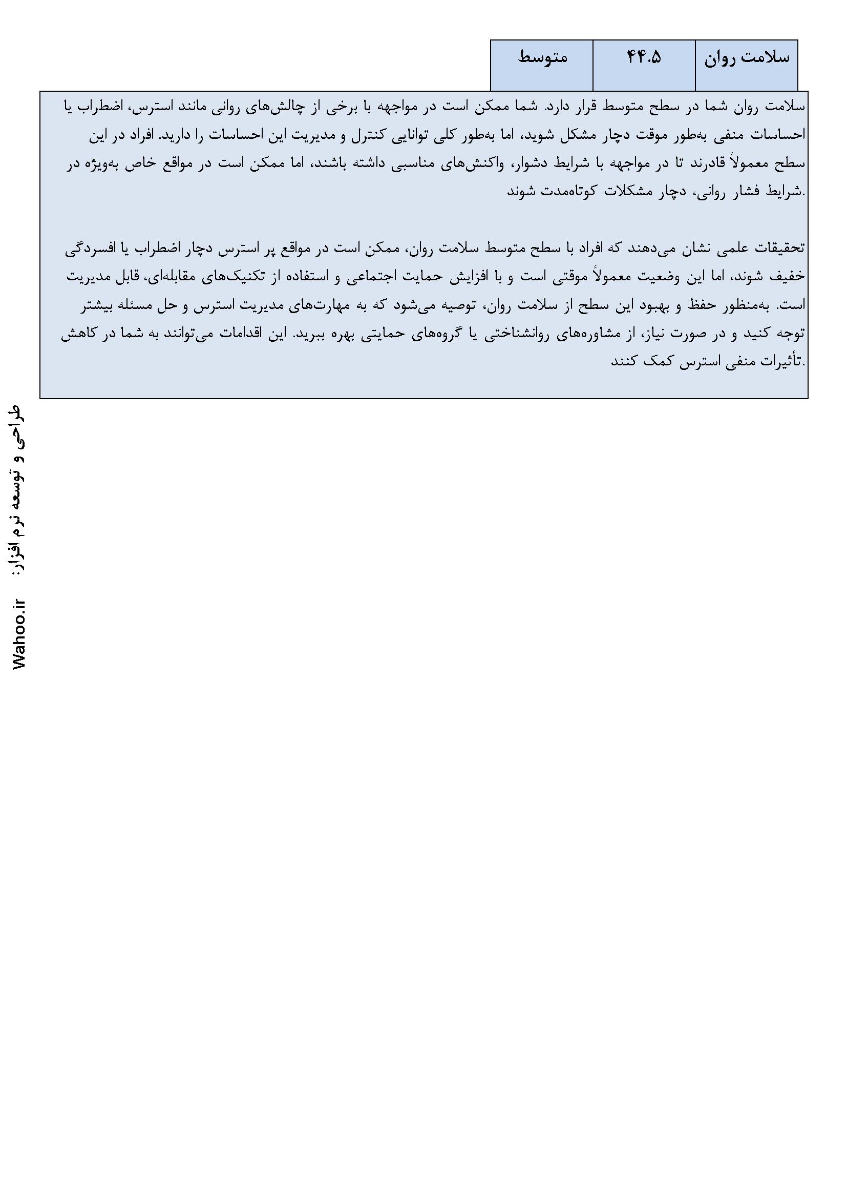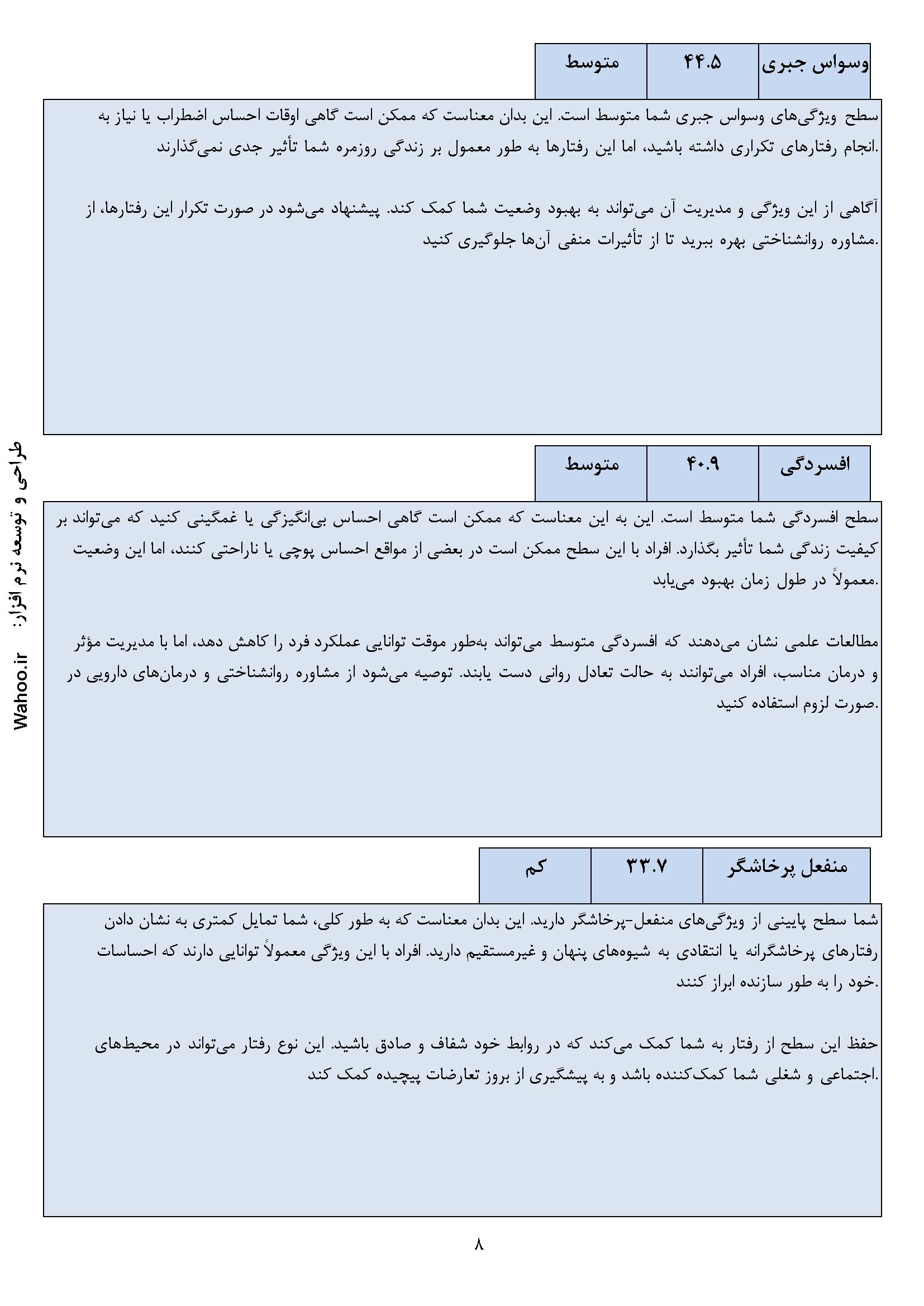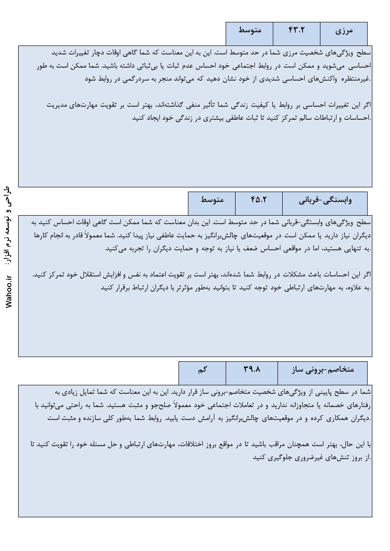 🔹 تحلیل جامع و کاربردی: نتایج دقیق و تحلیل‌های کاربردی برای بهبود وضعیت روانی و شناخت بهتر شخصیت.