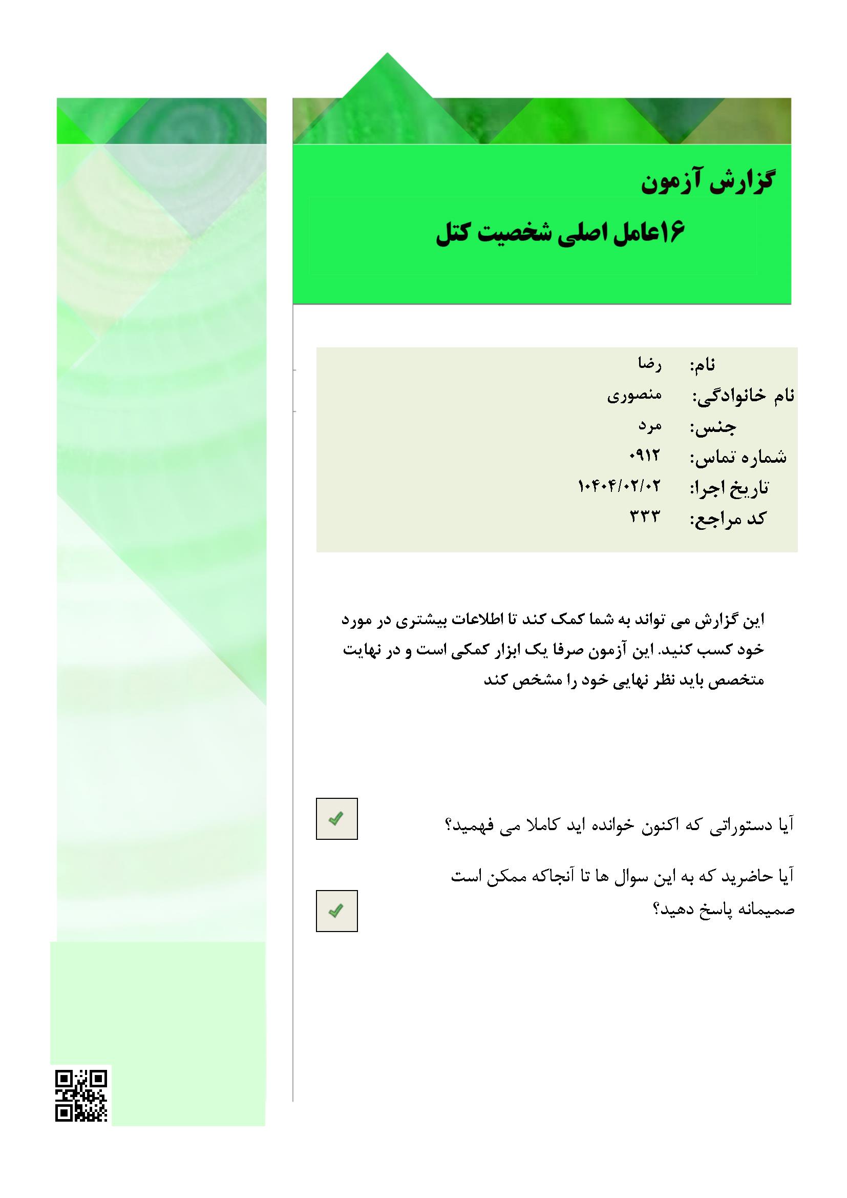 نرم افزار شخصیت 16 عاملی کتل