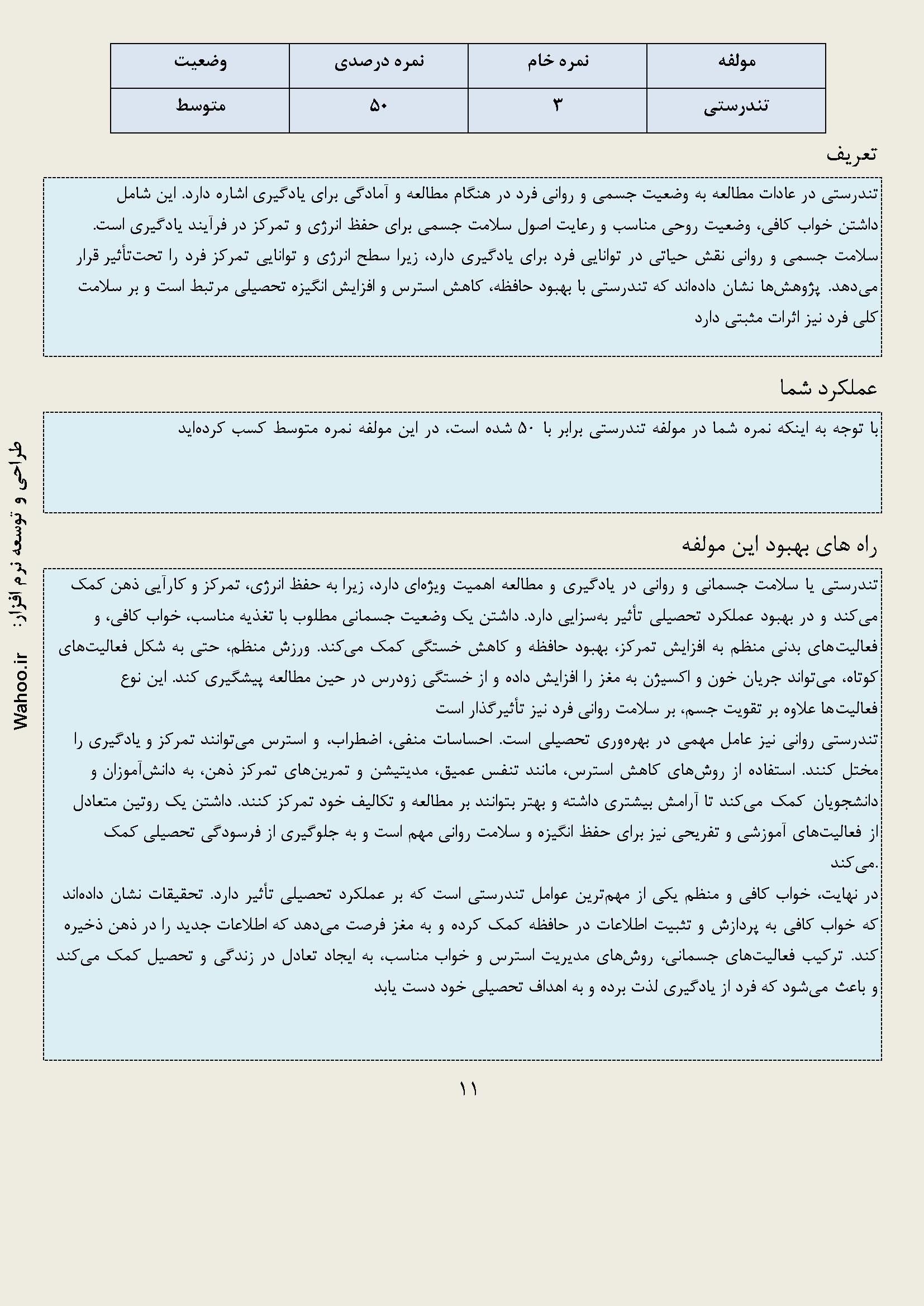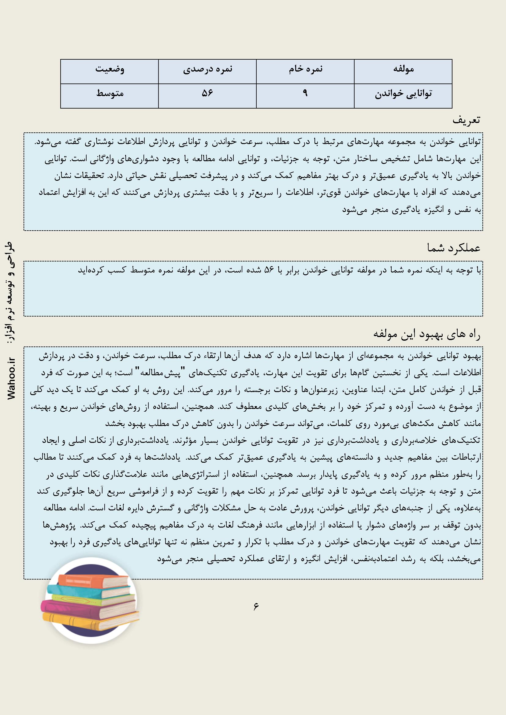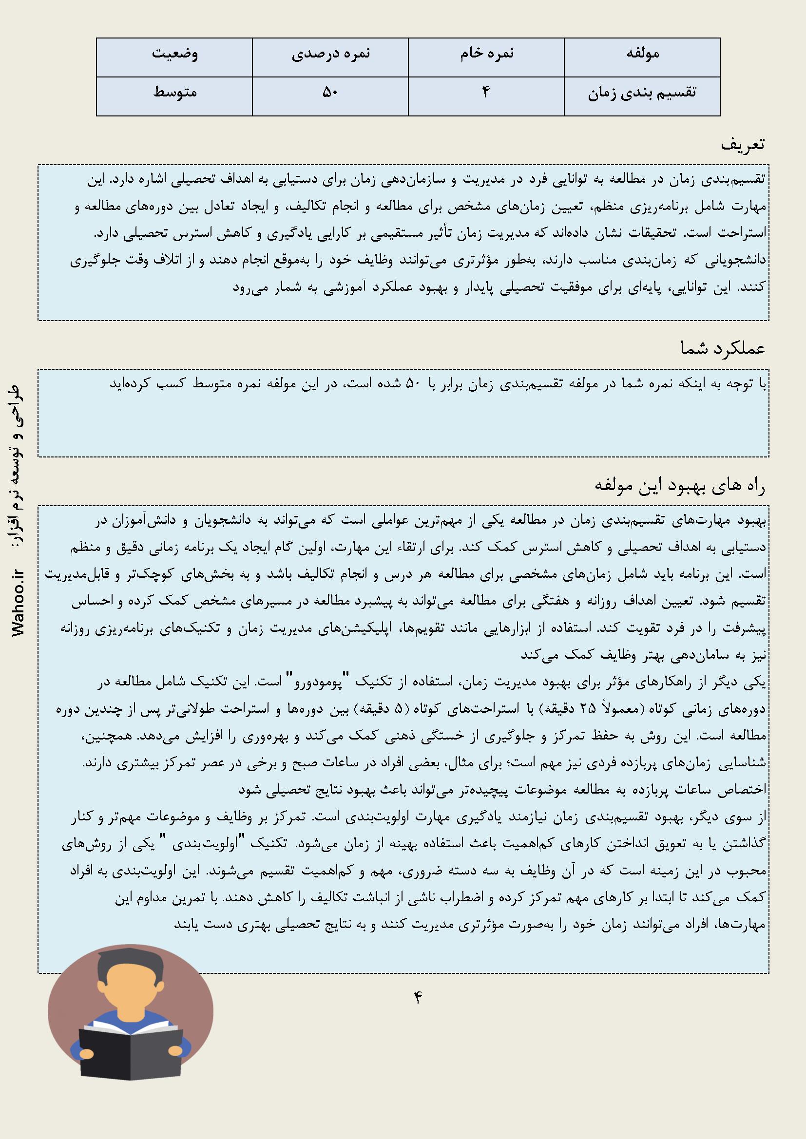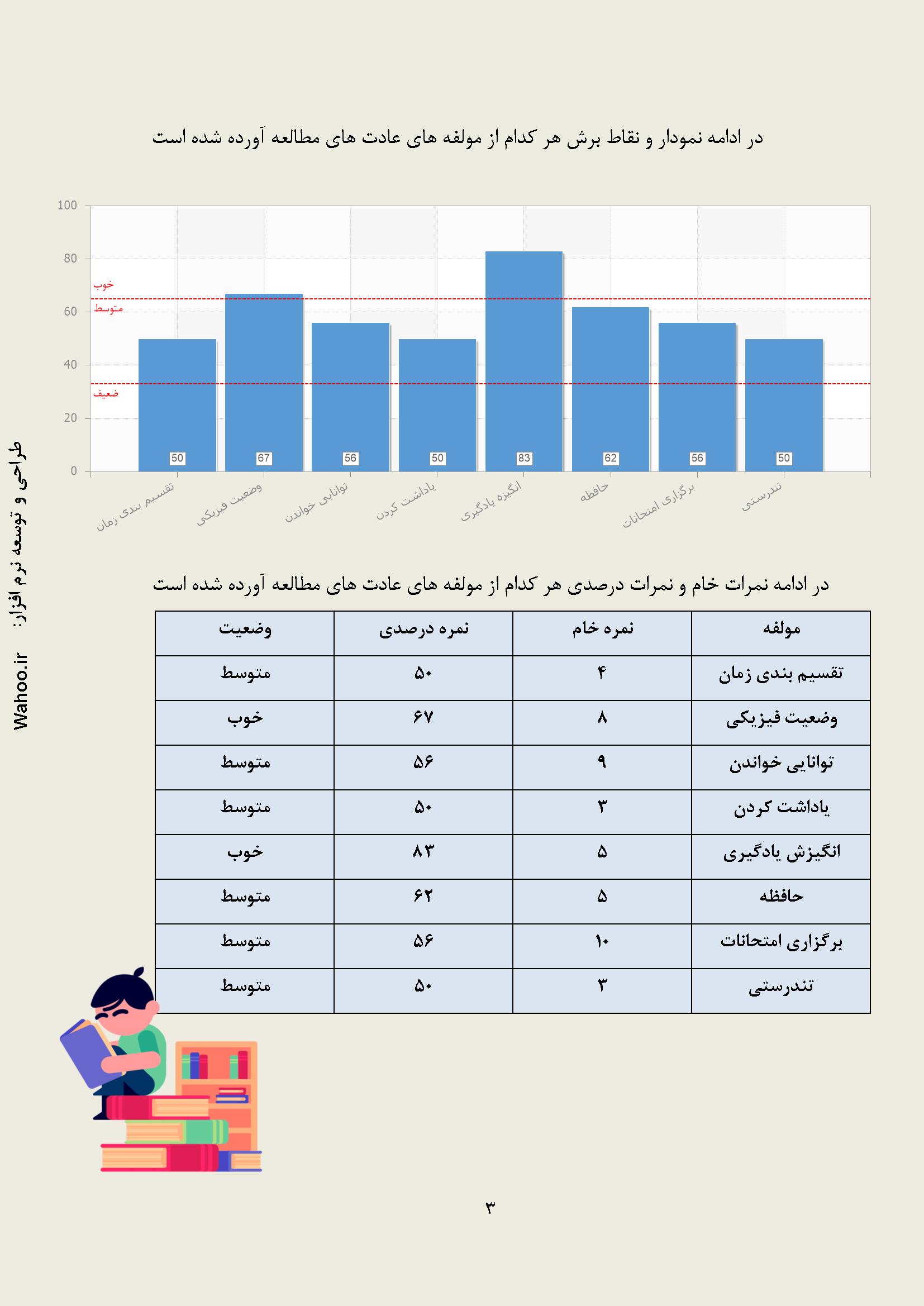 در زیر نمونه خروجی از نرم افزار عادت های مطالعه آورده شده است