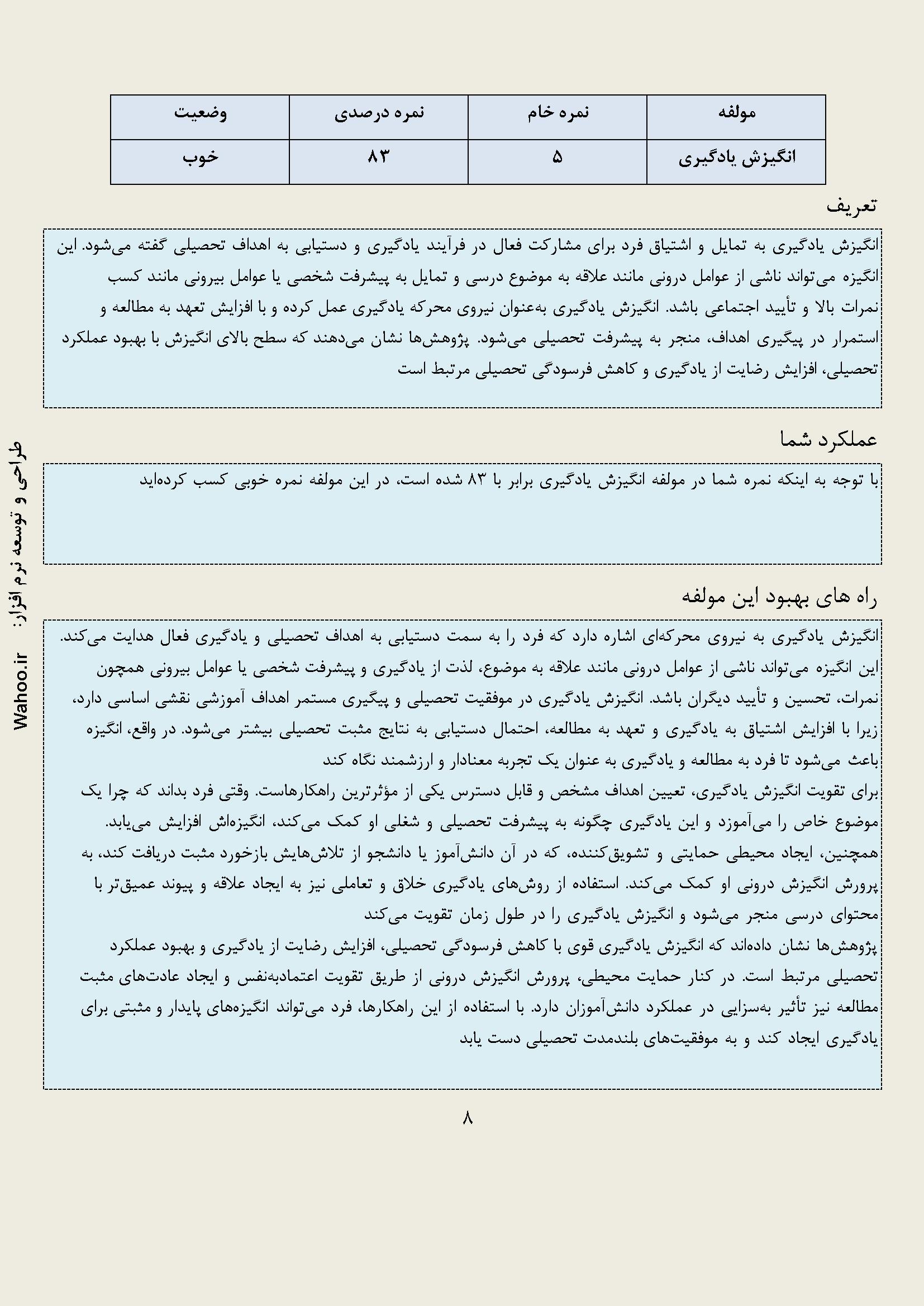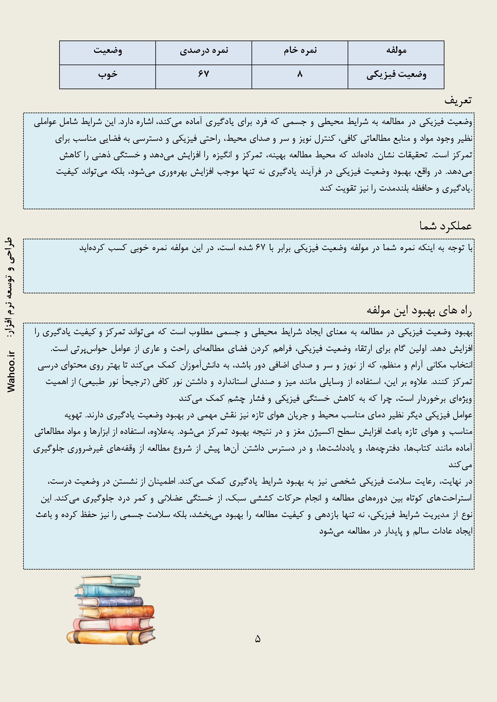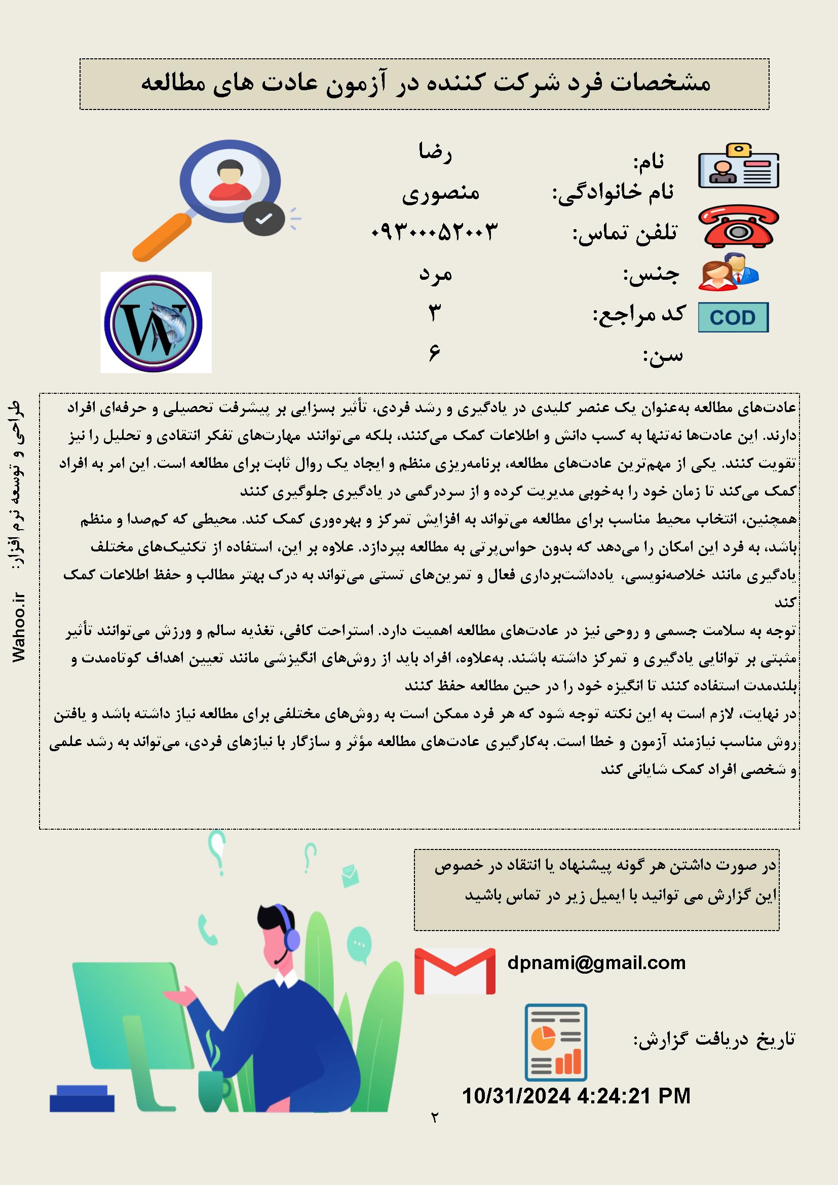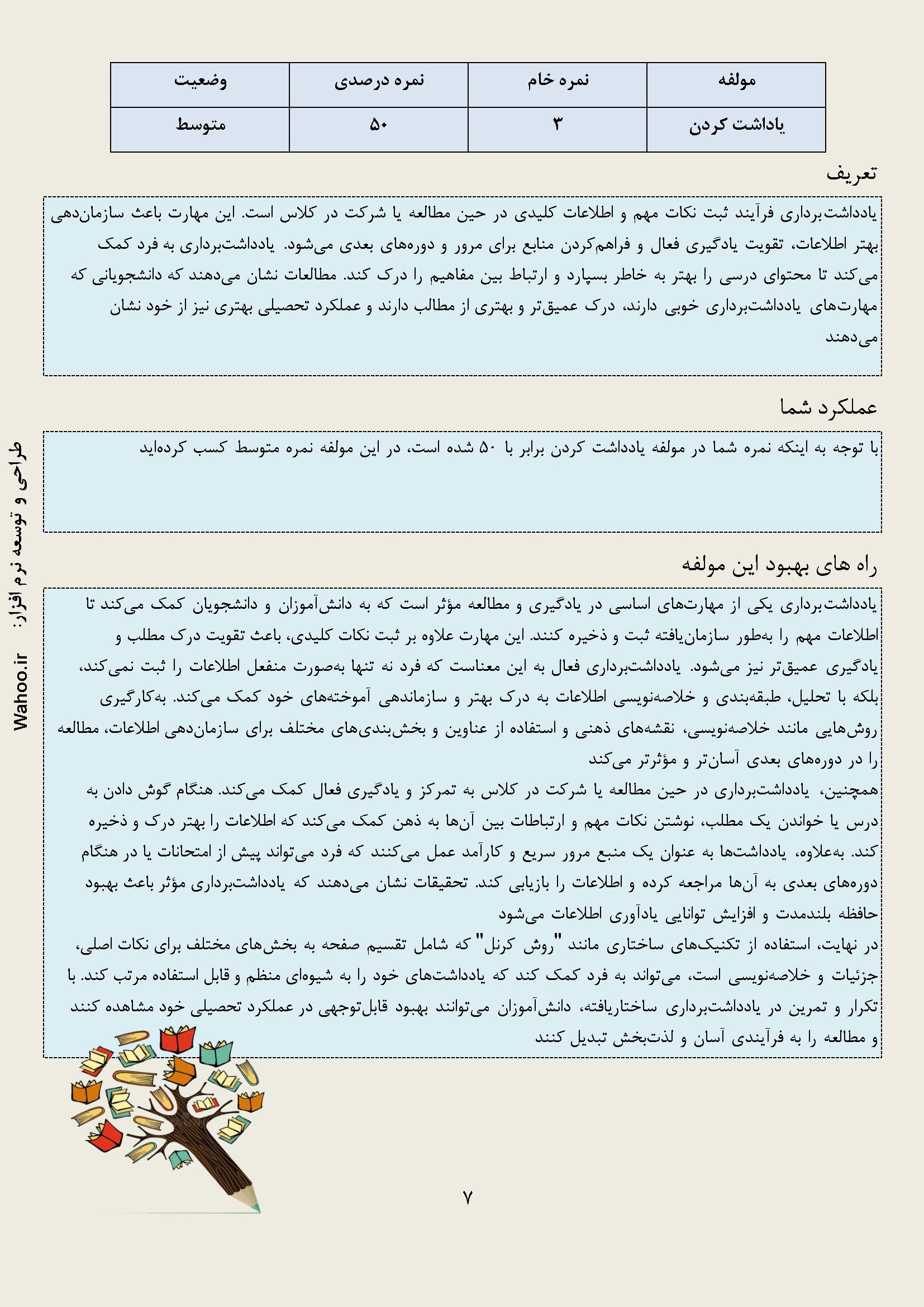 در زیر نمونه خروجی از نرم افزار عادت های مطالعه آورده شده است