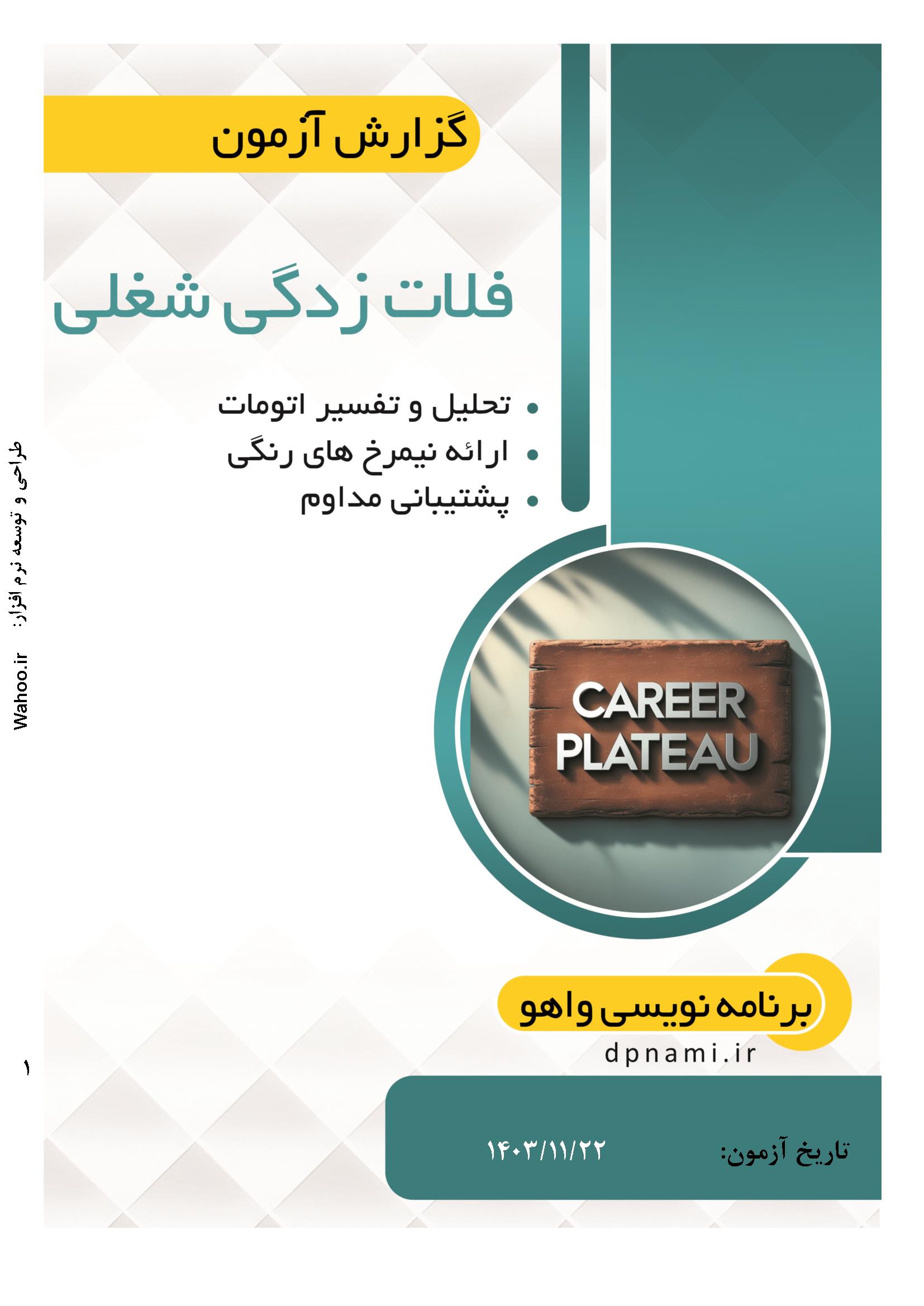 🔹 یک مدیر شرکت می‌خواهد ببیند که چند درصد از کارکنانش درگیر فلات‌زدگی شغلی هستند. نرم‌افزار گزارش‌های تصویری و تحلیلی ارائه می‌دهد که به تصمیم‌گیری بهتر برای افزایش رضایت کارکنان کمک می‌کند.