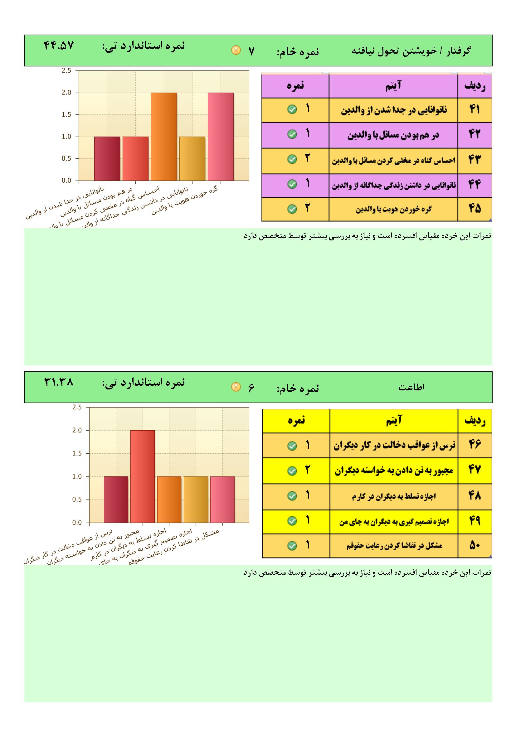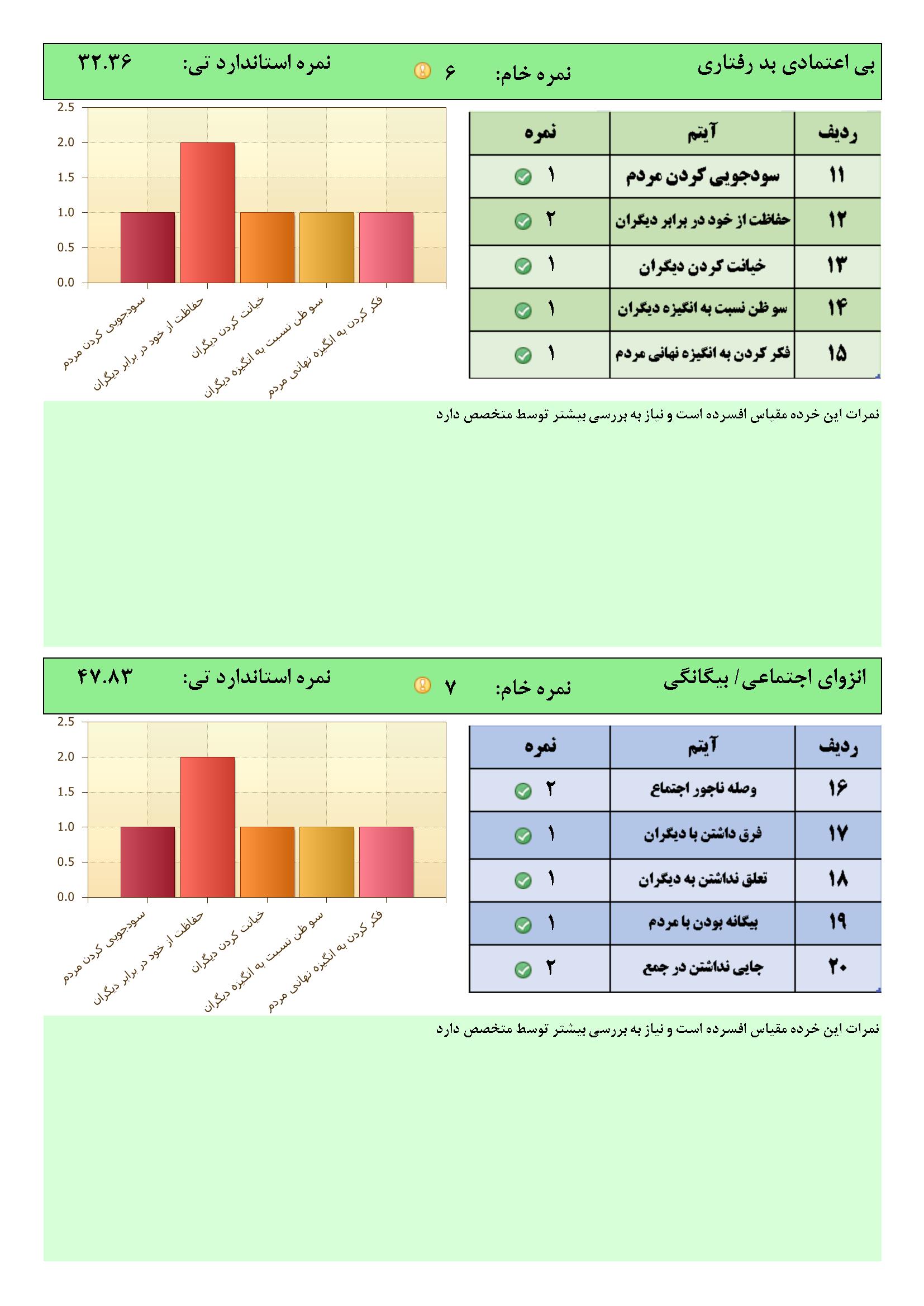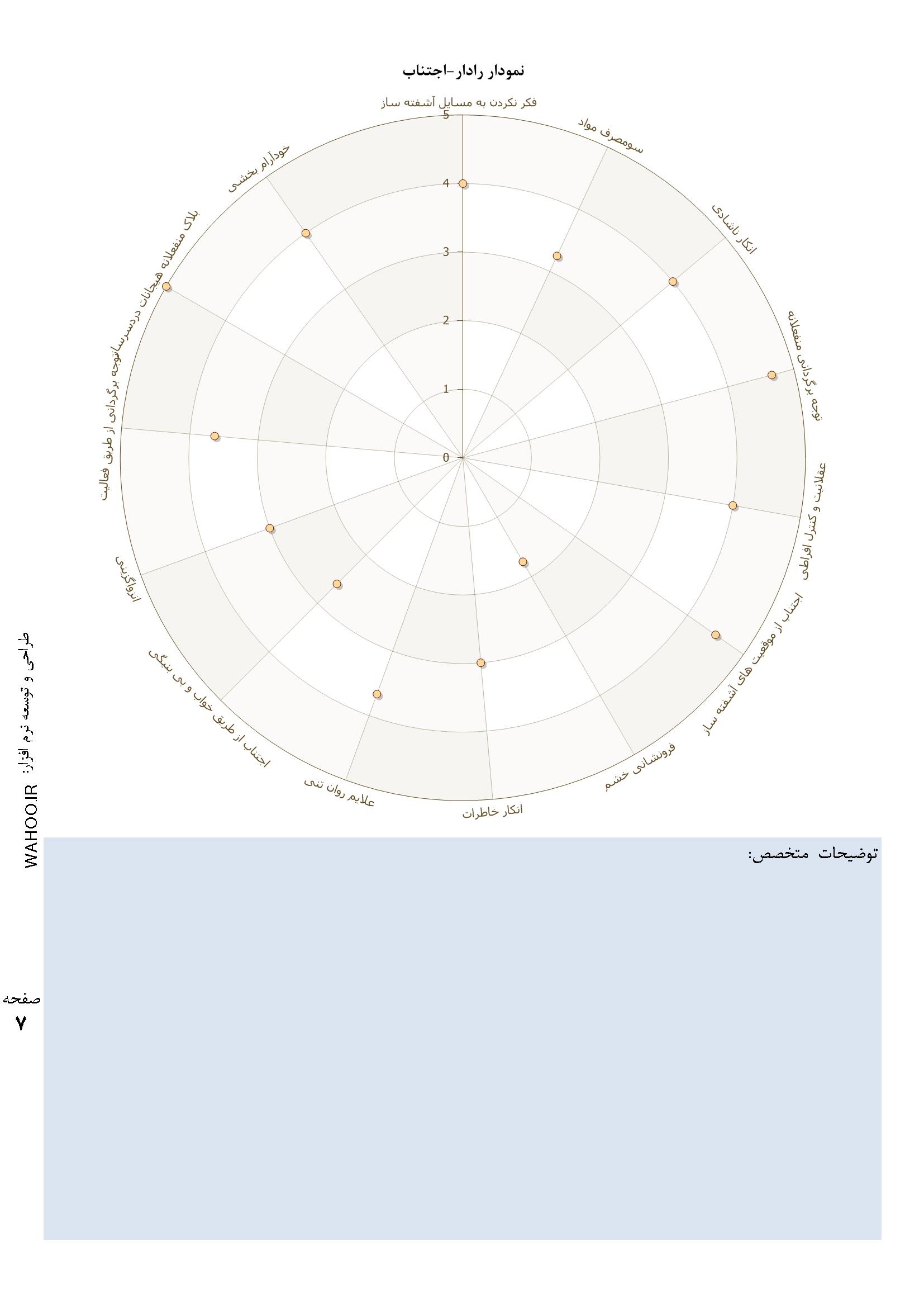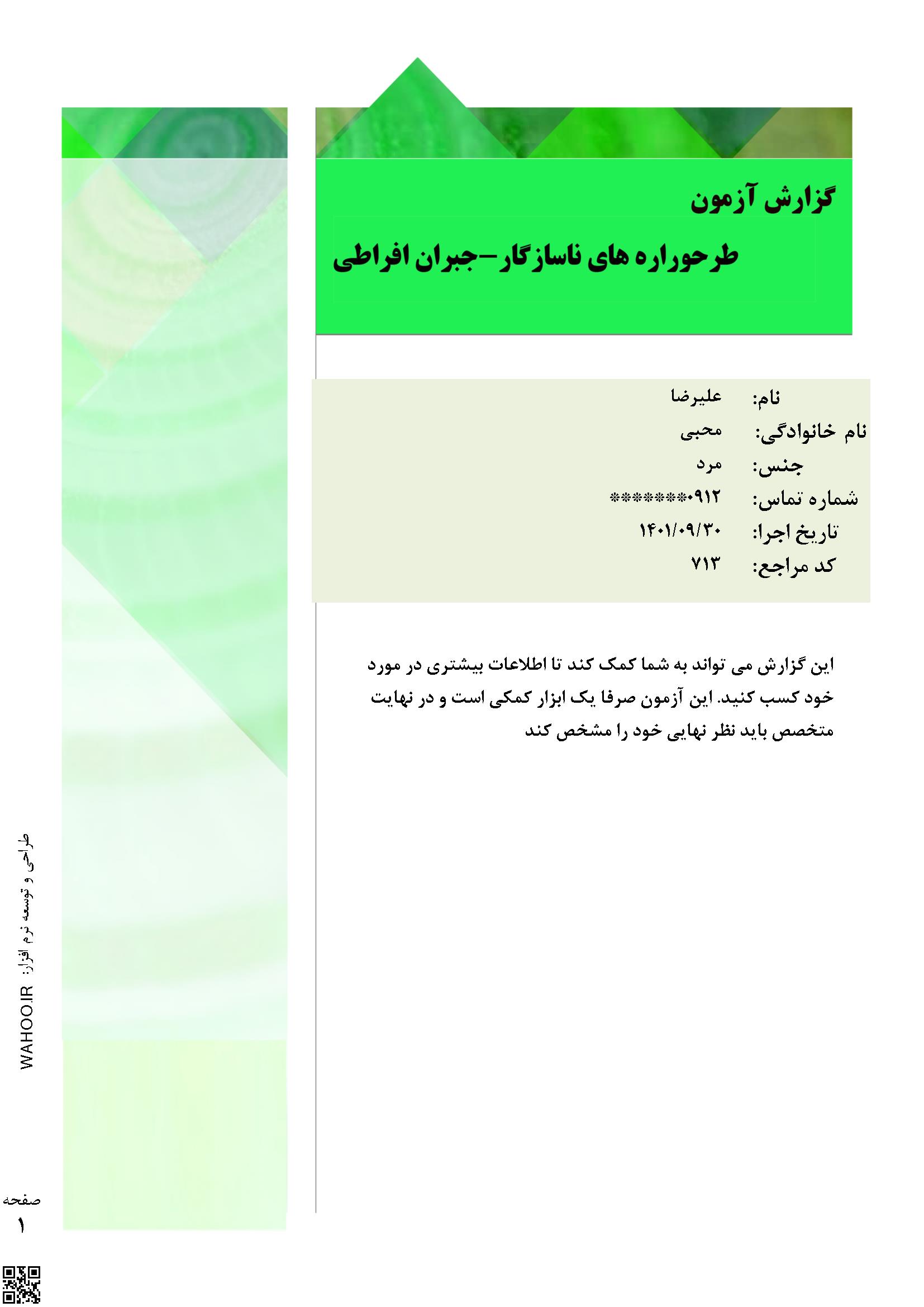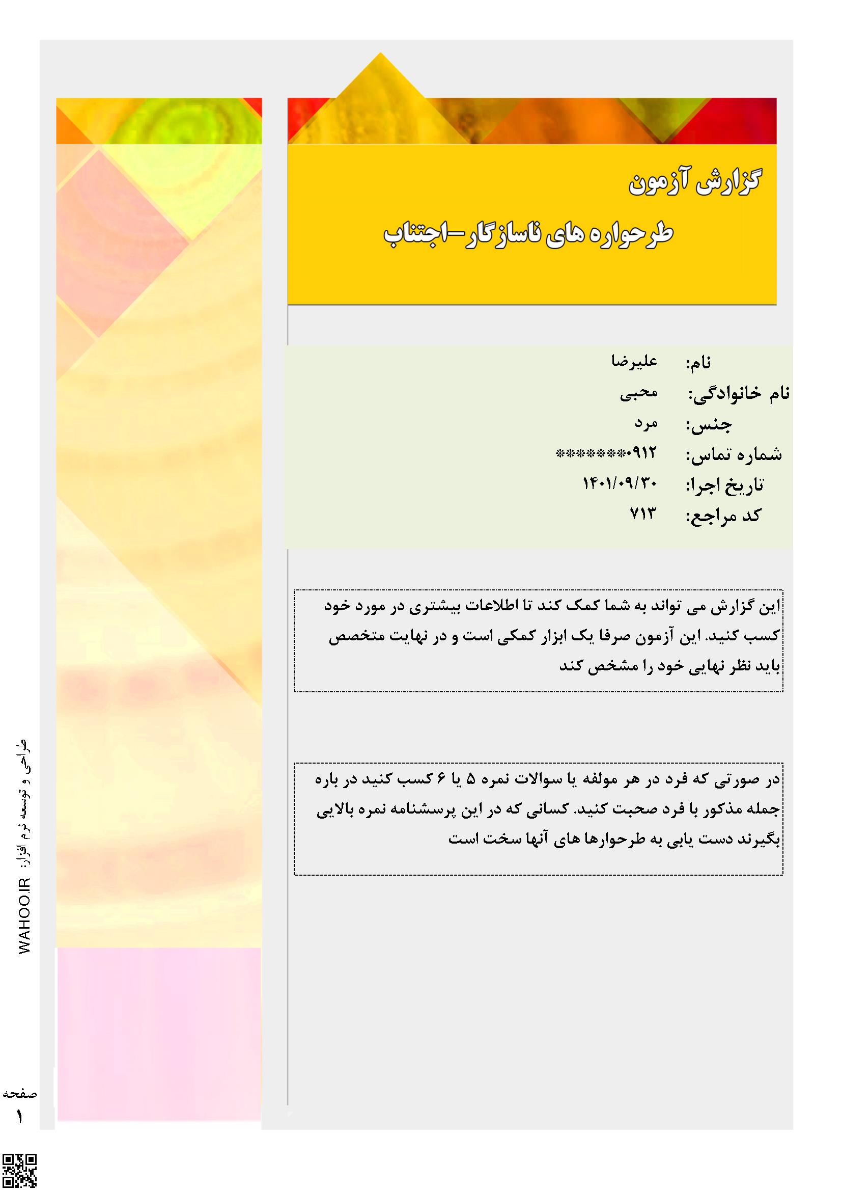 در زیر نمونه خروجی از آزمون طرجواره- اجتناب آورده شده است(چهار صفحه از ده صفحه گزارش آزمون)
